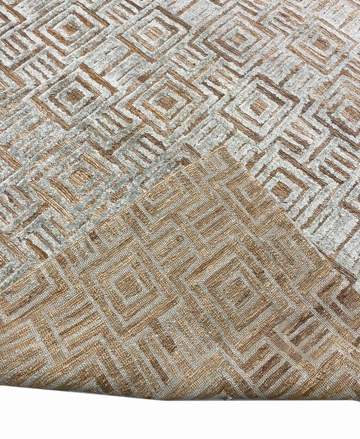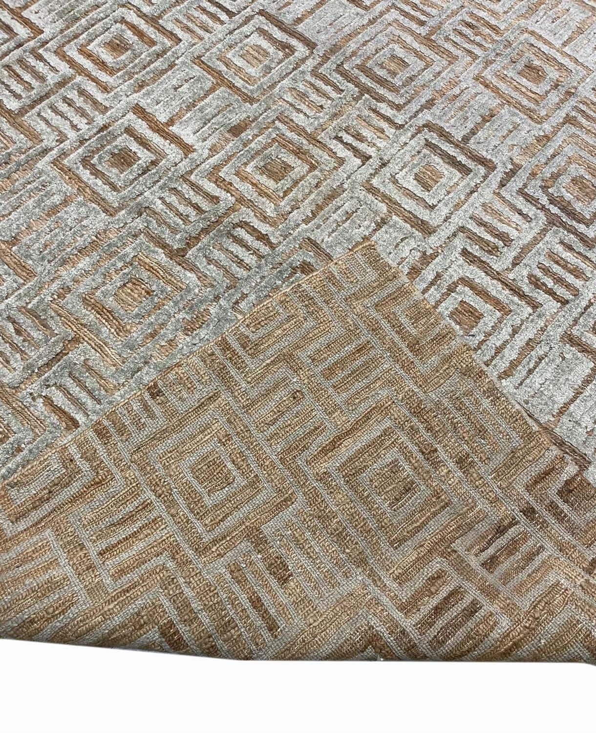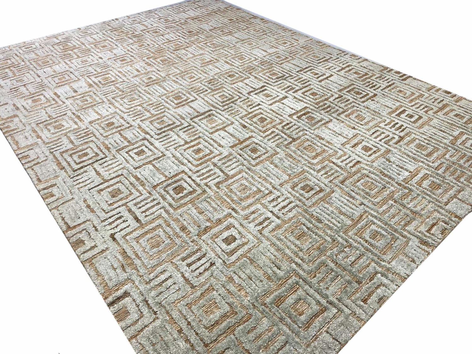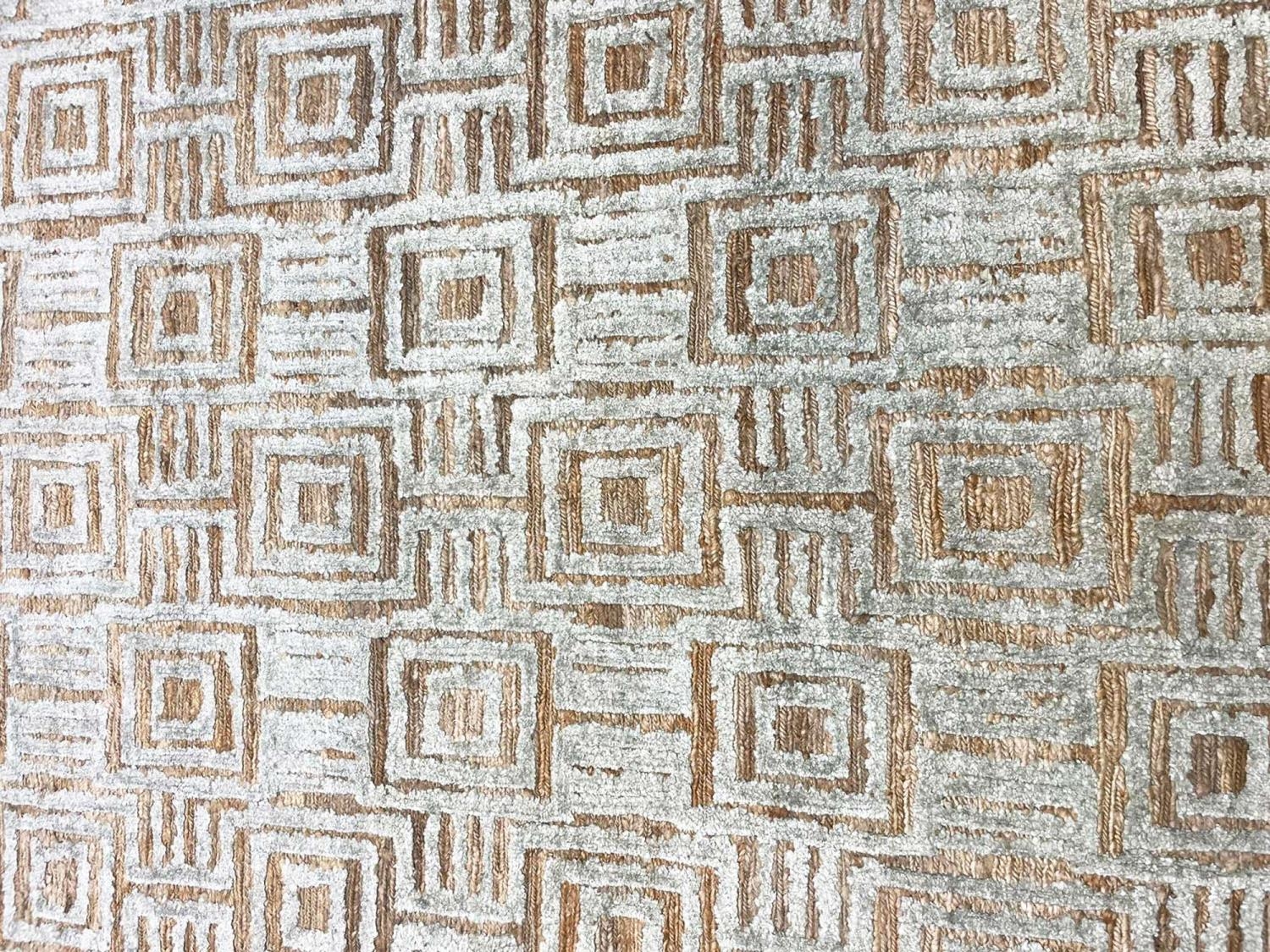 CONTEMPORARY ART DECO DESIGN JUTE AND BAMBOO SILK CARPET, 331cm x 242cm.