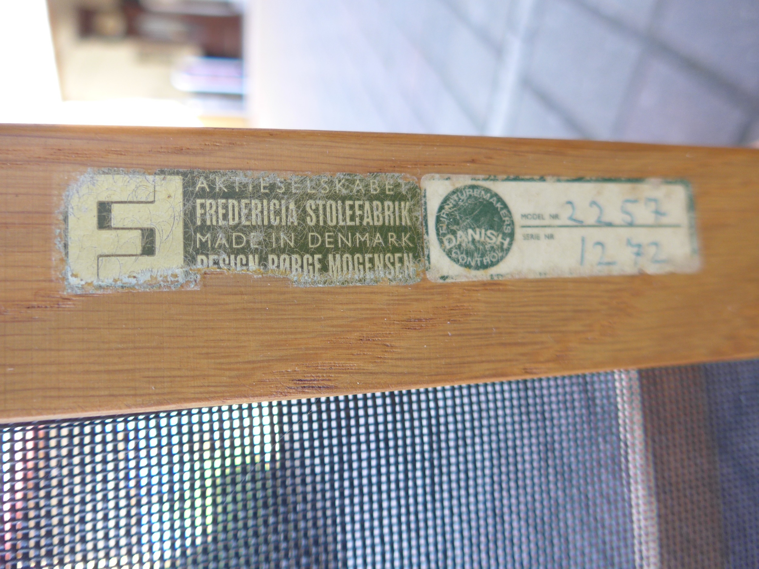A pair of Borge Mogensen designed Beech armchairs for Fredericia Stolefabrik, Denmark. Labelled. 63.5cm x 57cm x 91.5cm high
