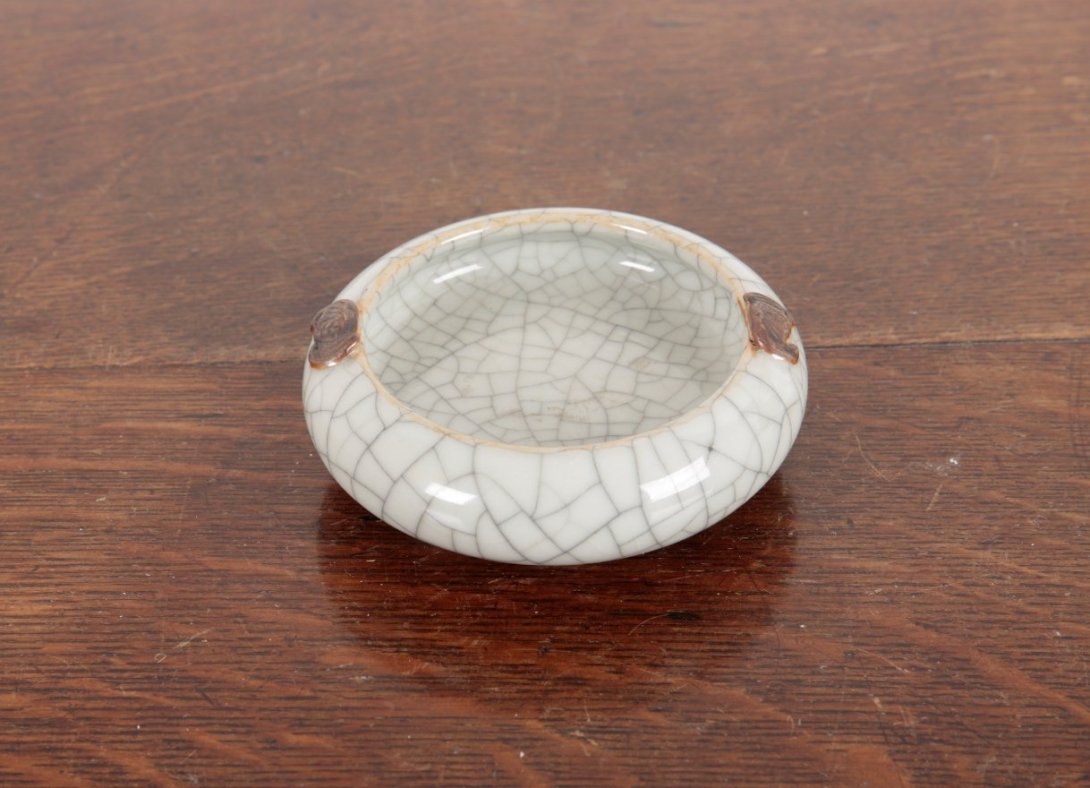 20th century, of baluster form with dragons head handles, 31cm high, together with a Chinese crackleware censer, bearing a Qianlong seal mark to the base, 10cm wide (2)
