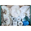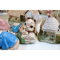Selection of Lilliput Lane to include 'Clare Cottage', 'Robins Gate' and other miniature cottage model examples together with a group of Pendelfin Studios rabbit figurines, a selection of Wedgwood Peter Rabbit items and Royal Doulton 'Bunnykins' tableware and wall clocks (2 boxes)