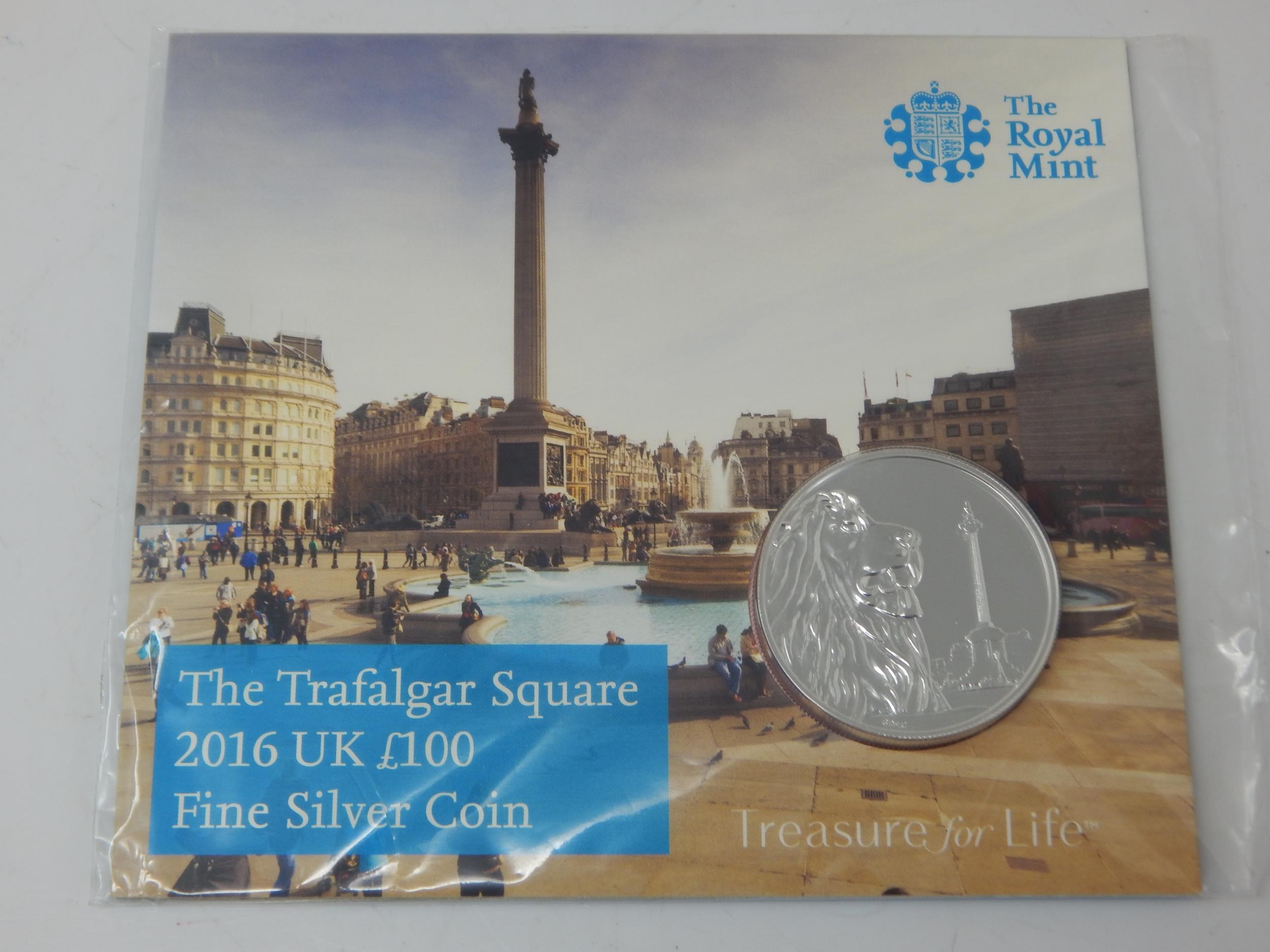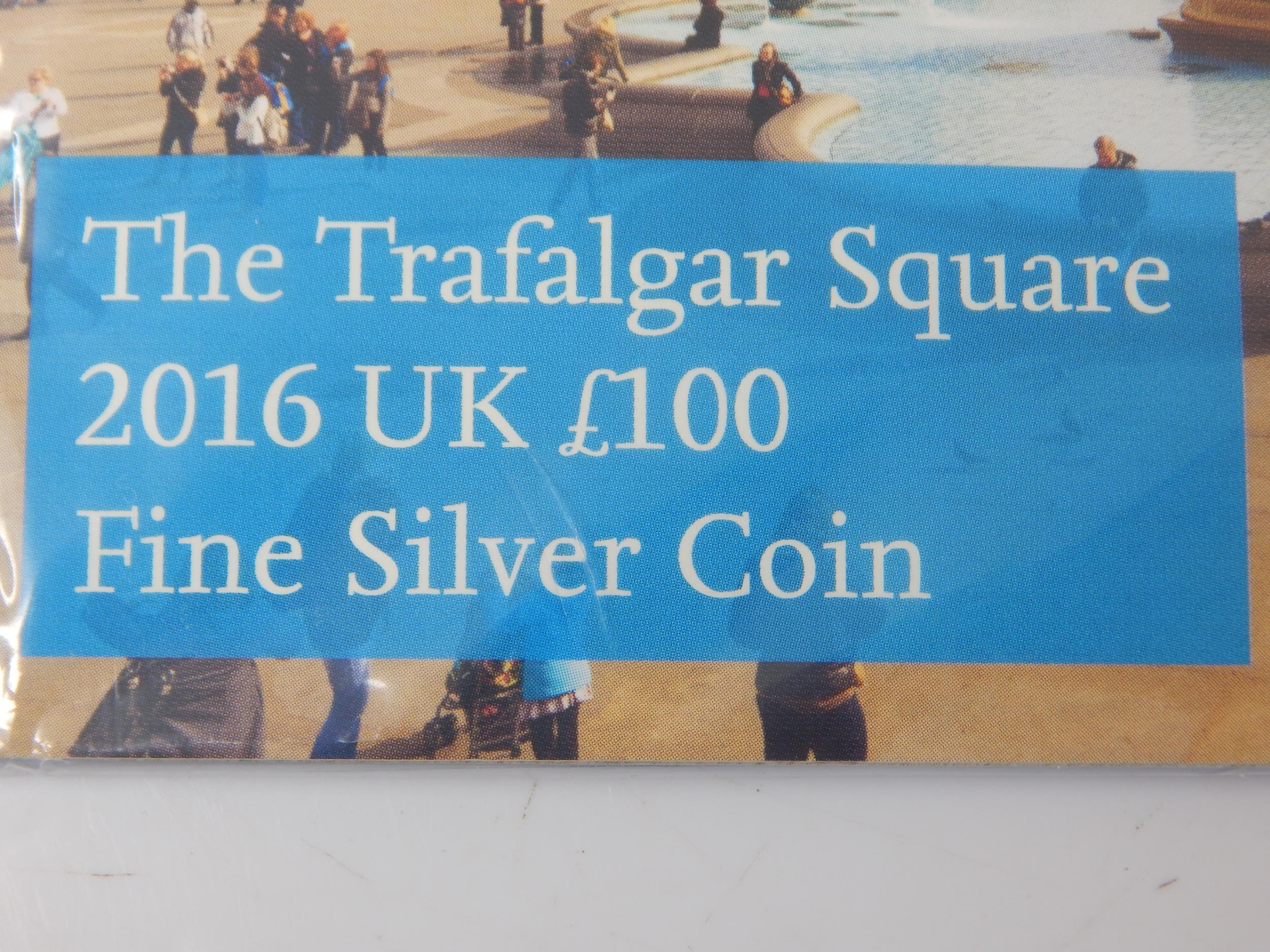 The Trafalgar Square 2016 £100 Fine Silver Coin still sealed in Royal Mint pack