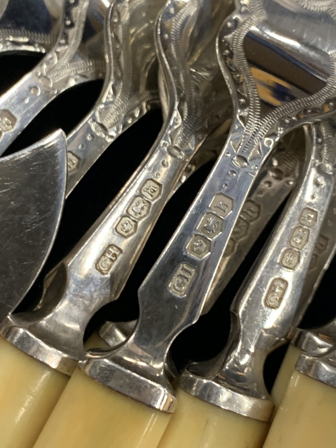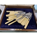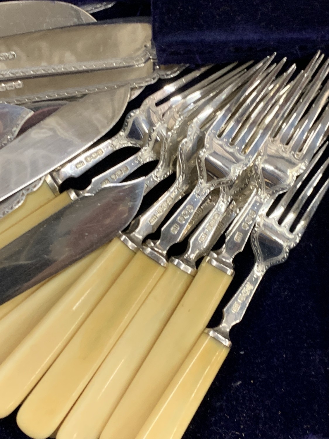 A CASED HALLMARKED SHEFFIELD SILVER CUTLERY SET WITH FAUX BONE HANDLES