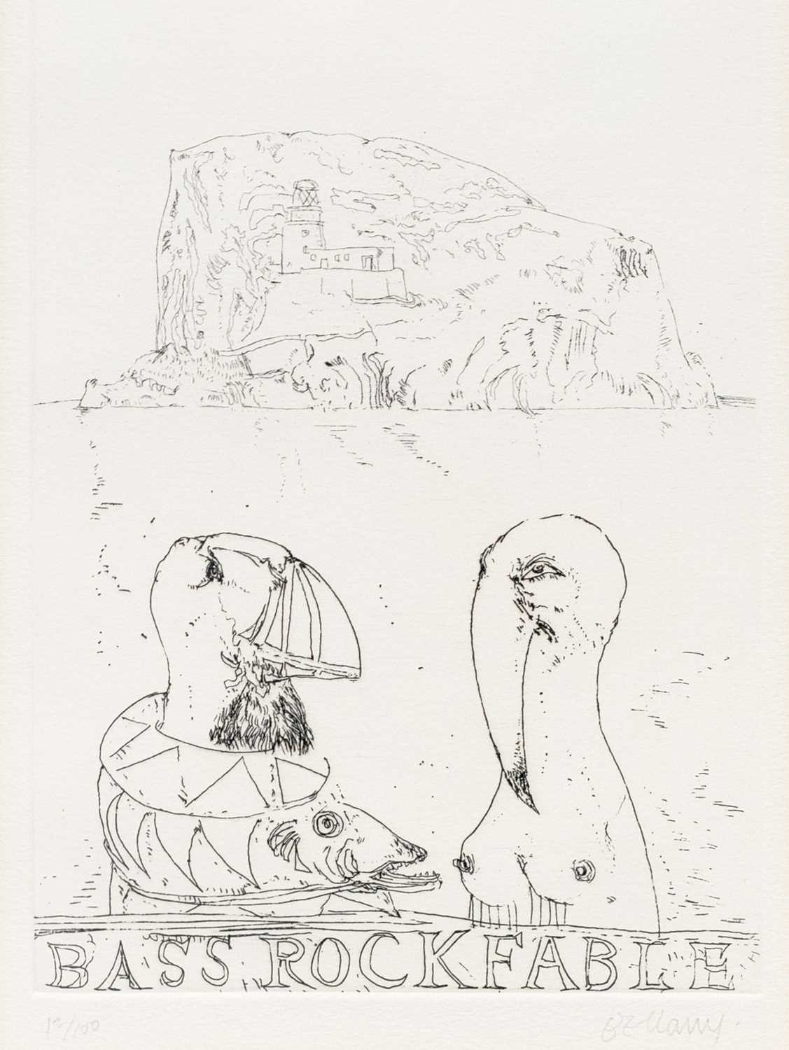 John BELLANY (1942-2013) Bass Rock Fable Etching, signed and numbered 12/100, plate size 24 x 16cm, 64 x 46cm framed.