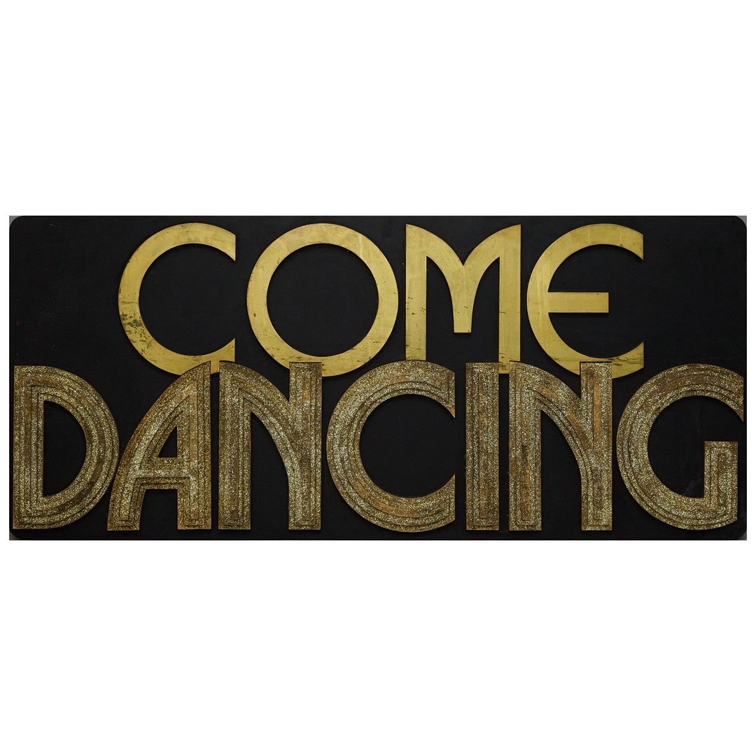 ORIGINAL 'COME DANCING' SIGN. salvaged from the BBC props department, 160cm x 70cm.