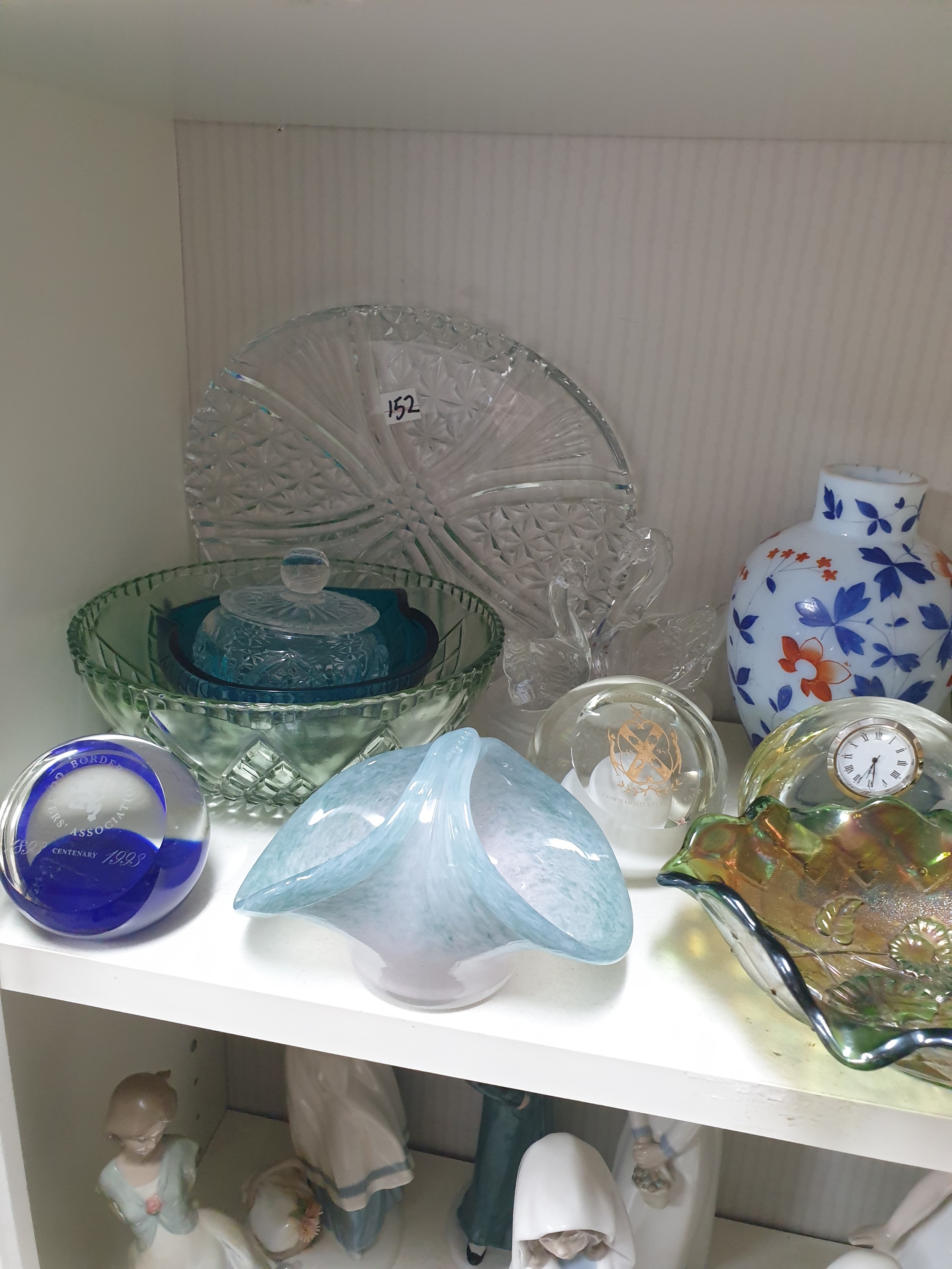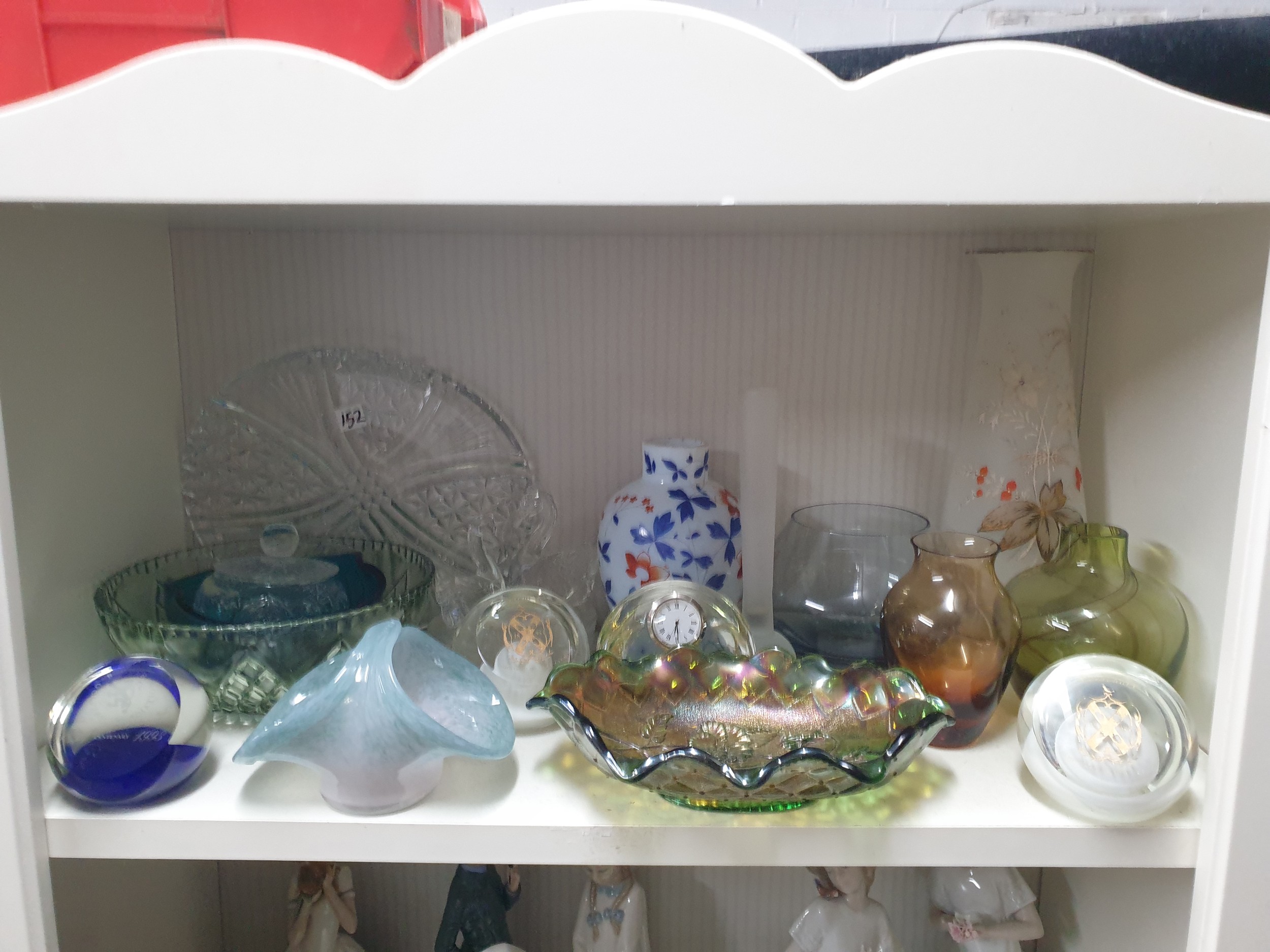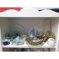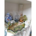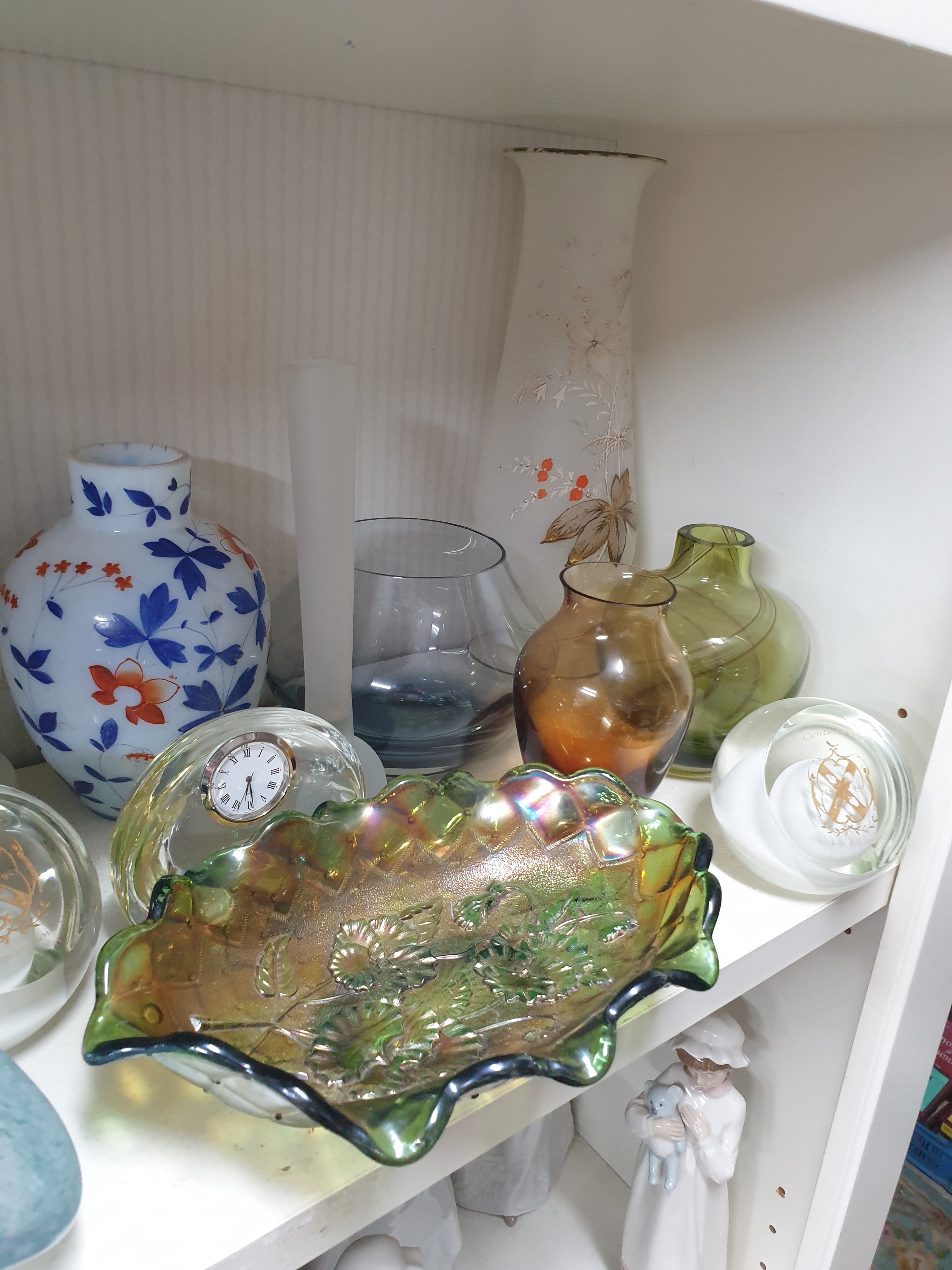 Shelf Of Collectable Glassware Caithness Vases, Selkirk Paperweights, Carnival Glass Victorian Milk Glass etc