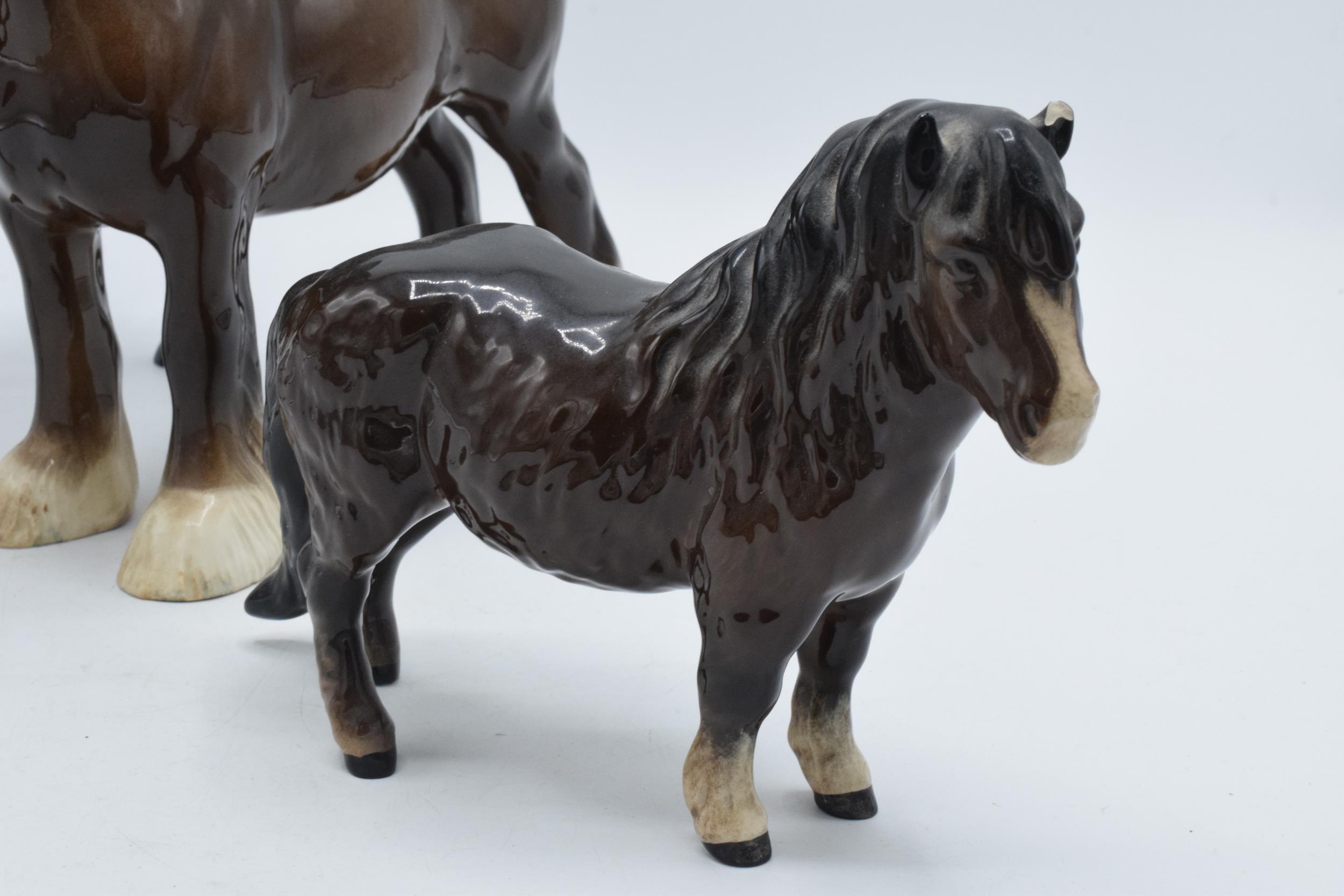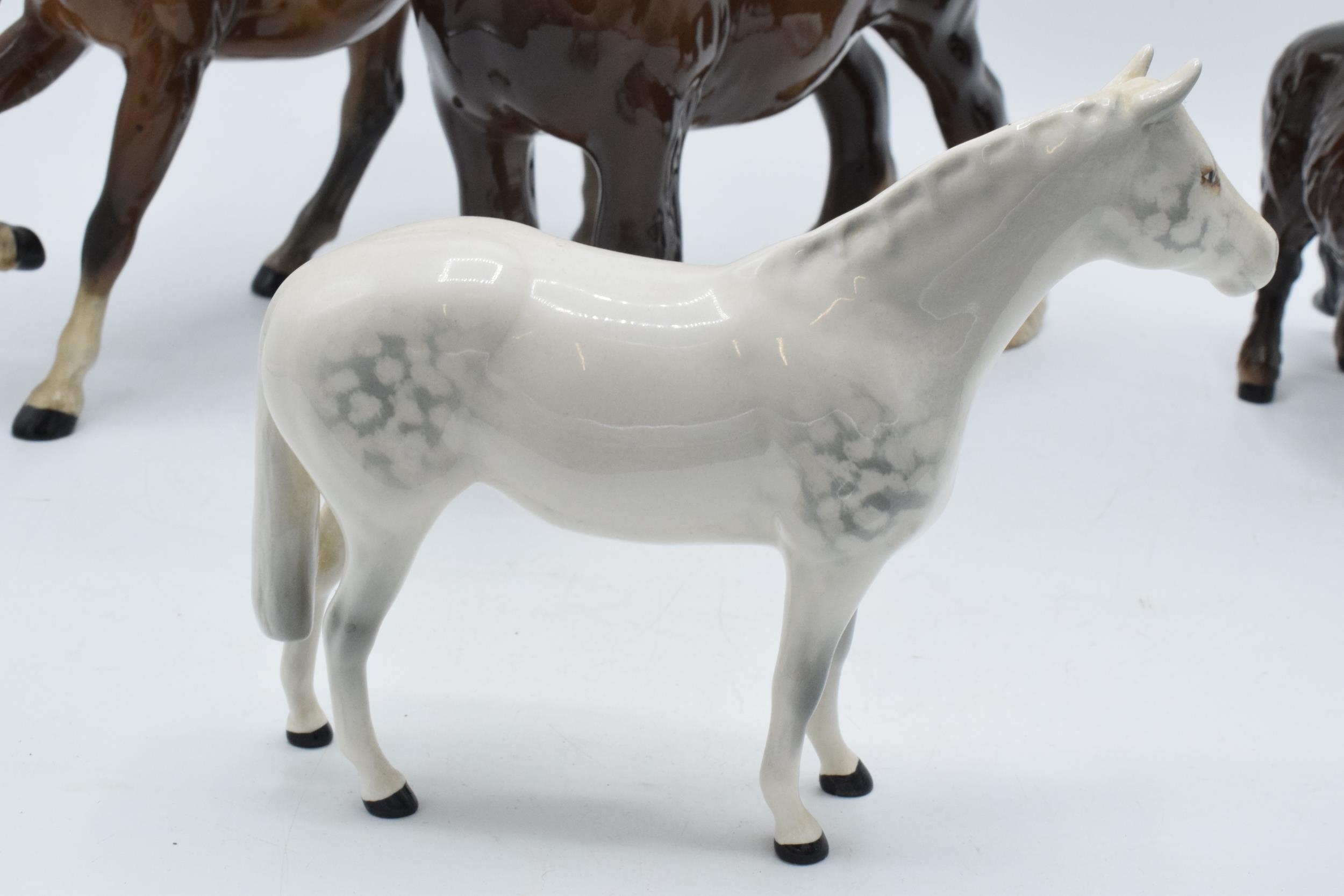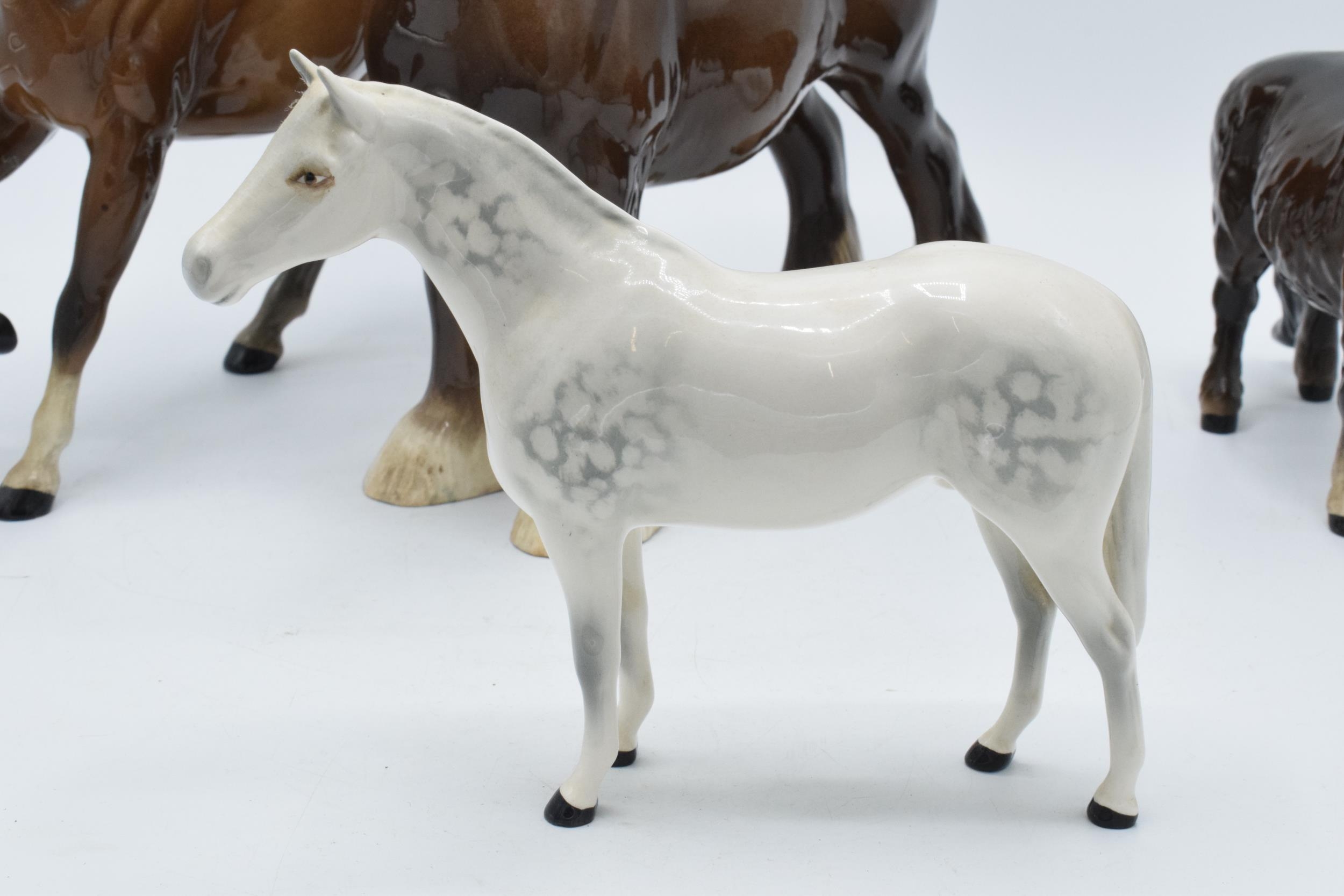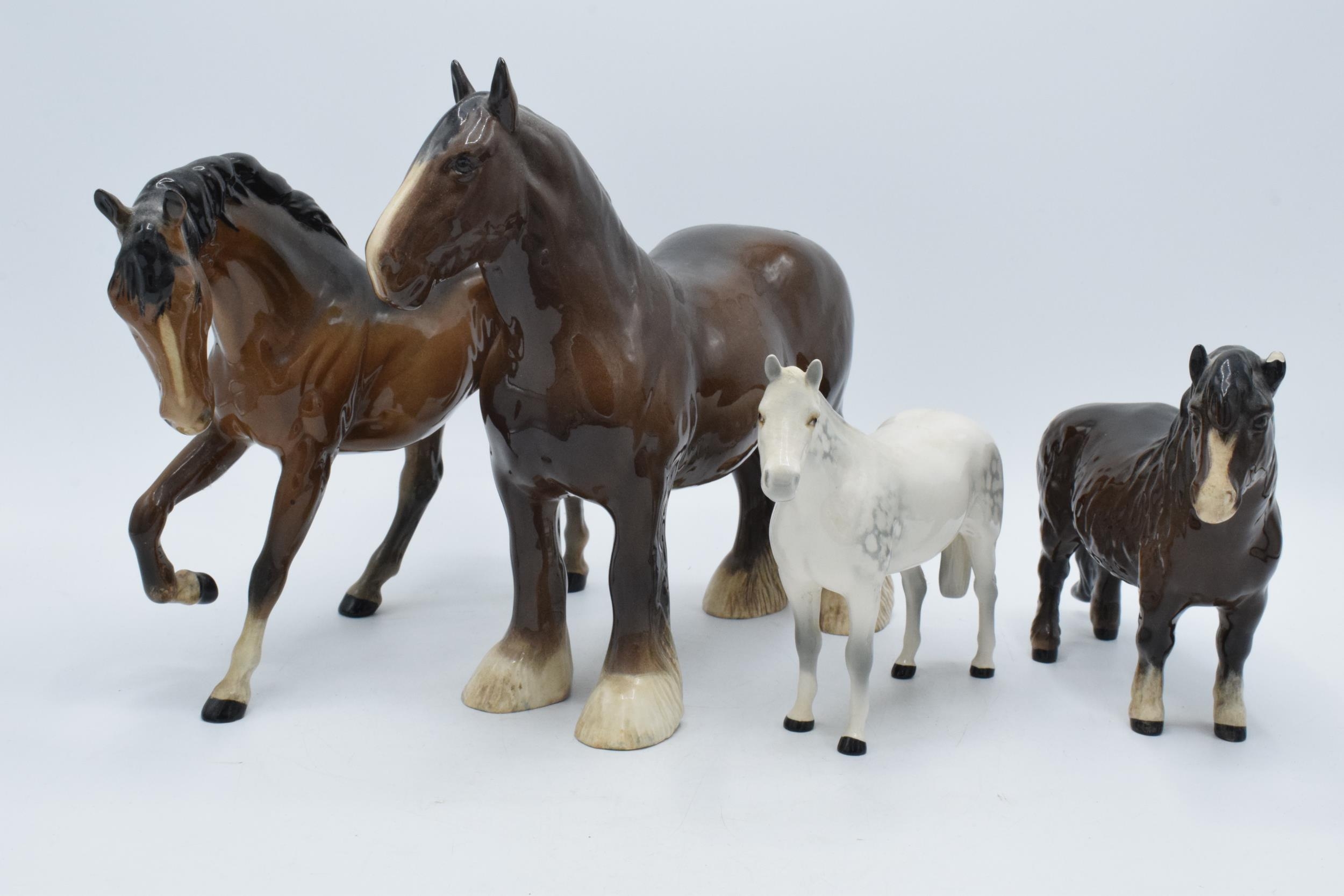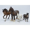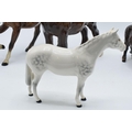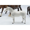 Beswick horses to include brown shire 818, grey thoroughbred (13cm tall), a brown Shetland (ear af) and brown gloss Spirit of Freedom (4).