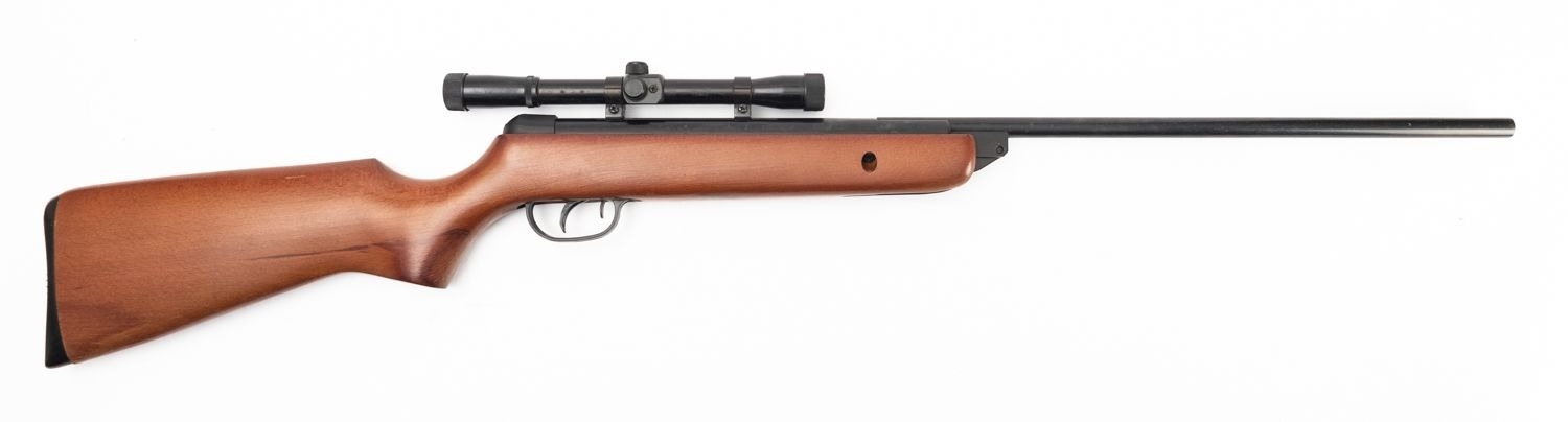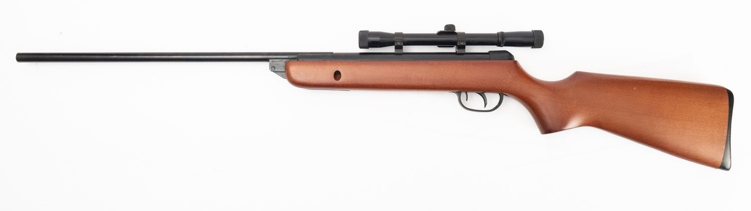 A BSA Meteor break barrel air rifle. Serial number WE0136C, .22 calibre having a wooden stock with synthetic butt plate and 14'' length of pull.