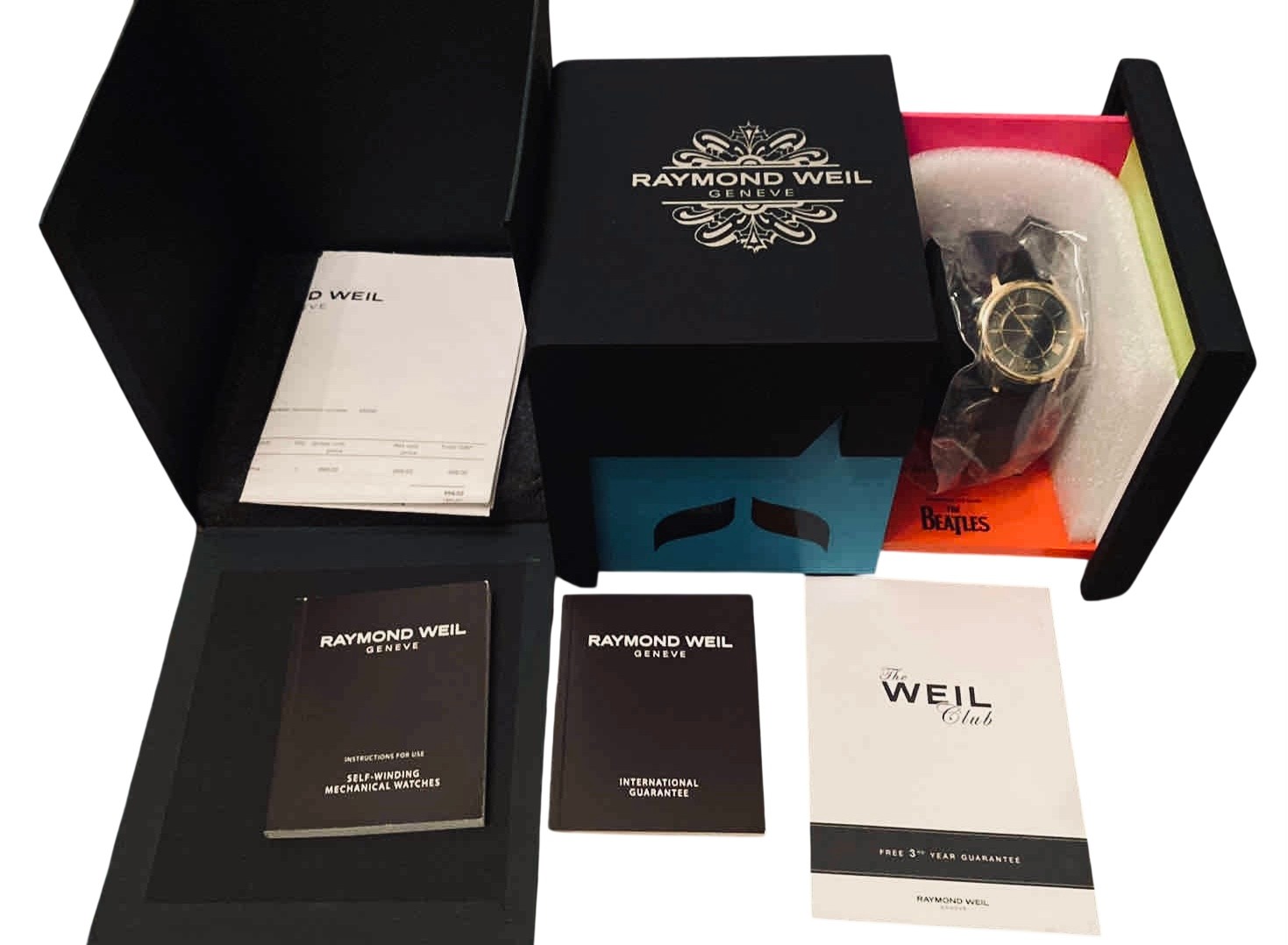 A Raymond Weil The Beatles SGT Pepper limited-edition self-winding wristwatch, stainless-steel bracelet, silvered dial with song-title chapter ring and date aperture, with presentation case and papers.