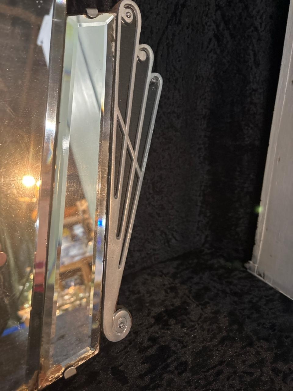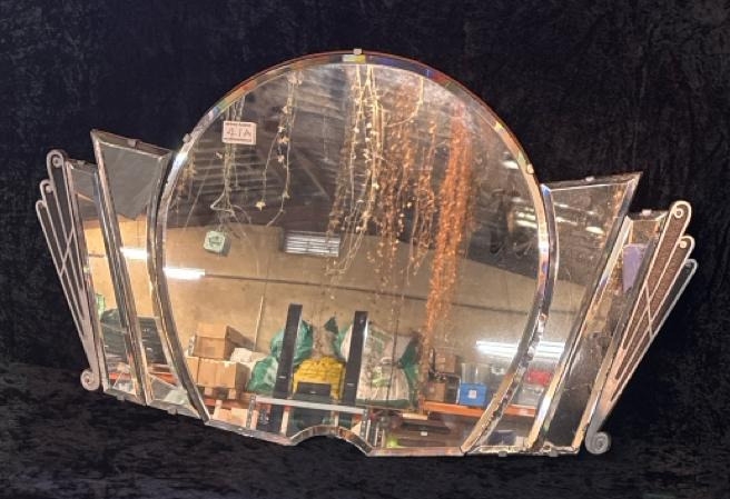 Beautiful Art Deco mirror with bevel edges and fan detail. H47cm x W83cm.