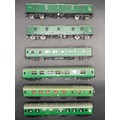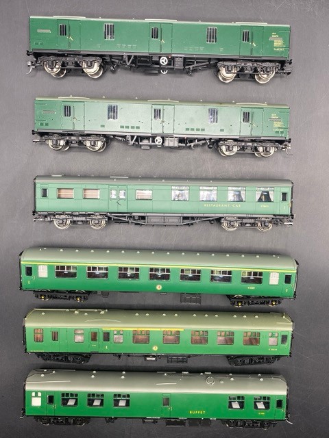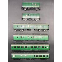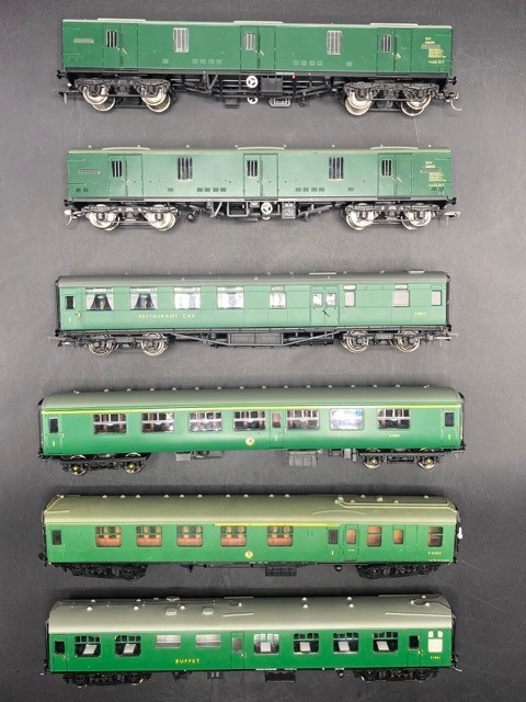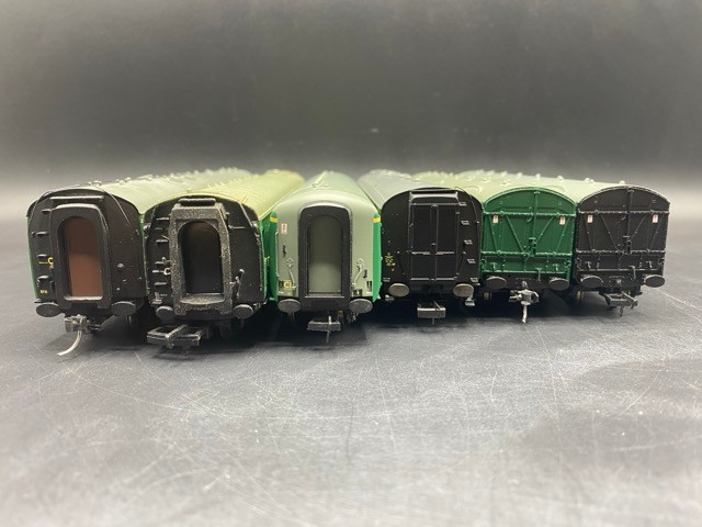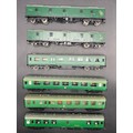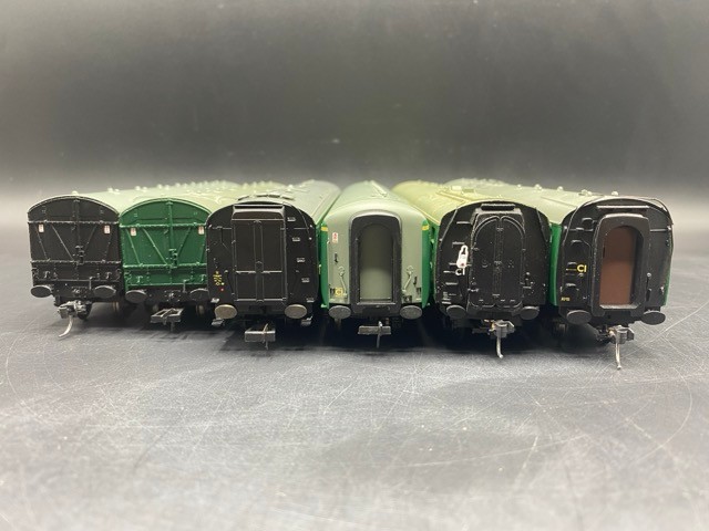 Six OO gauge BR Green livery coaches