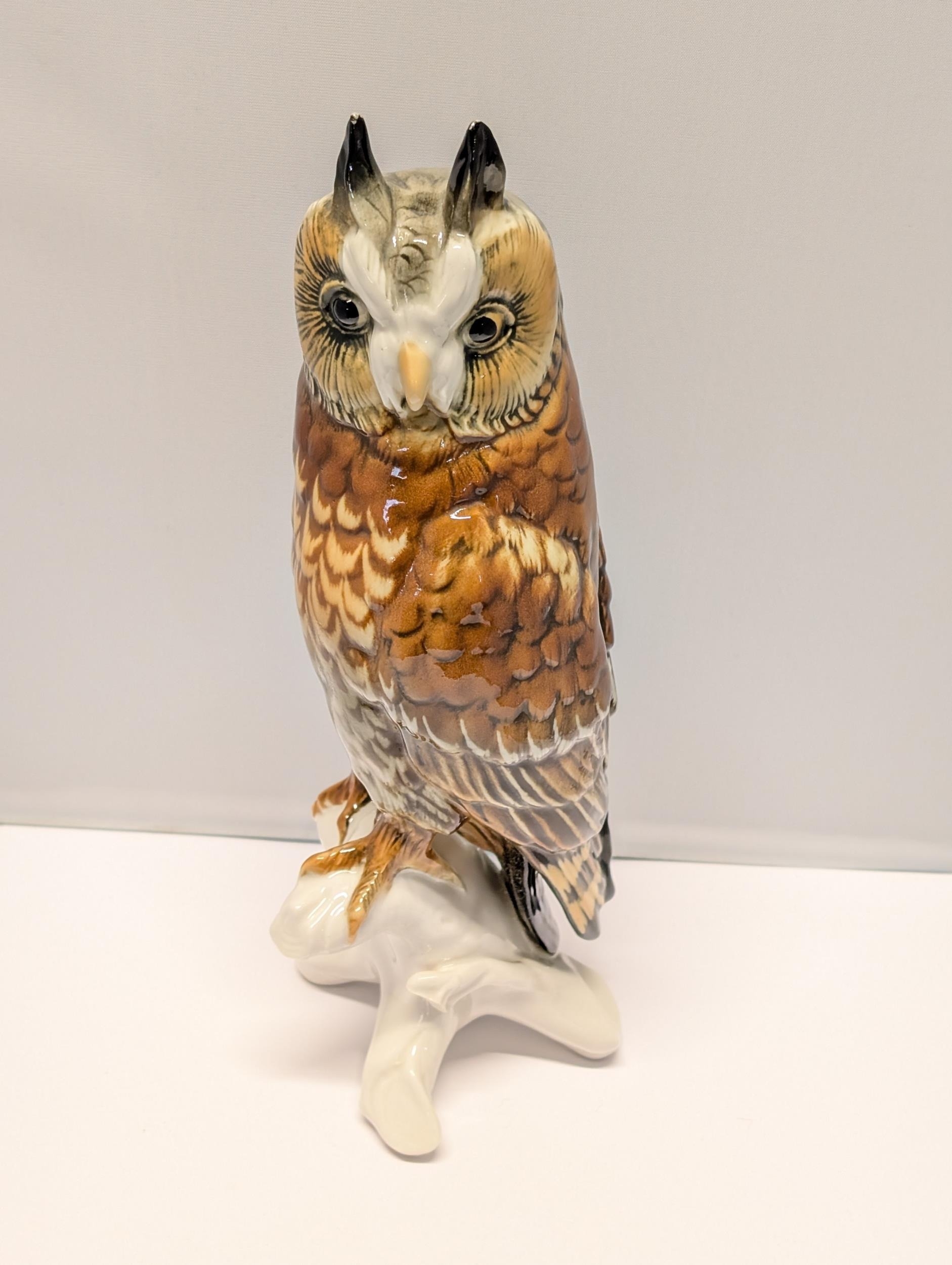 Karl Ens German Porcelain Long-Eared Owl Figurine (Slight Damage to Base as Pictured) 27cm