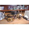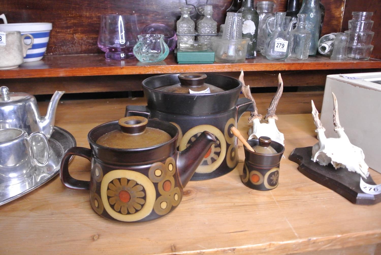 A retro set of Denby ceramics to include a teapot, provinces pot and lidded pot.