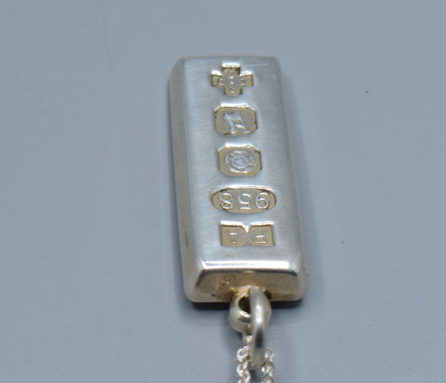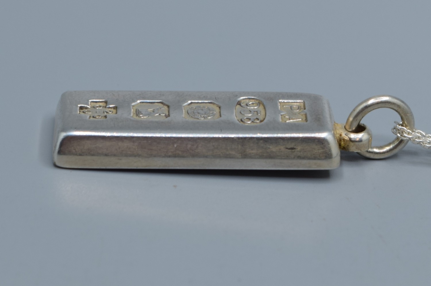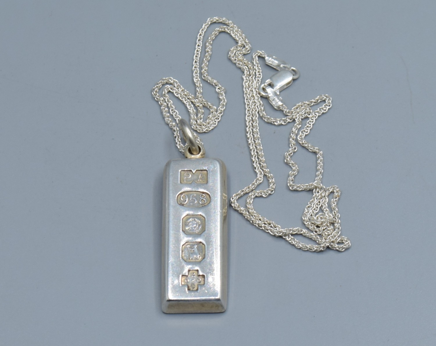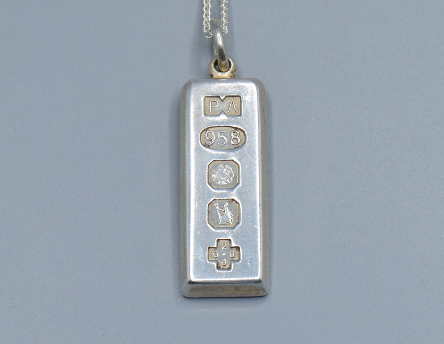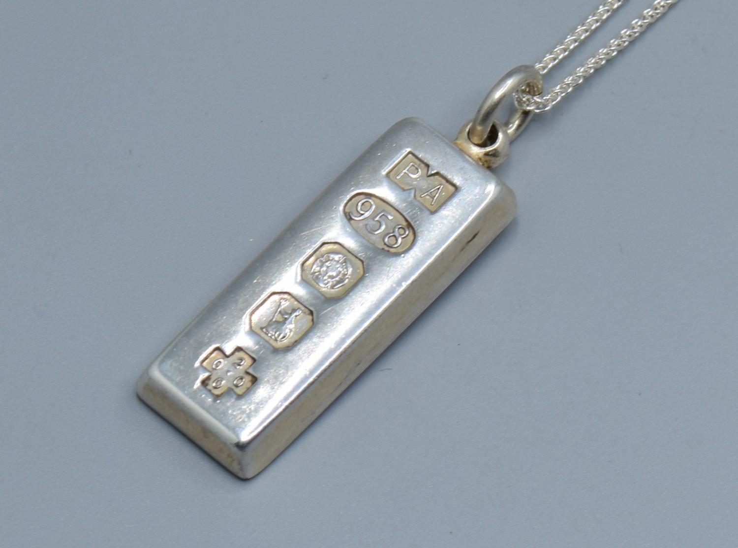 925 silver fully hall marked Millennium Ingot held on a new without tag 925 silver neck chain 44cm long