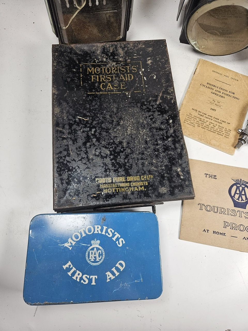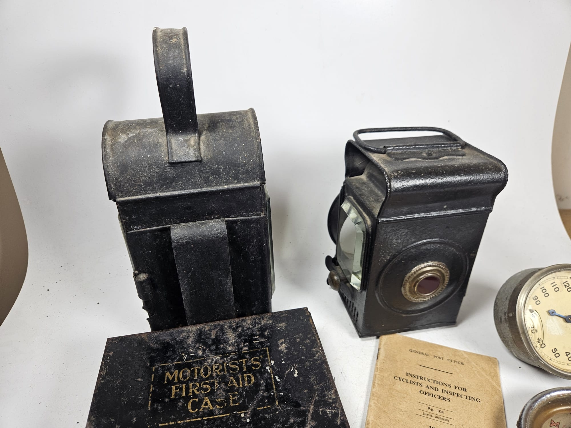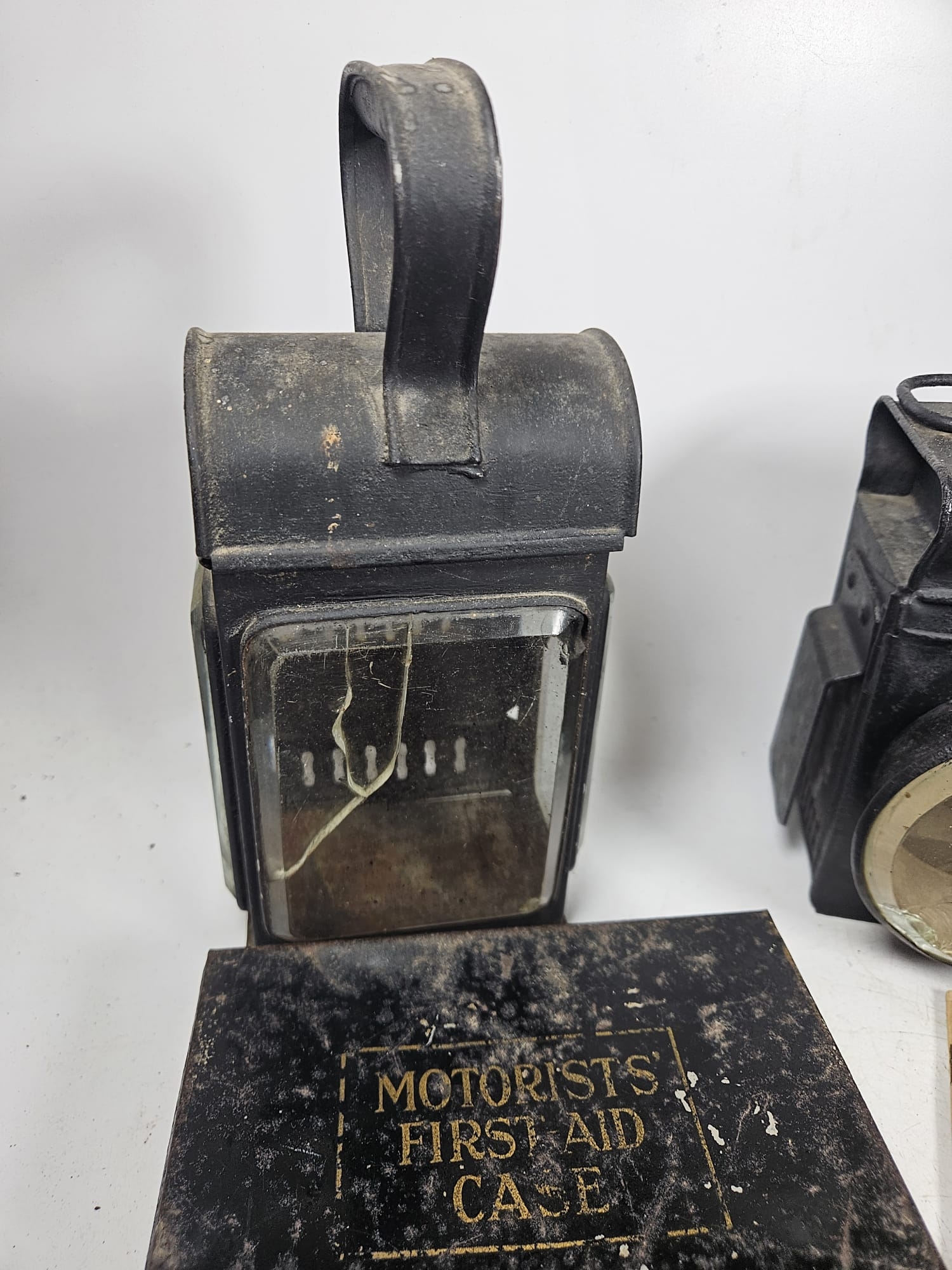2no Vintage Motoring Oil Lamps t/w 2no Motorist First Aid Kits and Other Sundry Items