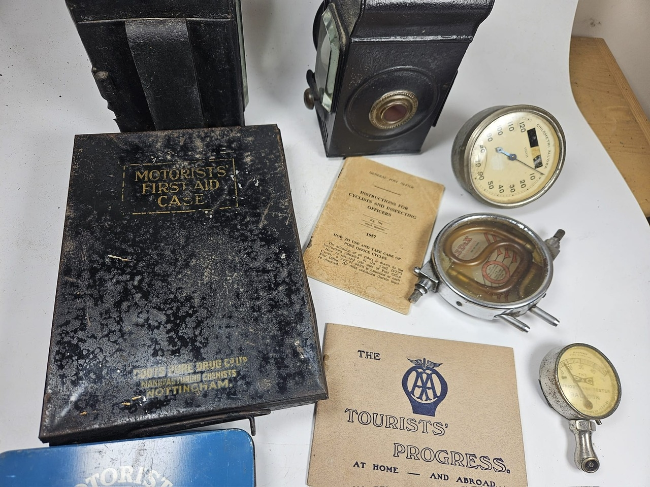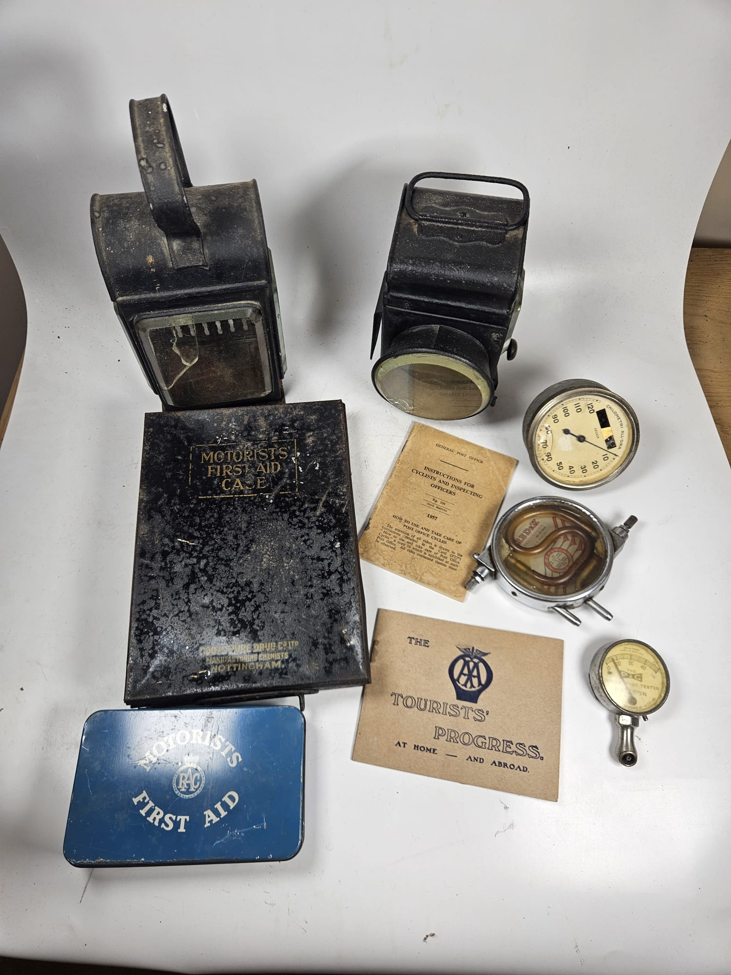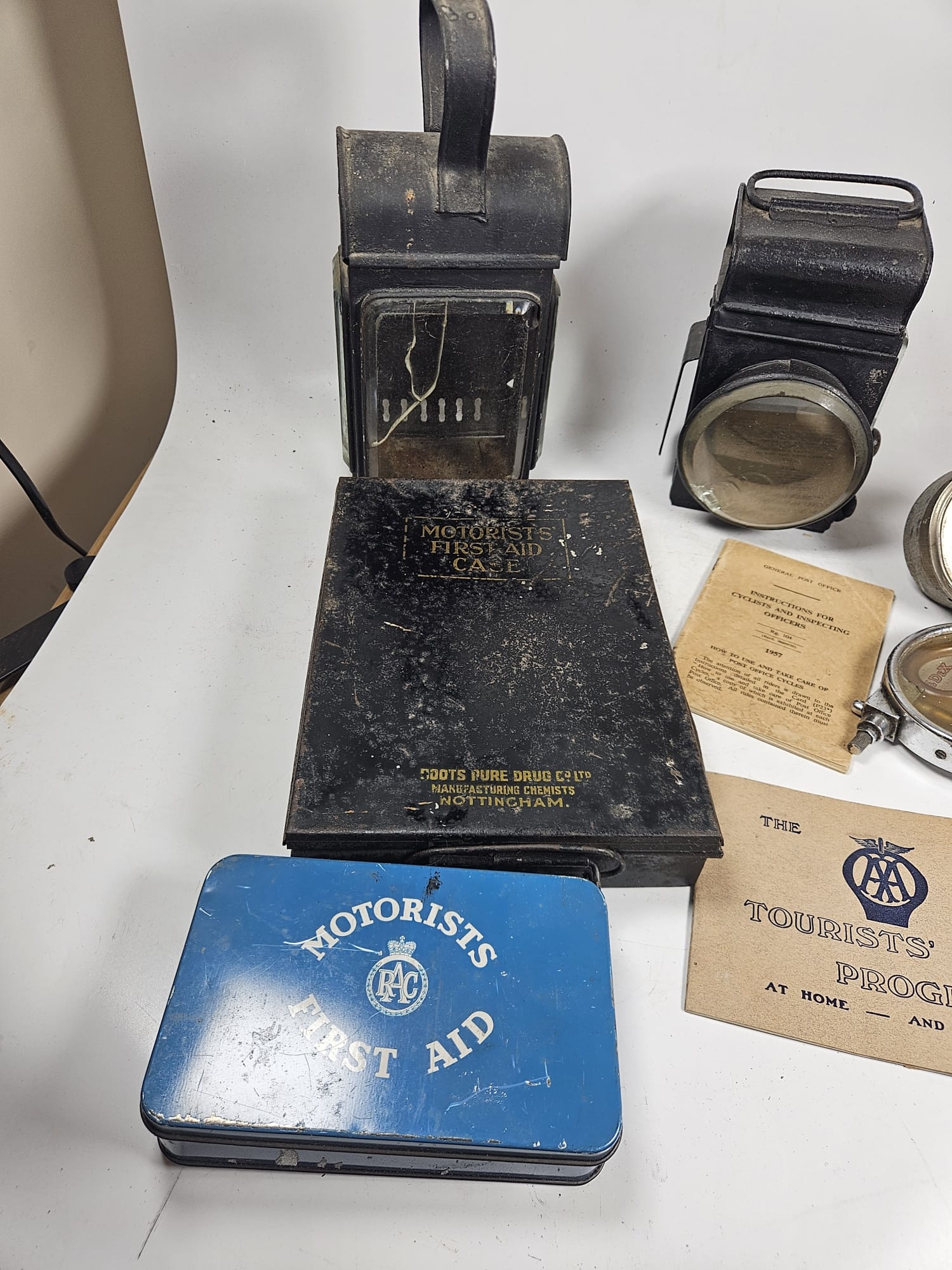 2no Vintage Motoring Oil Lamps t/w 2no Motorist First Aid Kits and Other Sundry Items