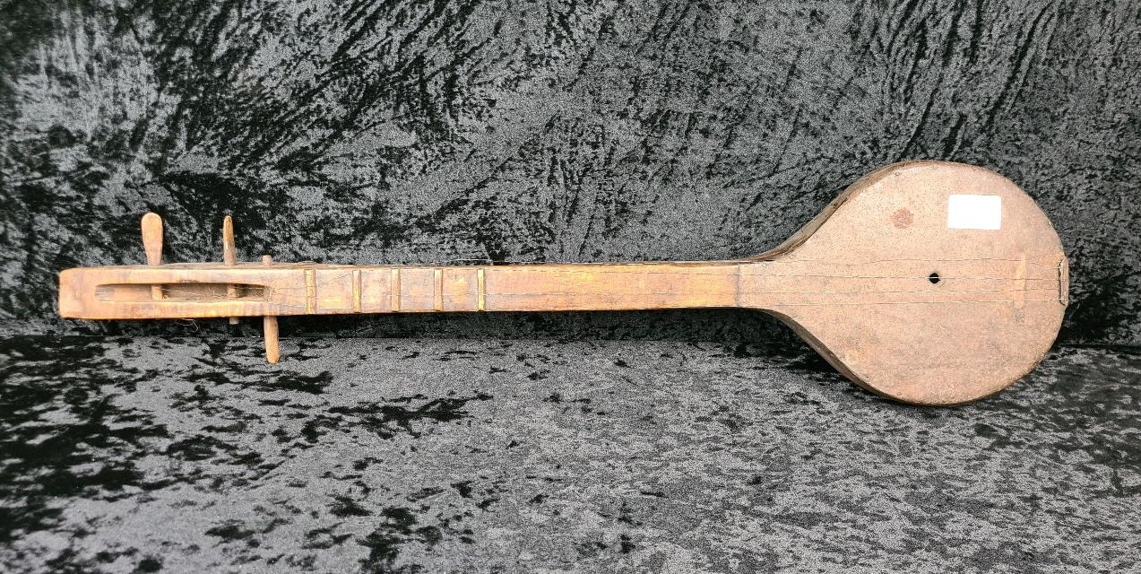 Traditional carved wooden northern lute, most likely Thai. Approx L79cm.