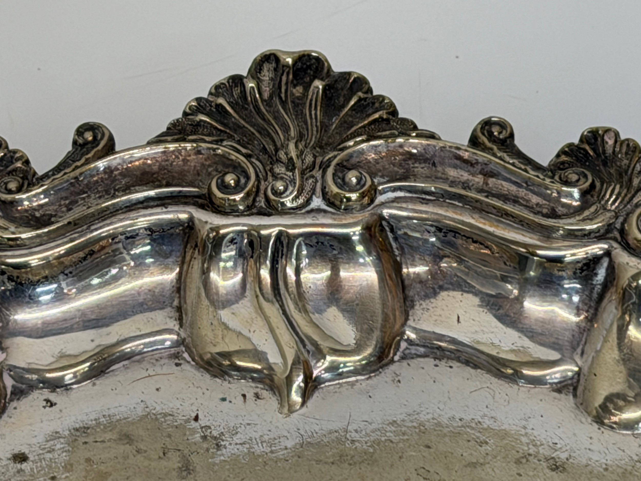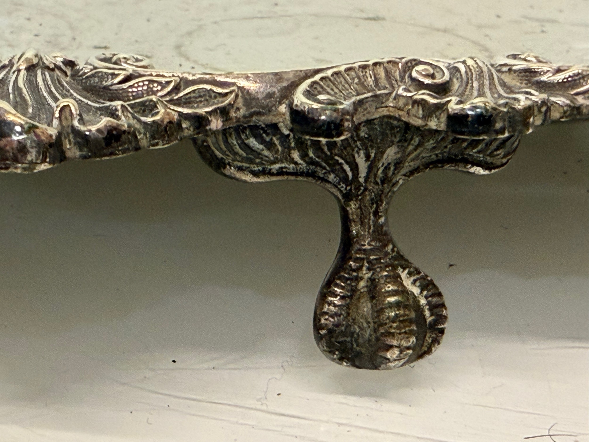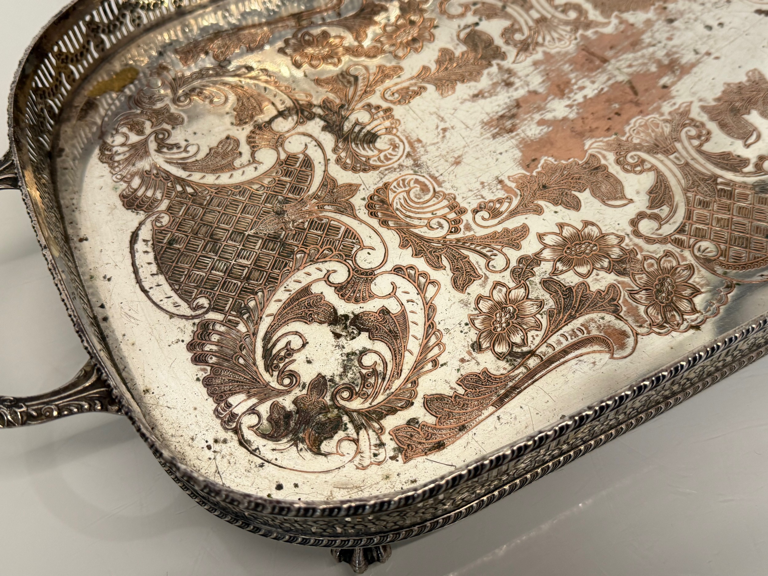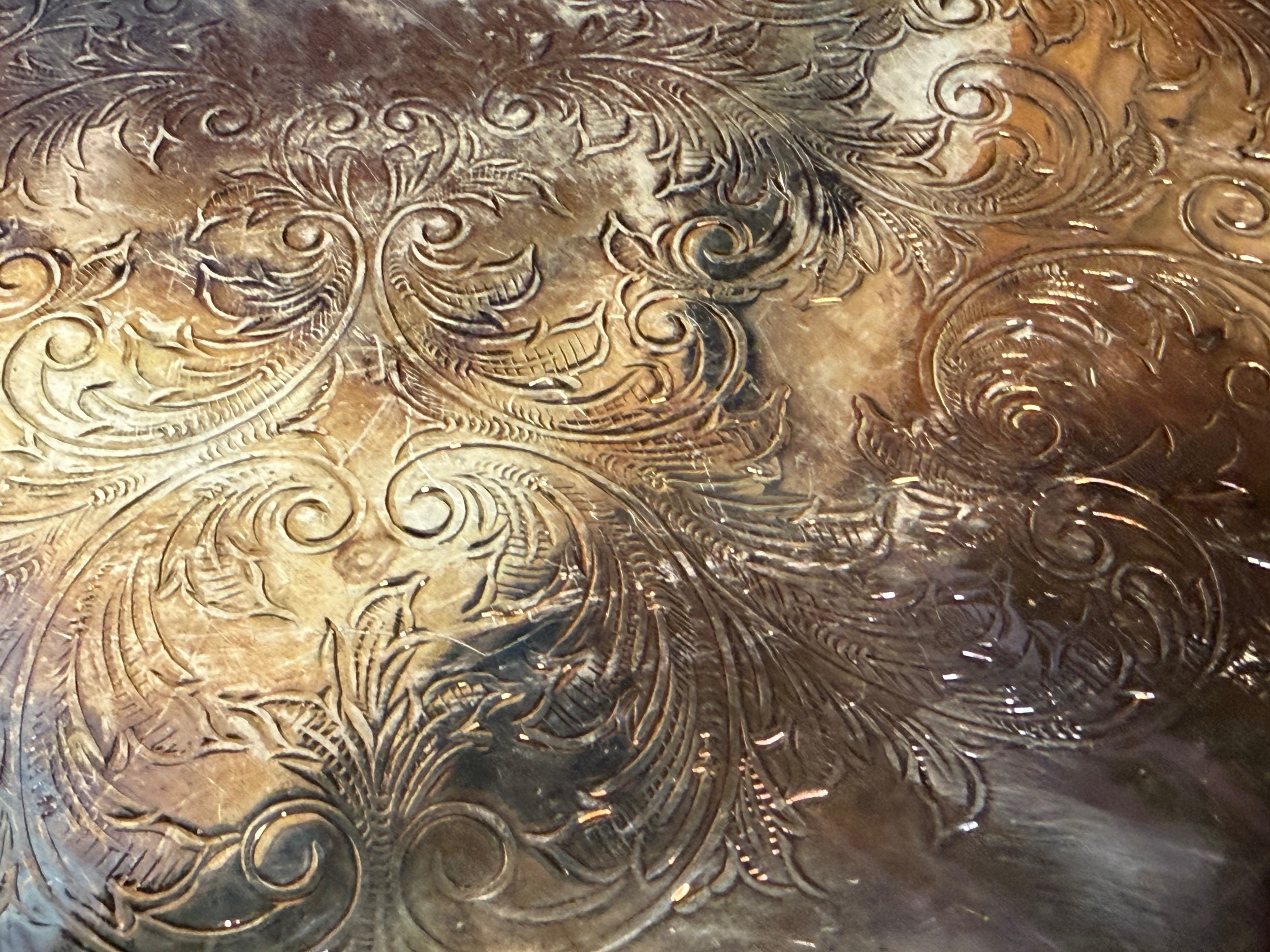 Silver plated table wares, two salvers 32 cm and 37 cm in diameter and a tray, 42 cm x 25 cm plus handles.