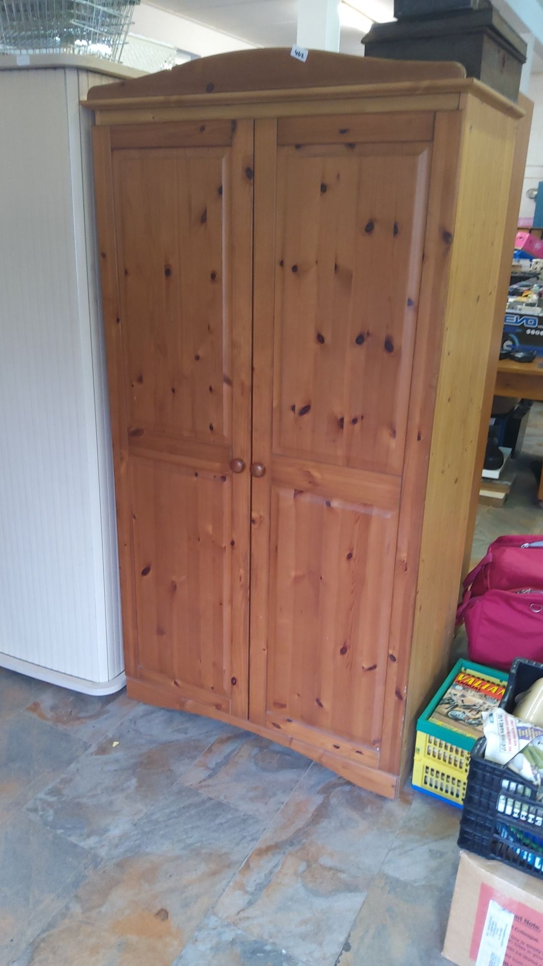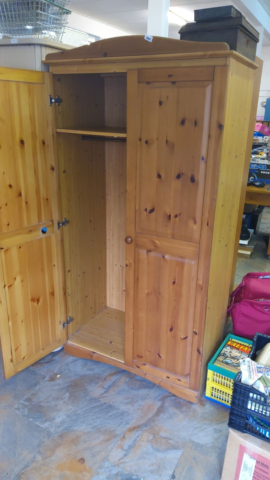 Pine wardrobe with double doors and internal shelf. Simple, classic design.