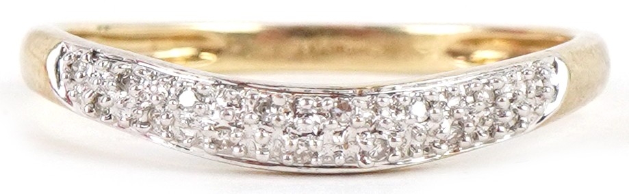 A 9ct gold diamond two row half eternity ring, size S, 1.4g.