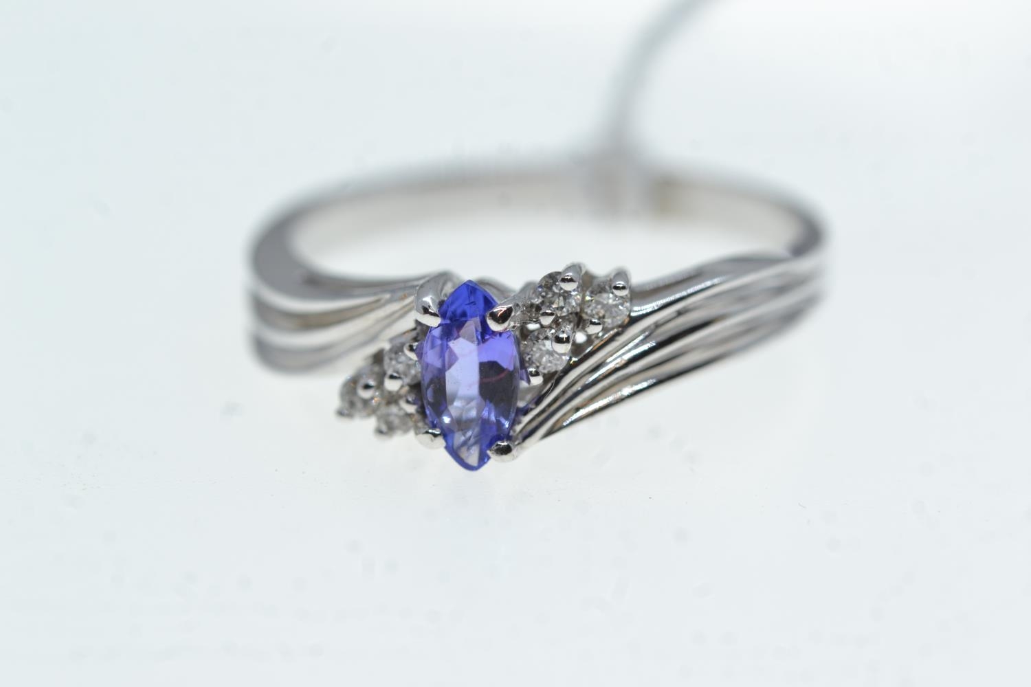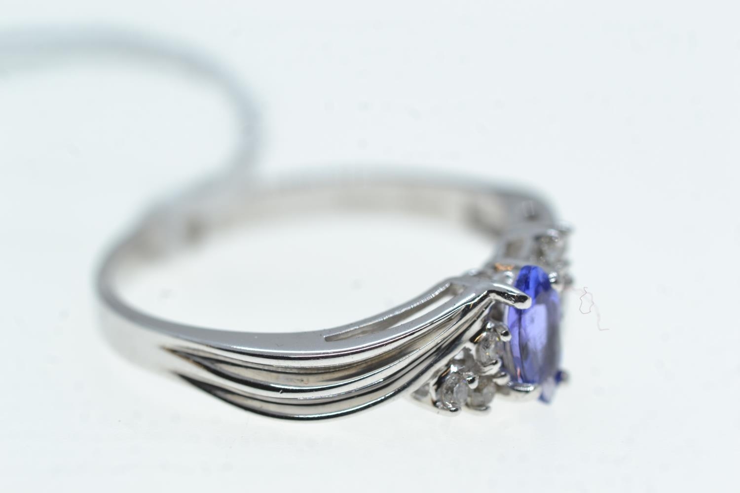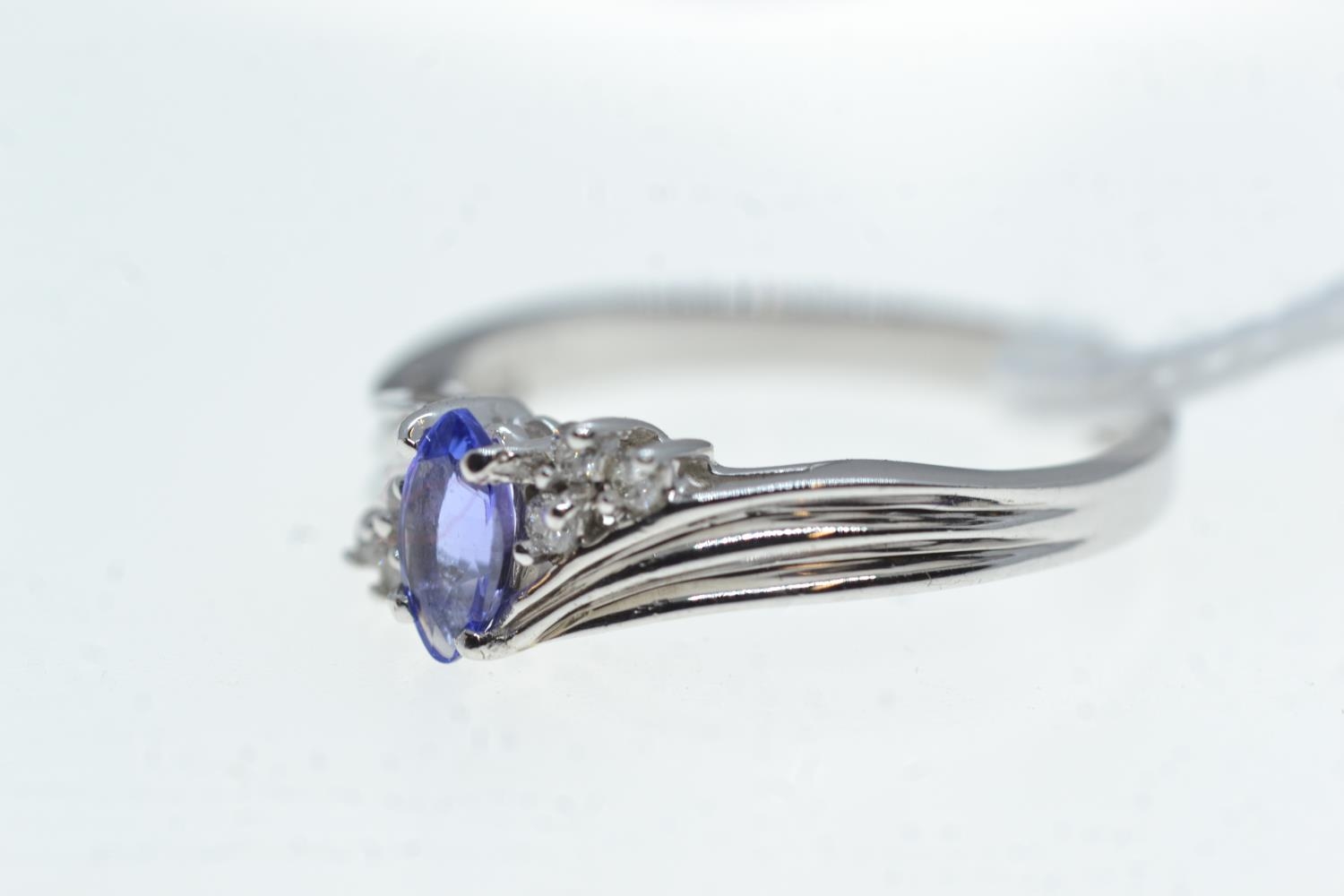 14ct white gold, tanzanite & diamond ring, size S, 3.34 grams