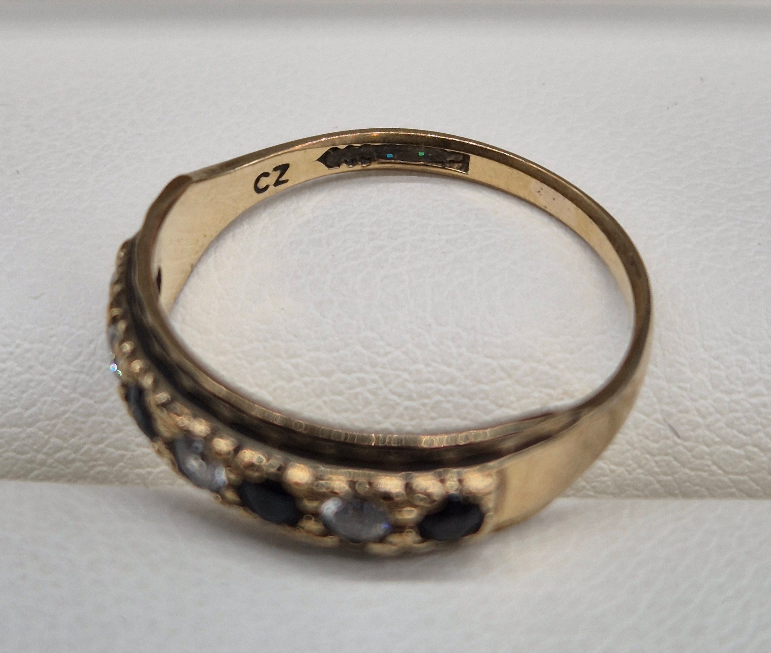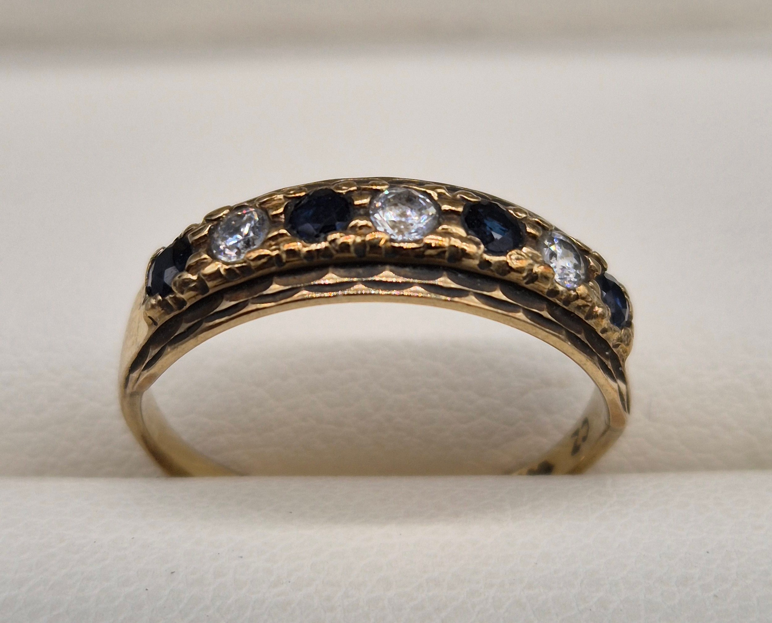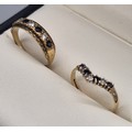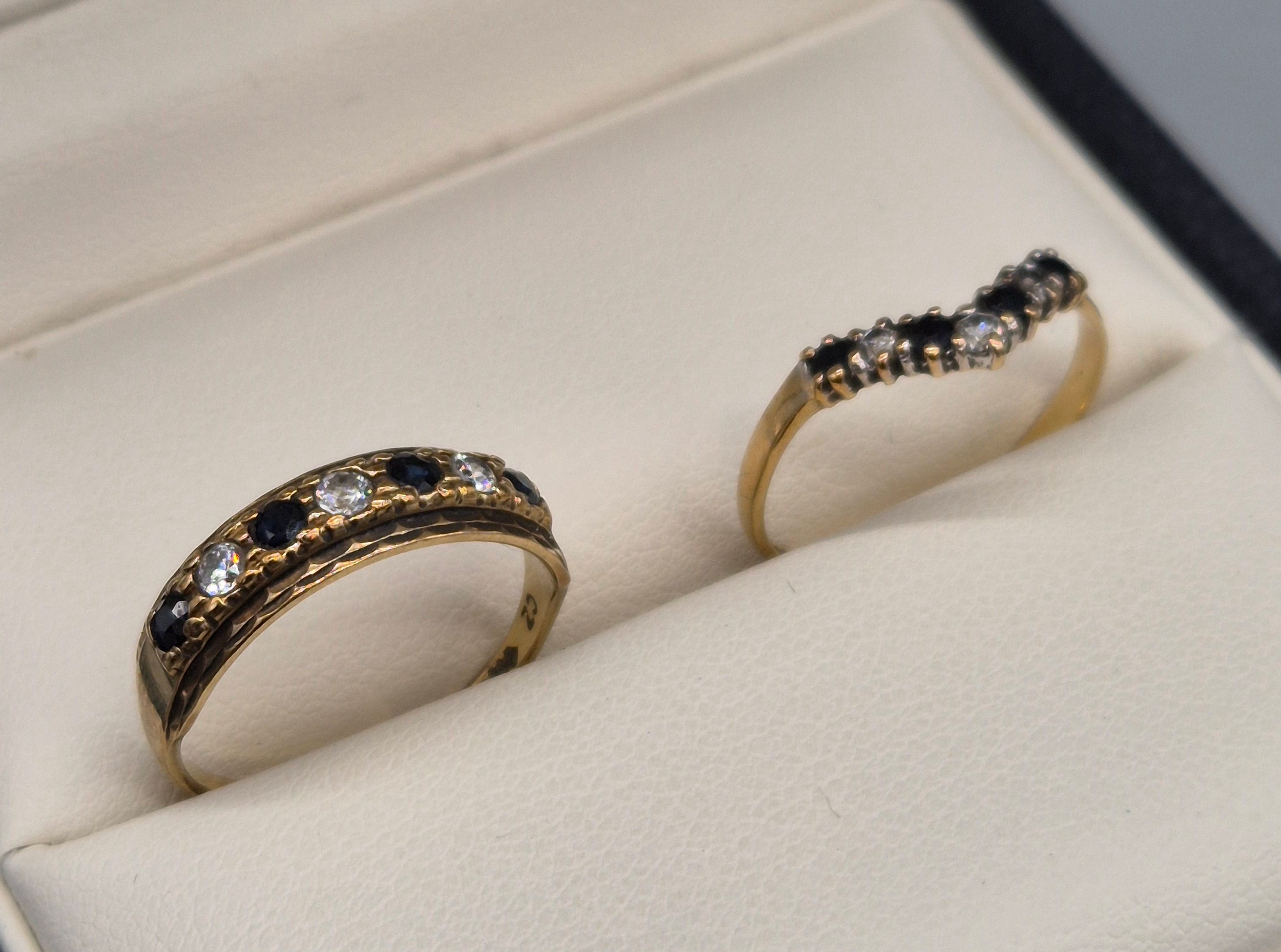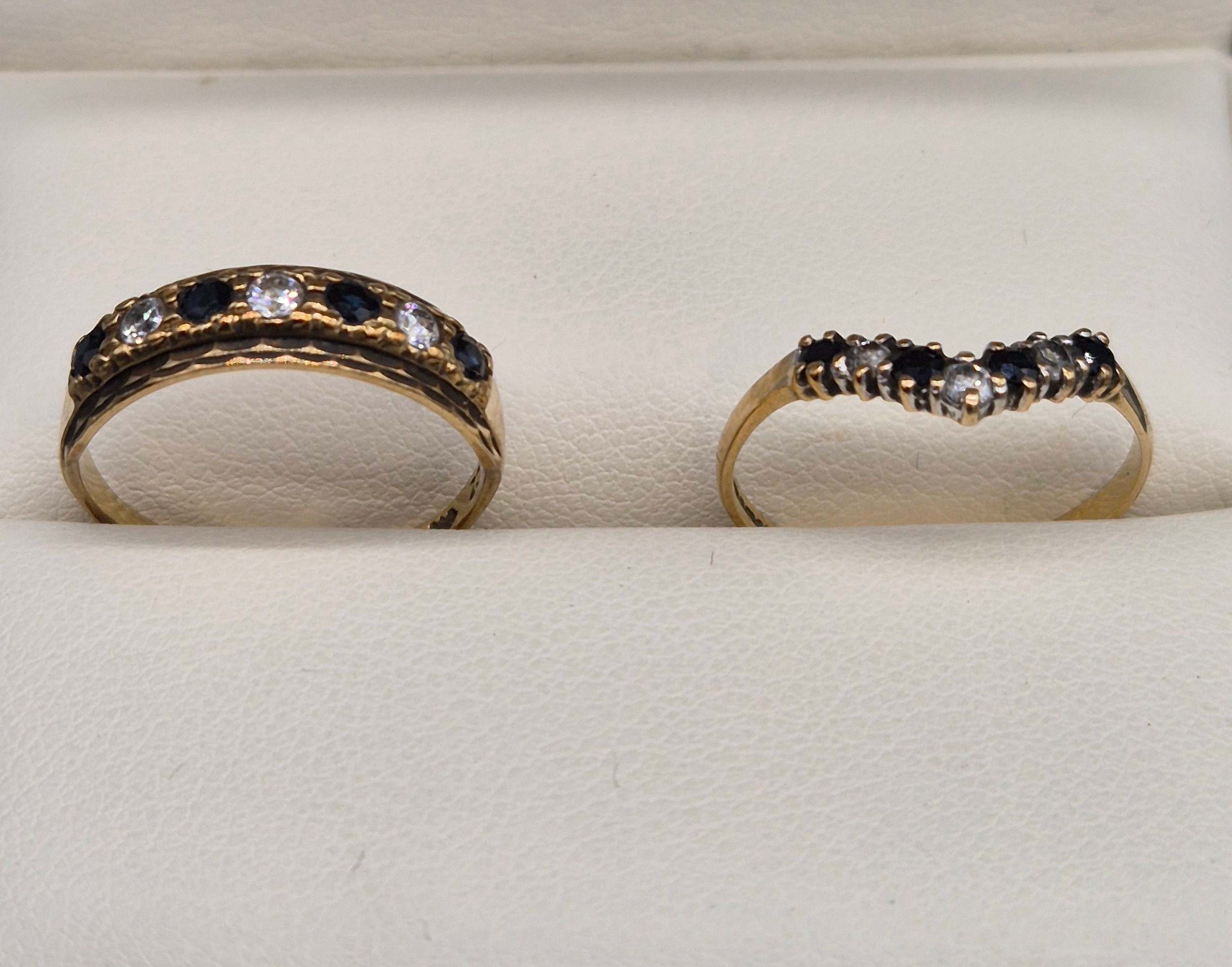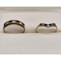Two 9ct yellow gold, sapphire and CZ Stone rings. 2.88Grams. Ring size L & M.