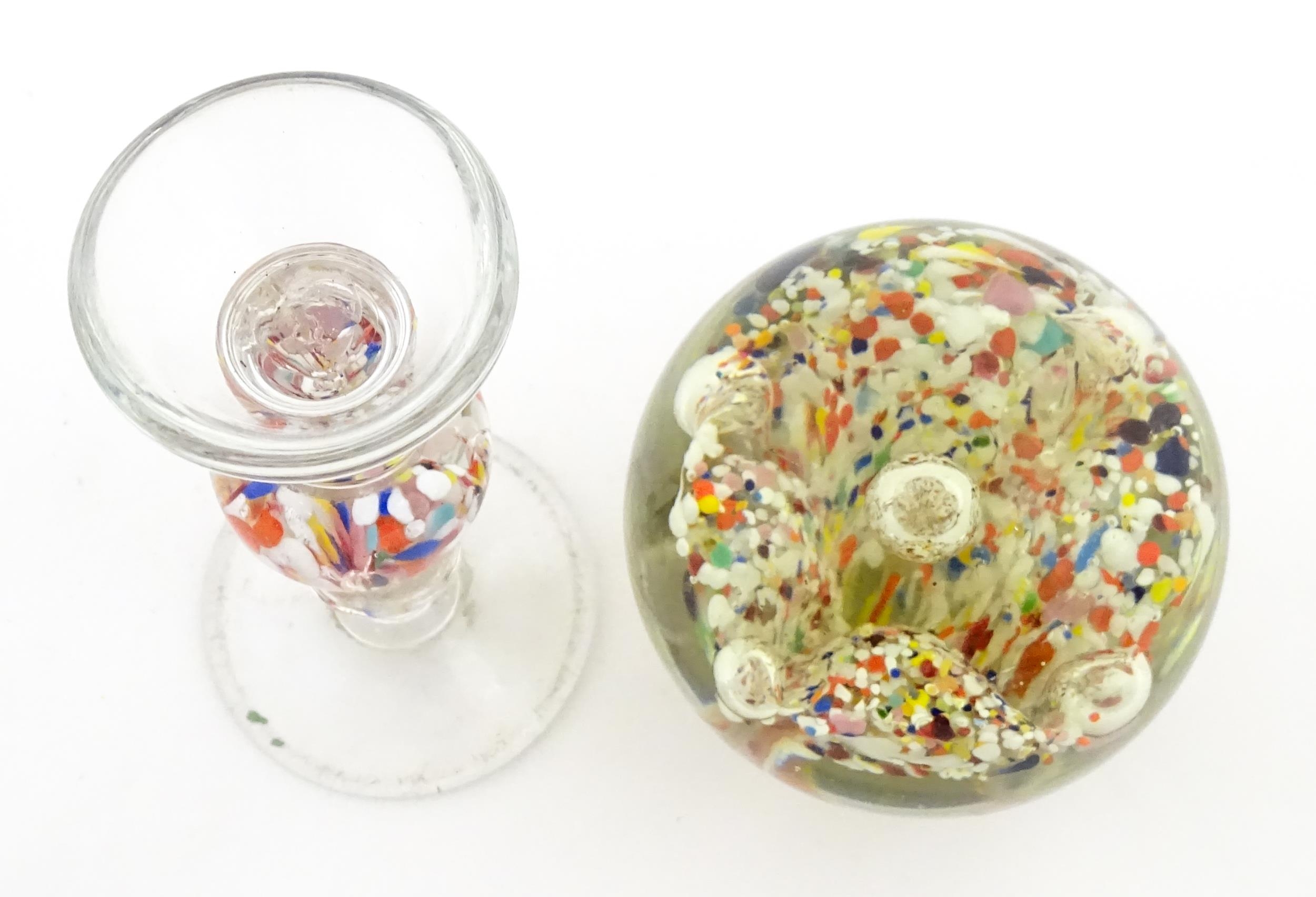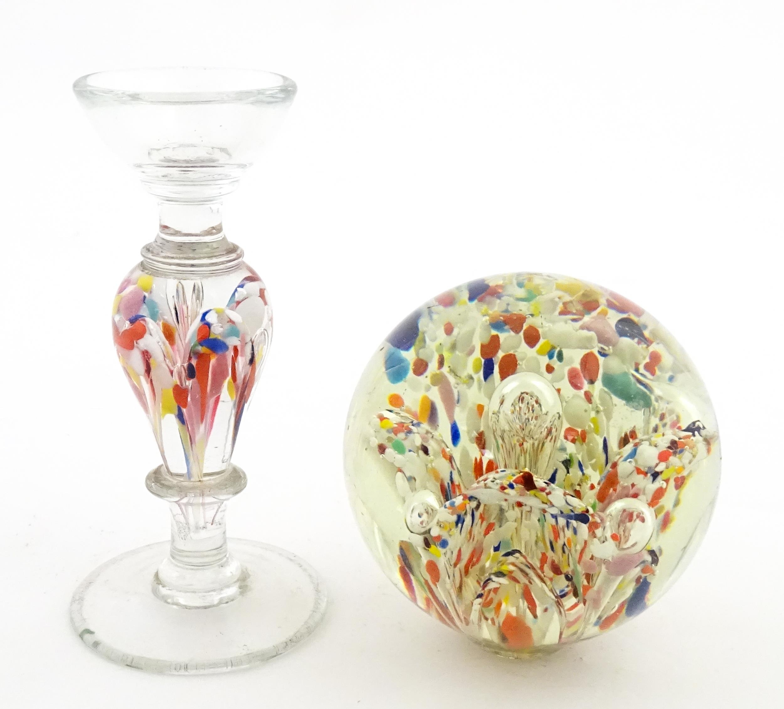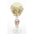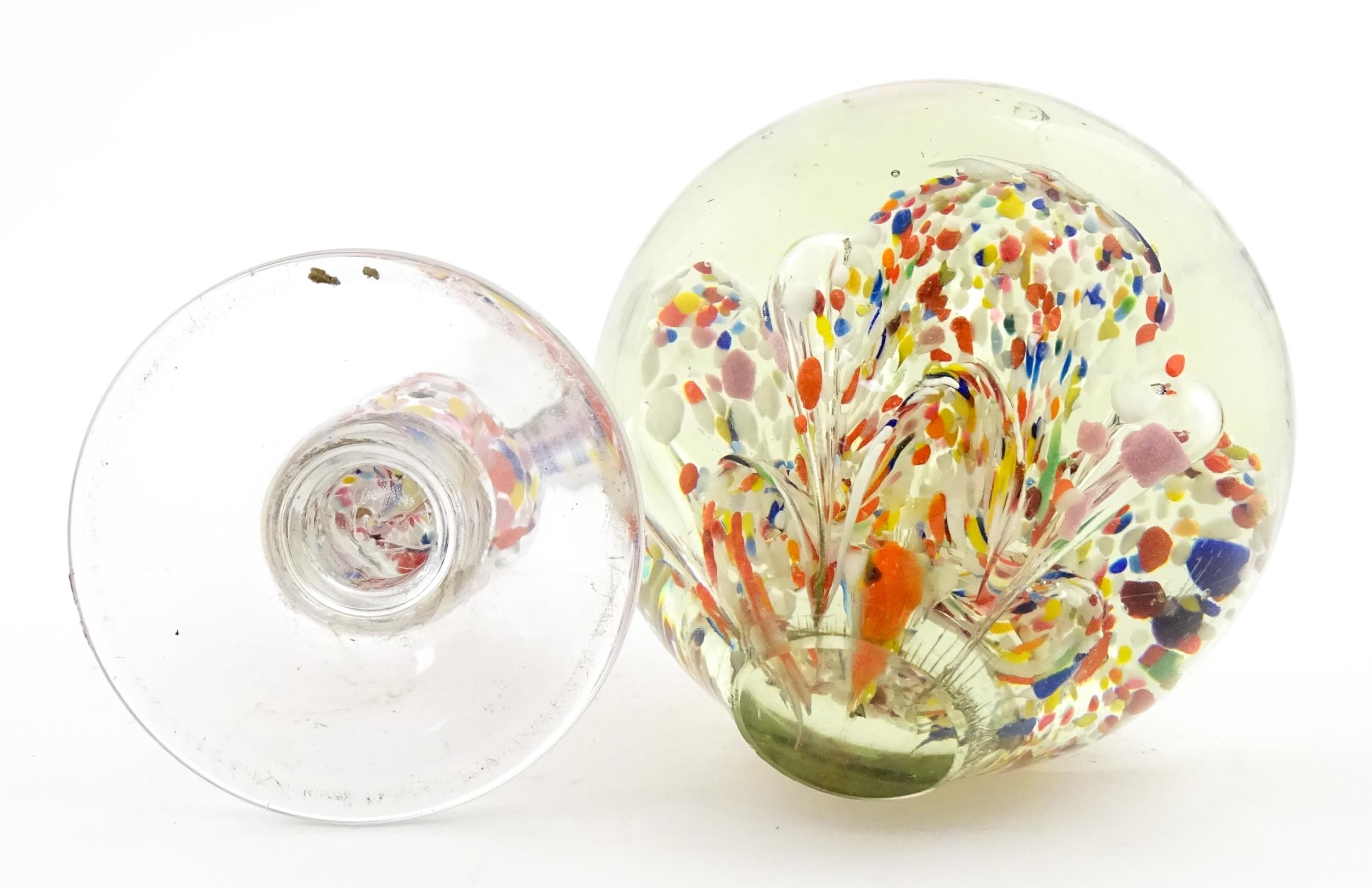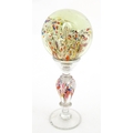 A glass pedestal paperweight / wig stand. Approx. 9 1/2" high overall