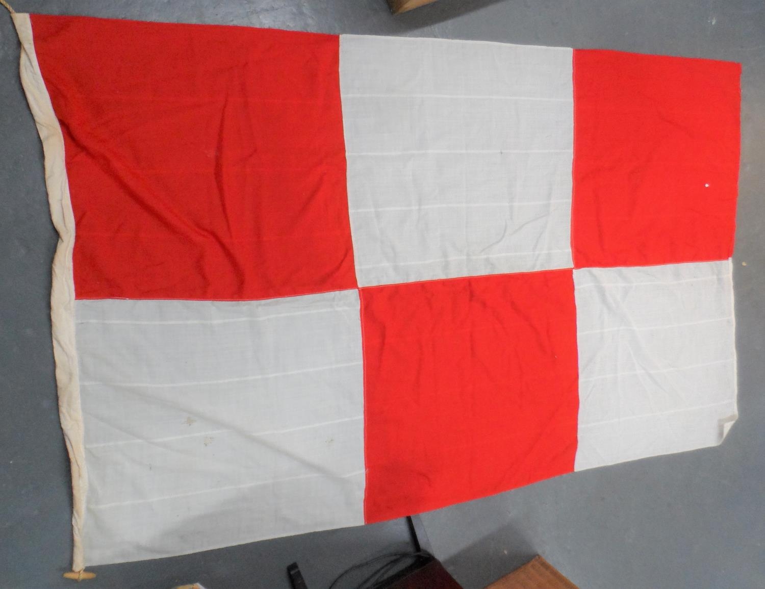 Large vintage red & white check flag, possibly an old British Navy signals flag,