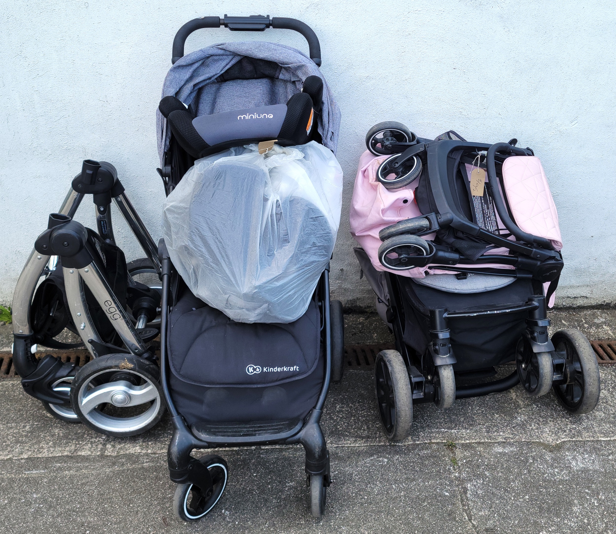 SELECTION OF FOUR PRAMS AND A BAG OF BABY/ PRAM ACCESSORIESincluding Silver Cross and Kinderkraft
