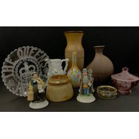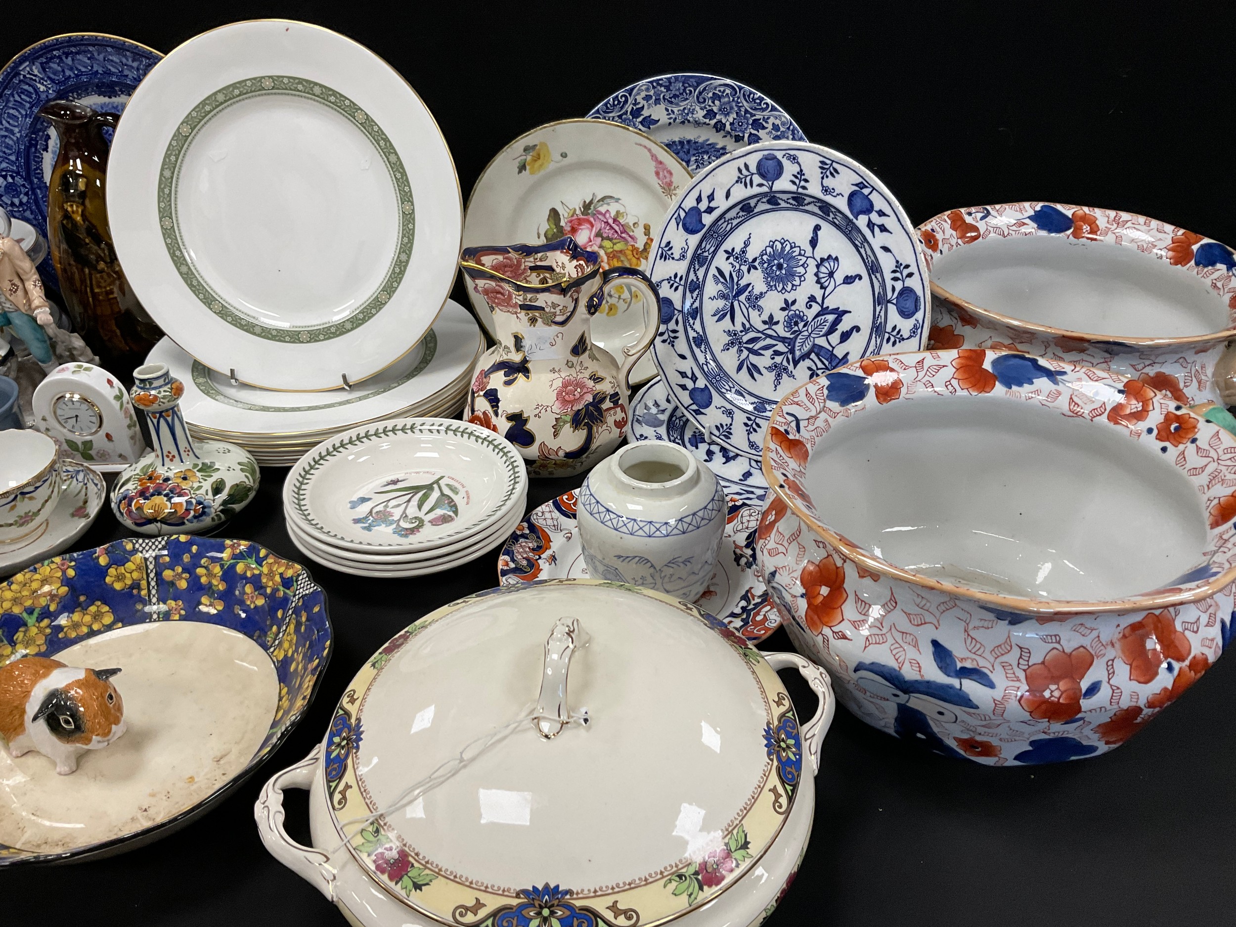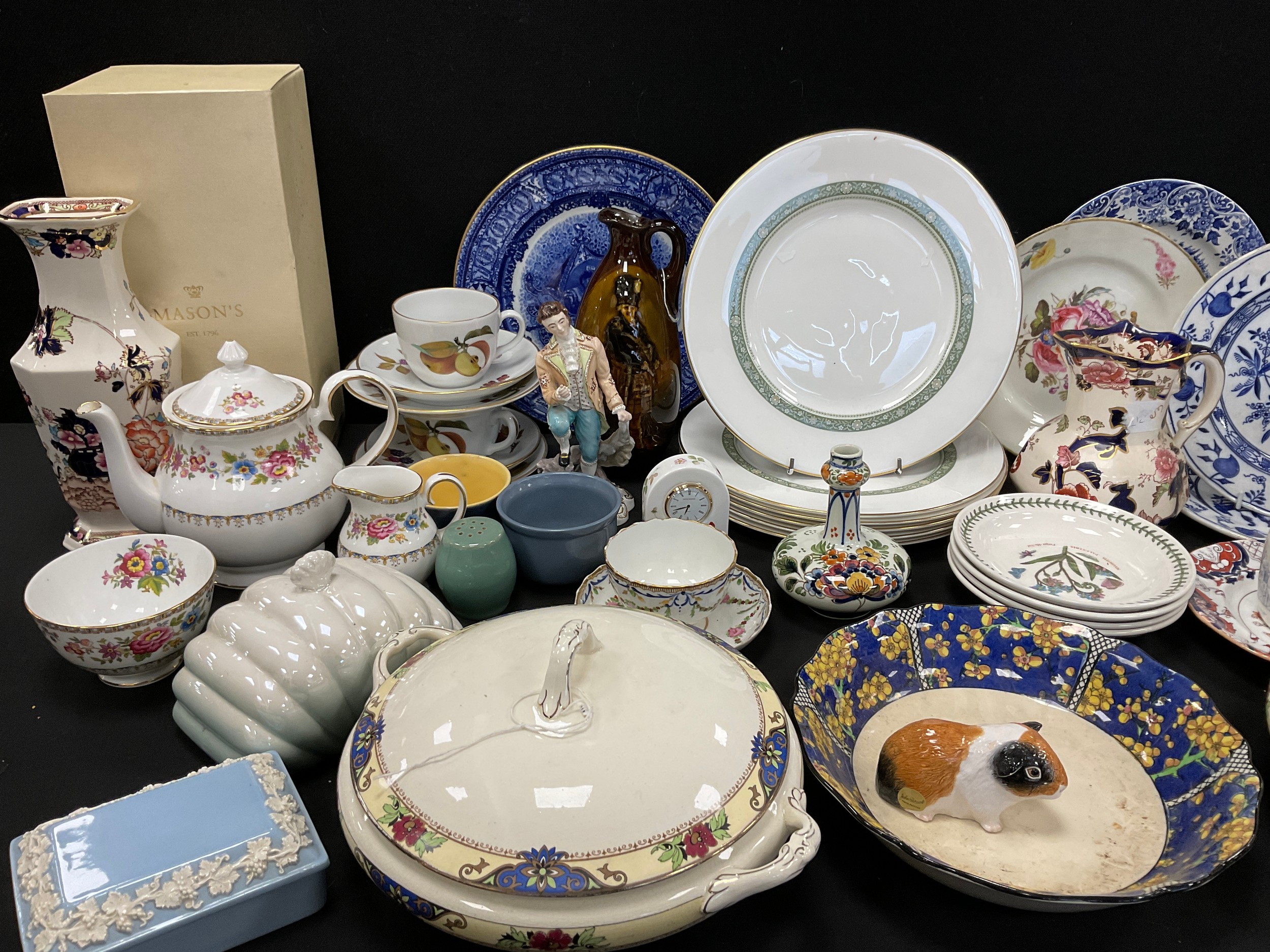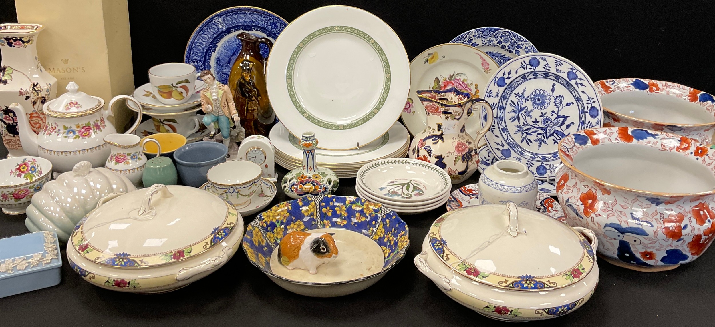 Ceramics - a set of six Royal Doulton Lombardy pattern plates, four Portmerion Botanic Garden desert dishes, a three piece Royal Grafton Malvern pattern tea set, Masons Mandalay vase, a pair of Wedgwood Onion pattern plates; etc