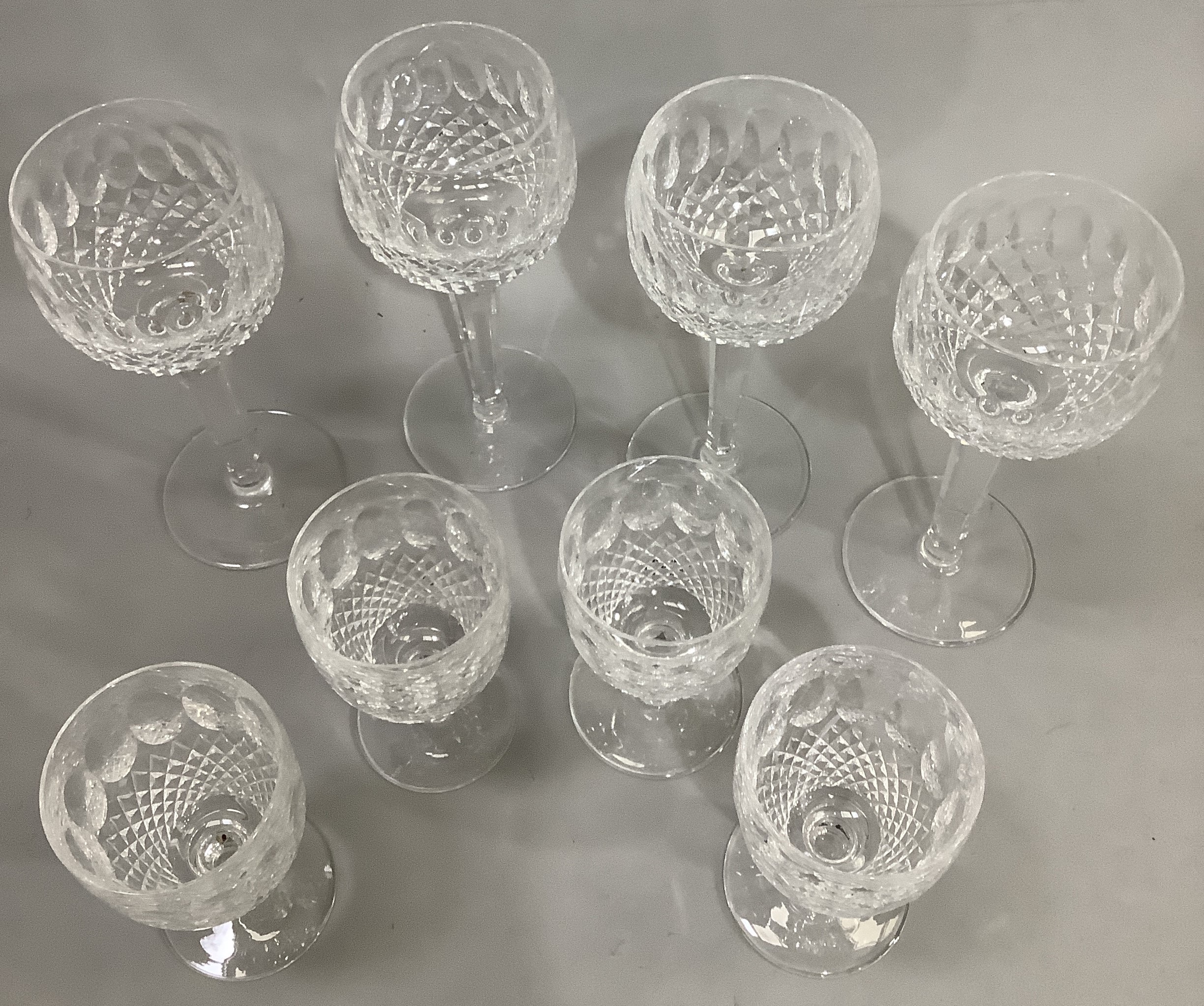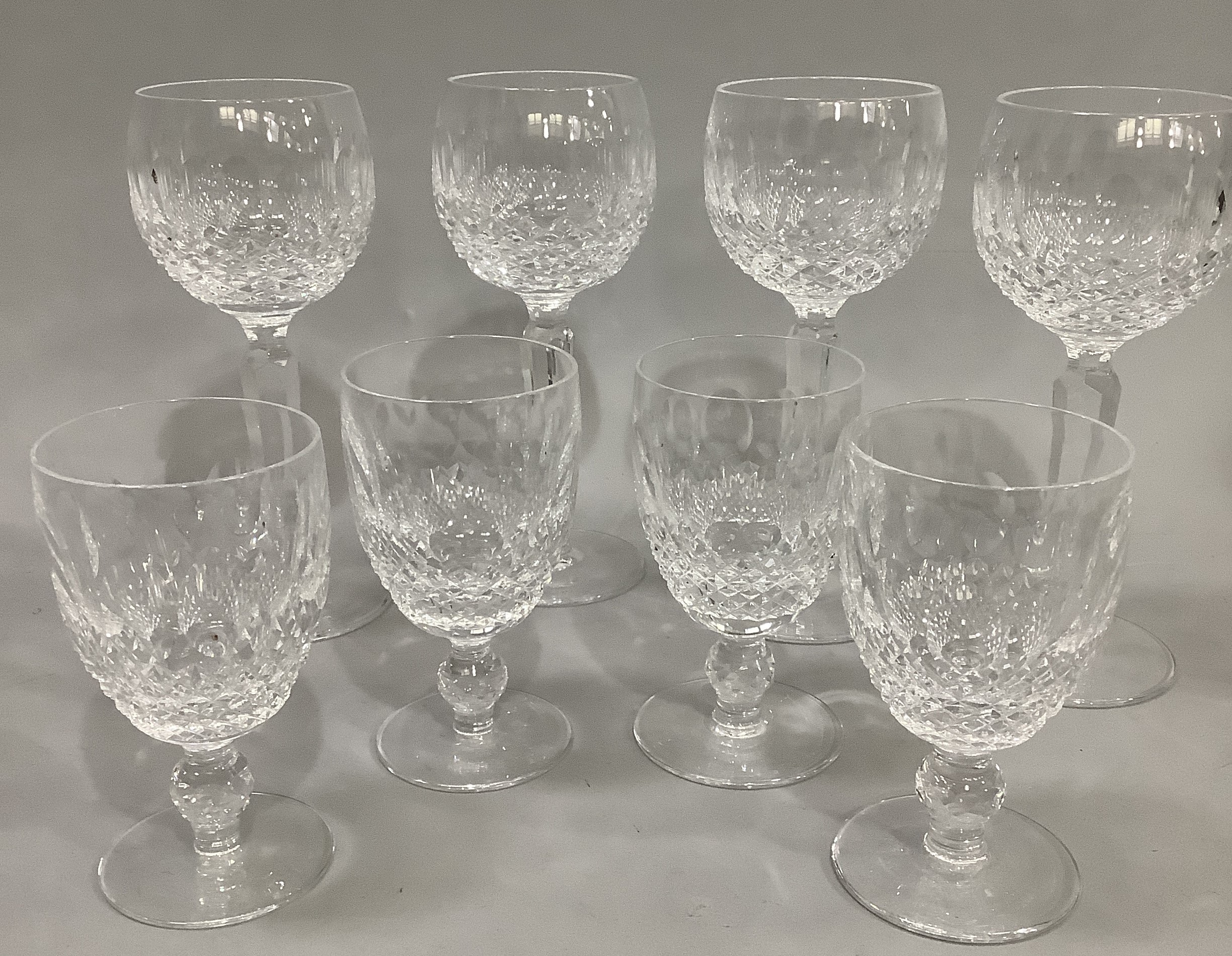 A boxed set of four Waterford Colleen crystal hock glasses and four Colleen Claret glasses
