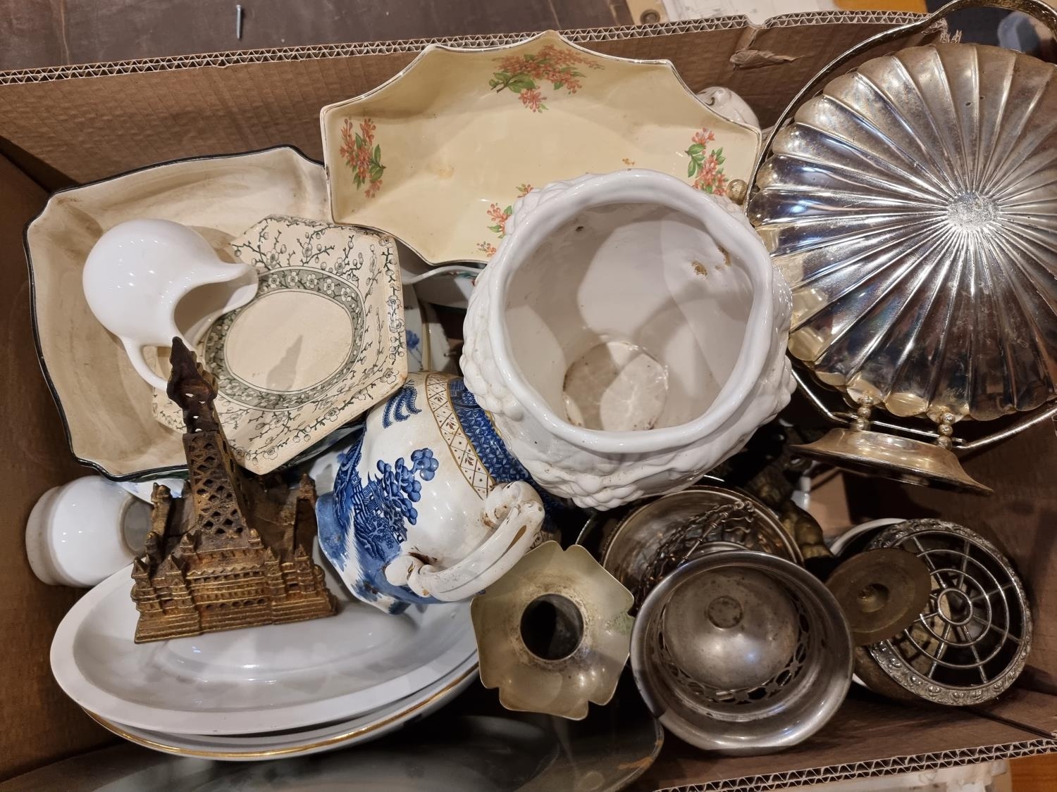 A painted cast metal money box in the form of Blackpool Tower together with, miscellaneous cermaics including- a Royal Doulton serving dish.