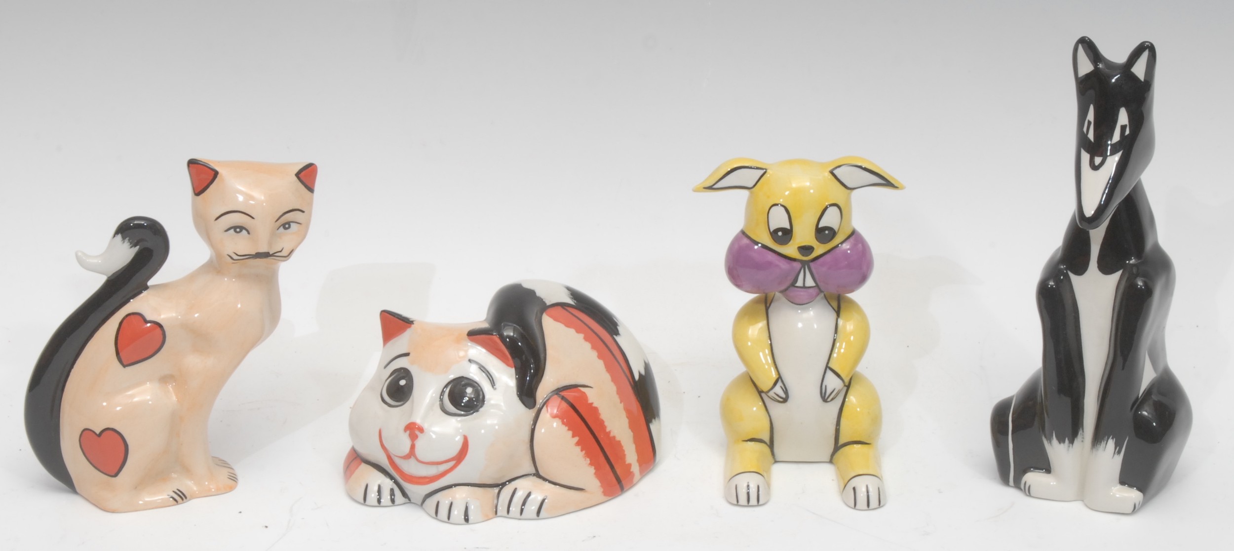 Lorna Bailey - limited edition Valentine Cat, 2002, signed and numbered 28/50; others Sooter the Cat, Oggy and Buck the Hare, all signed (4)