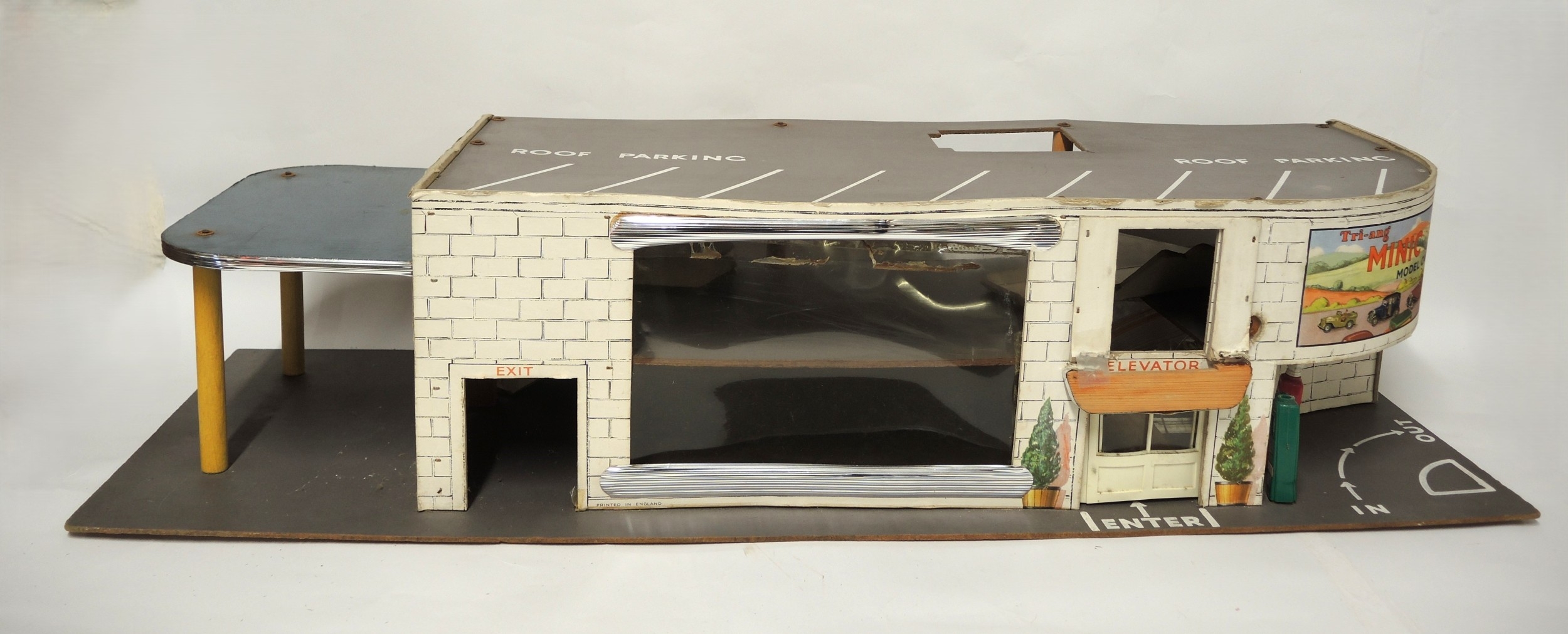 Minic toy garage, painted wooden toy fort, a roulette game, Airfix construction kit and a boxed viewer