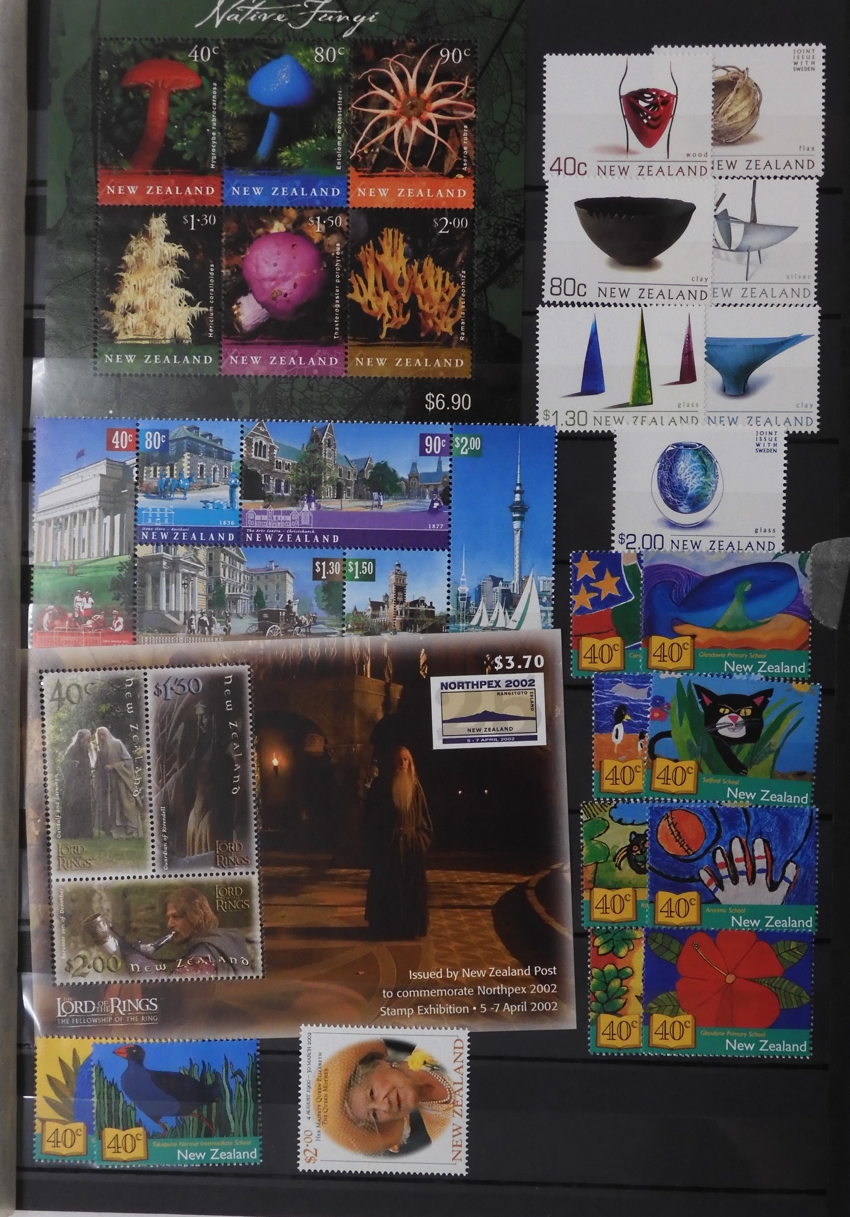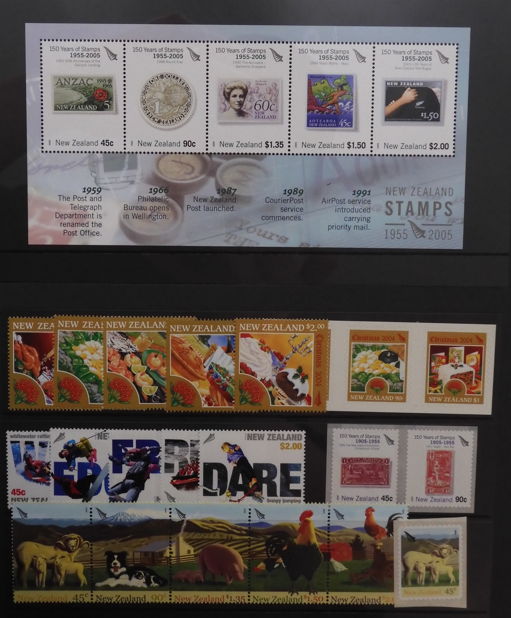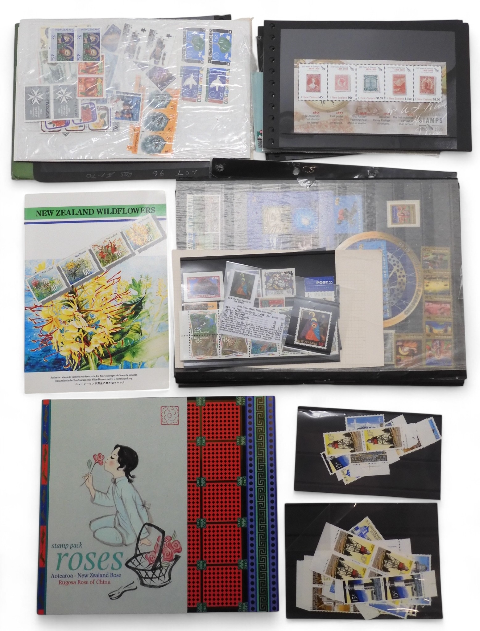 New Zealand. Collection of Unmounted Mint Stamps and Miniature Sheet for New Zealand , a large quantity on Stock book pages, cards and in envelopes. from late 1990 to mid 2000's Must have a high face value and Cat value. A good lot.