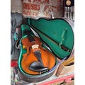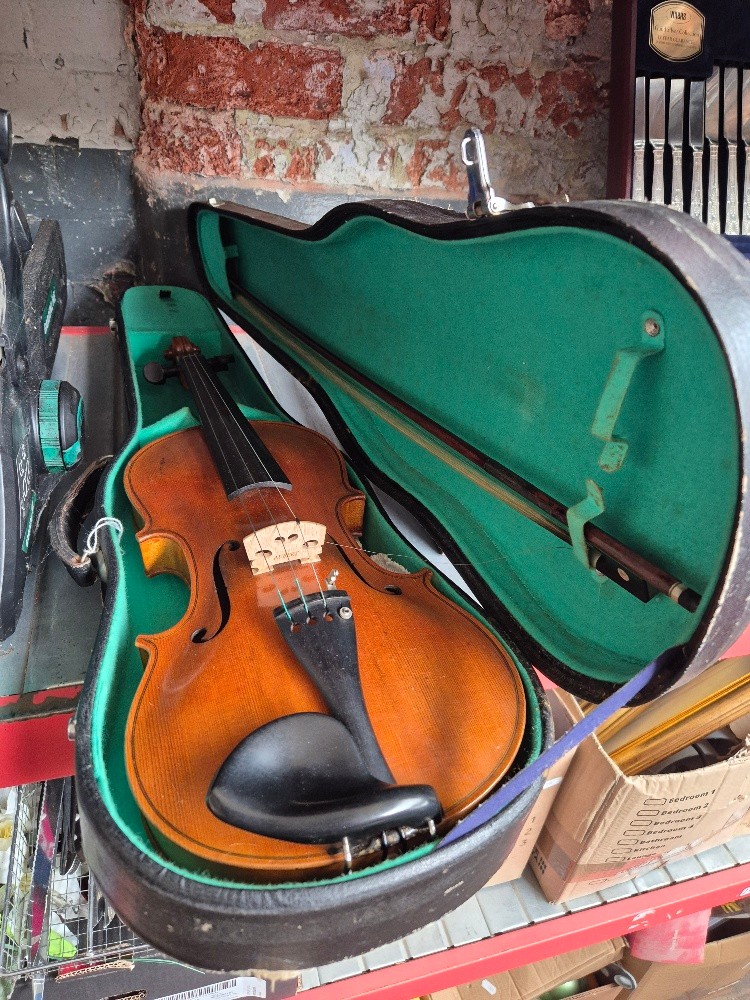 A German violin after Nach Klotz, circa 1900, 14", two piece back with case and bow marked 'TOURTE'.