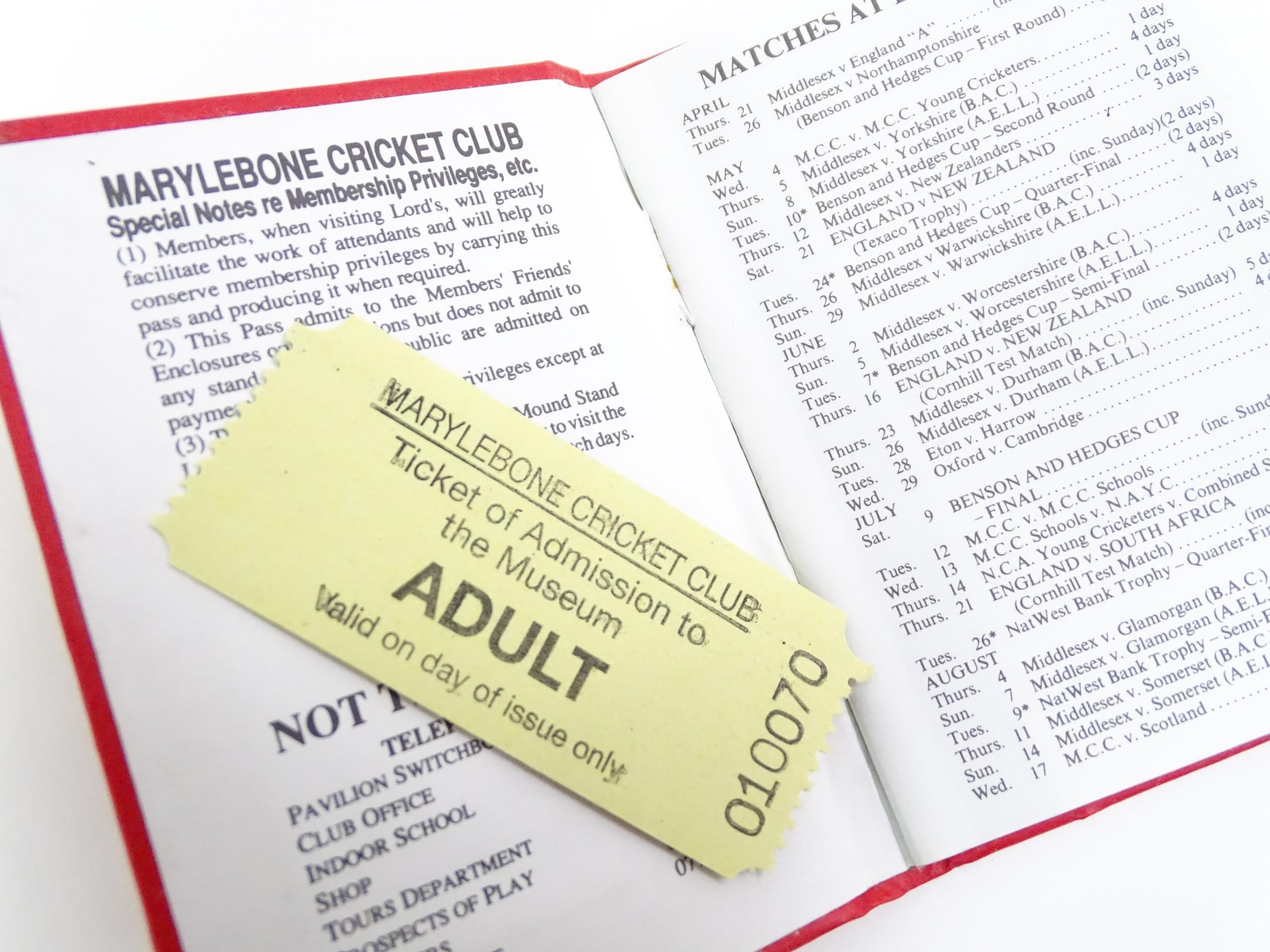 A quantity of MCC members Test Match Cricket tickets/admission vouchers, from the period 1974 - 1990 (25)