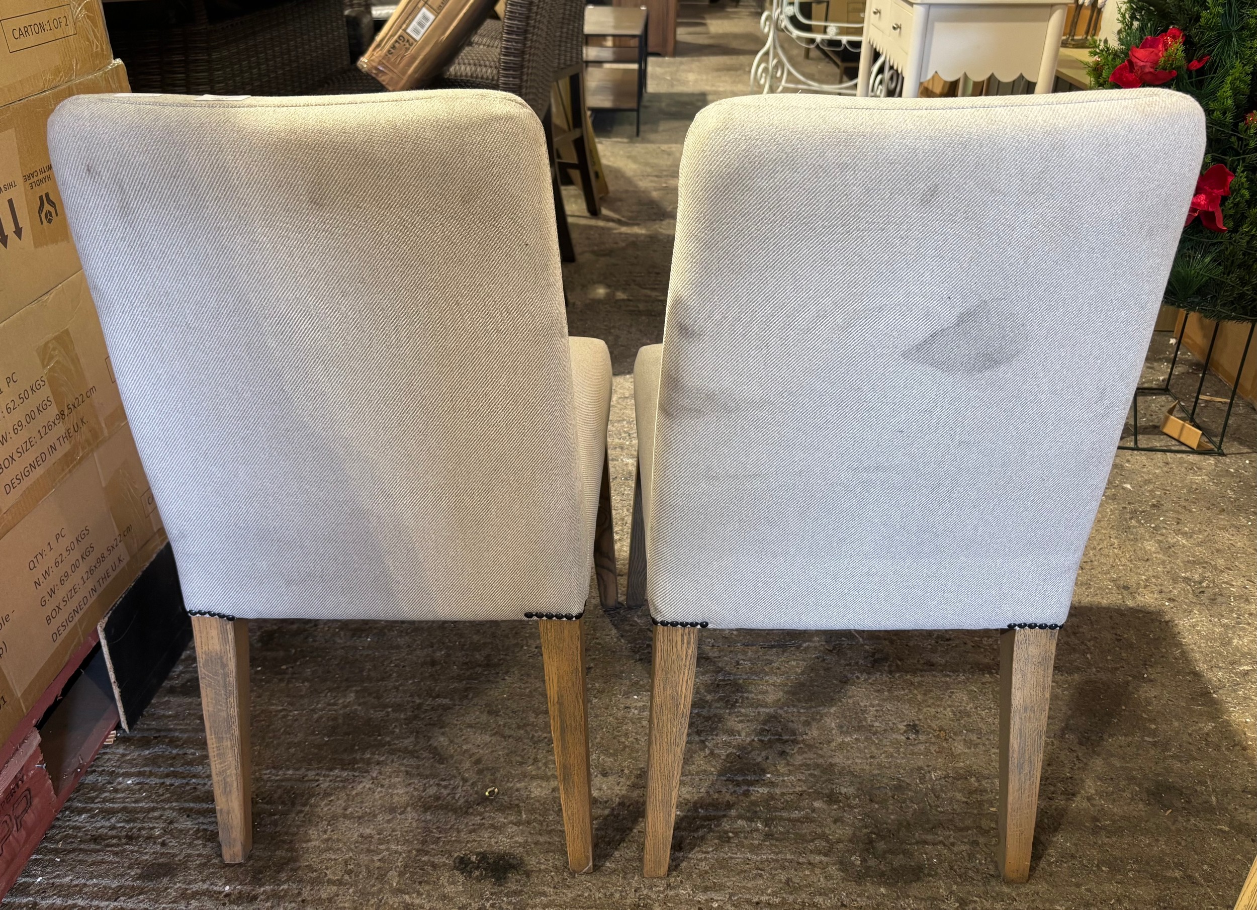 A Pair of campo calico rex dining chairs (Marked fabric)