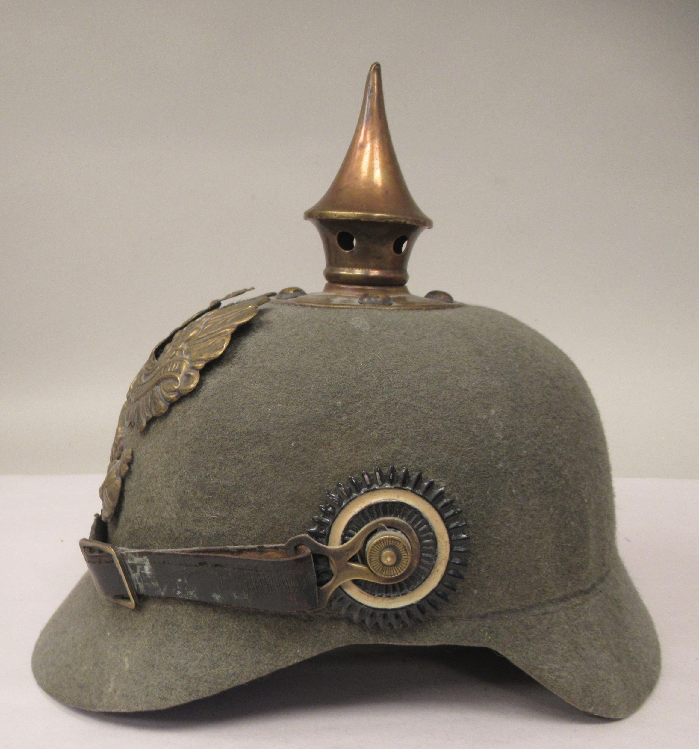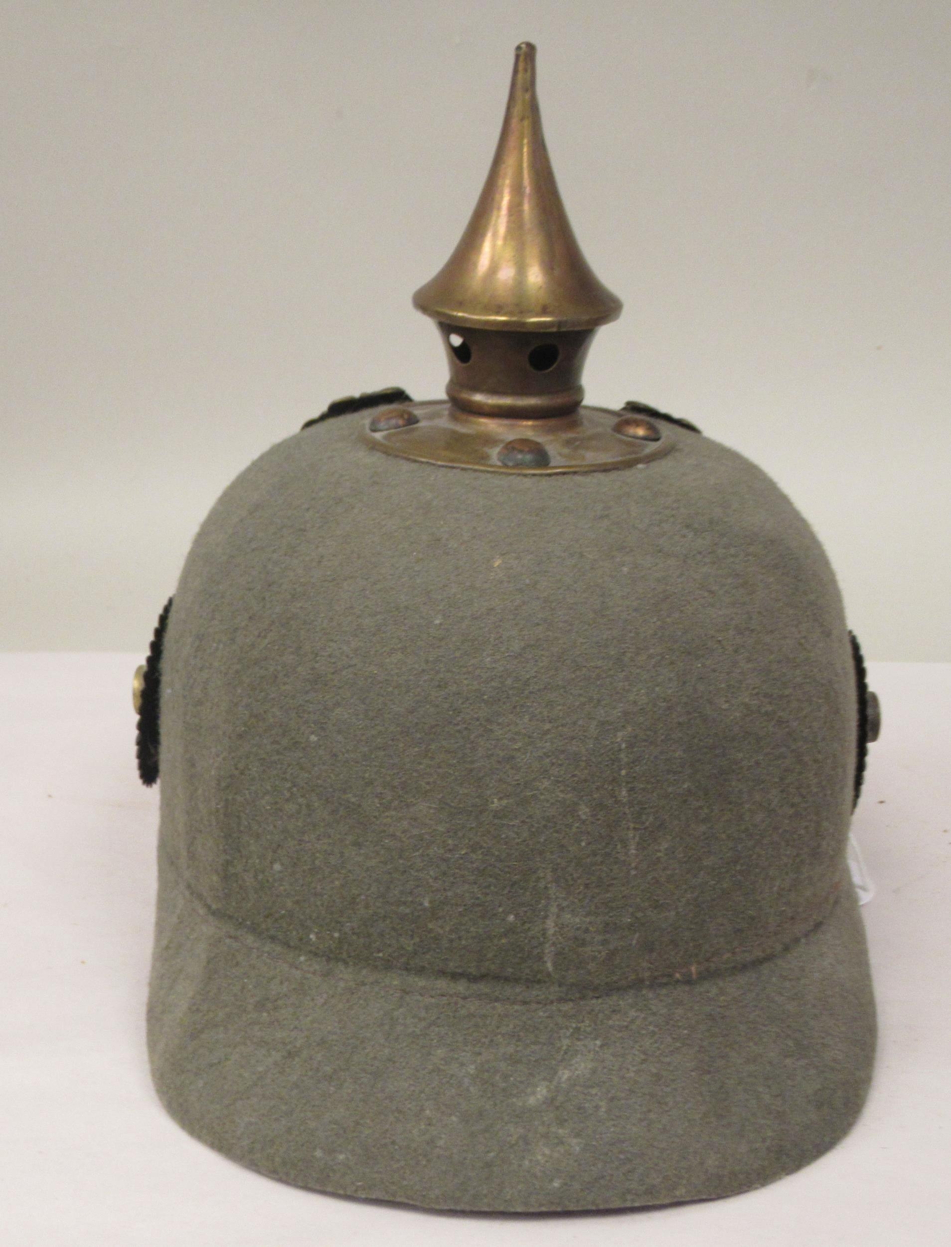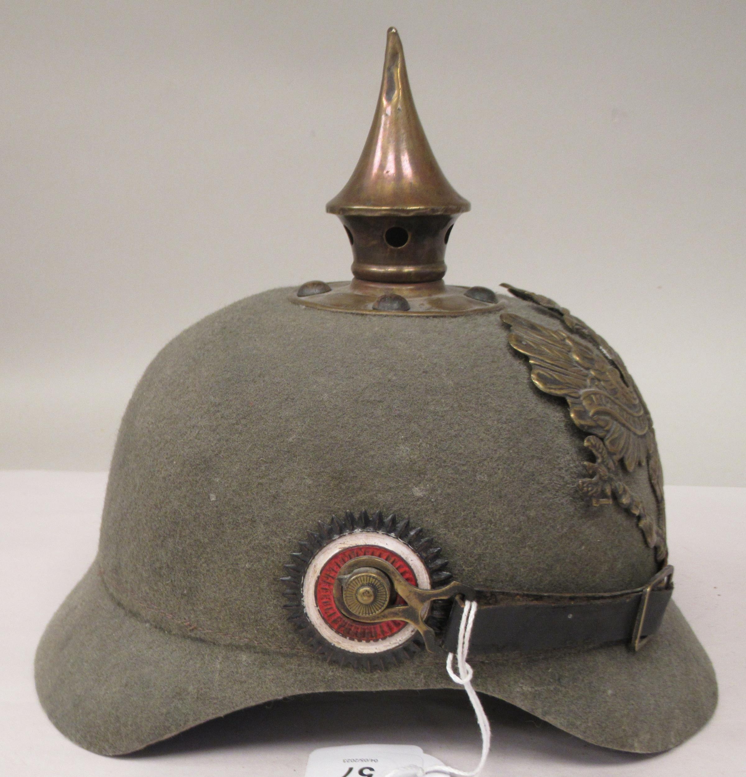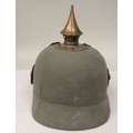 A Great War period German moulded khaki coloured felt pickelhaube with a hide liner and chinstrap