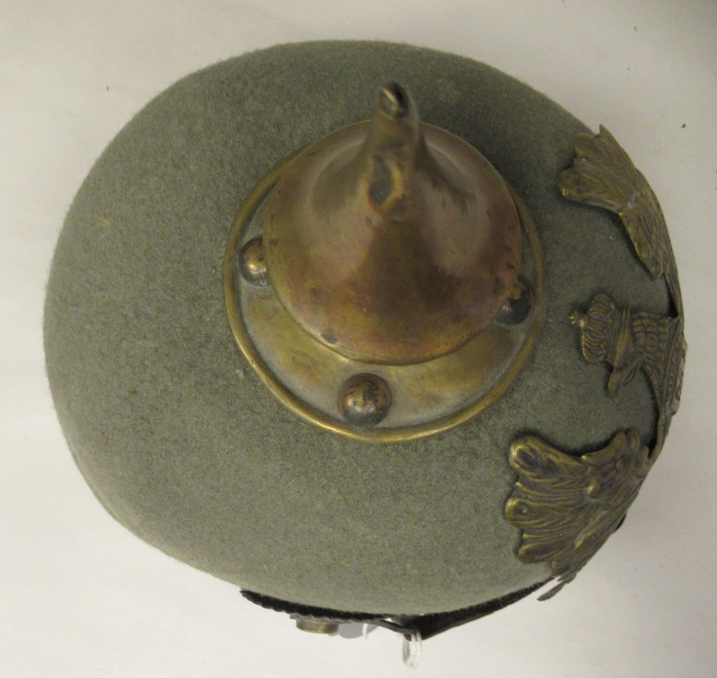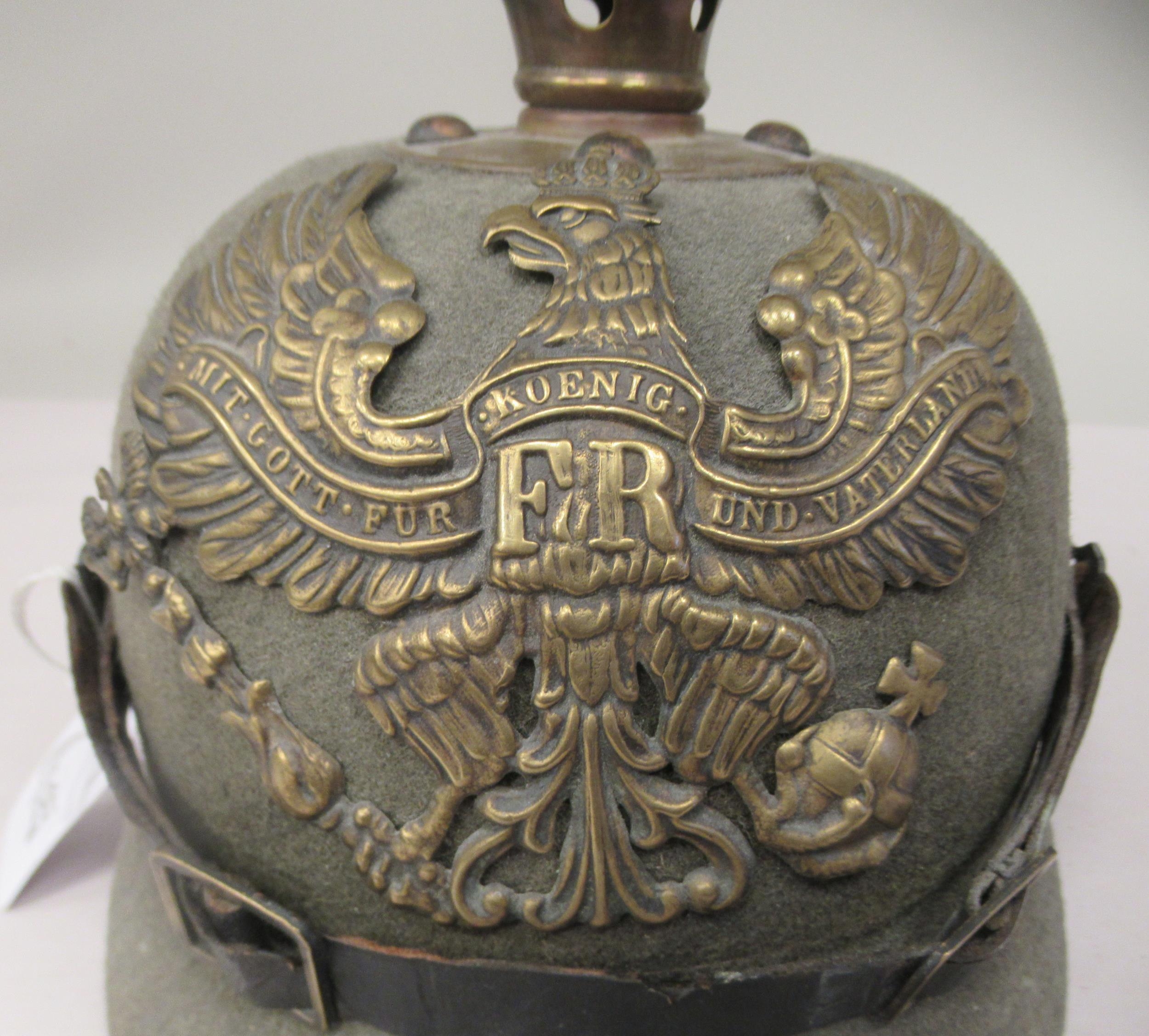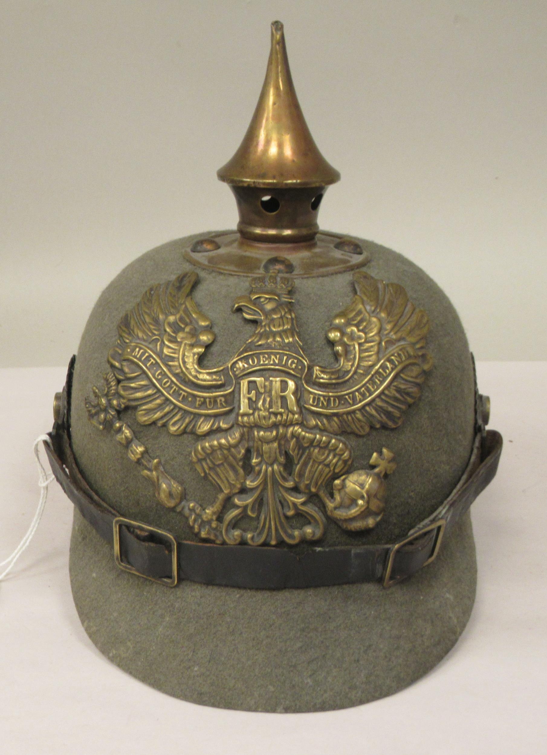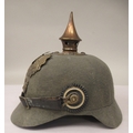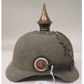 A Great War period German moulded khaki coloured felt pickelhaube with a hide liner and chinstrap