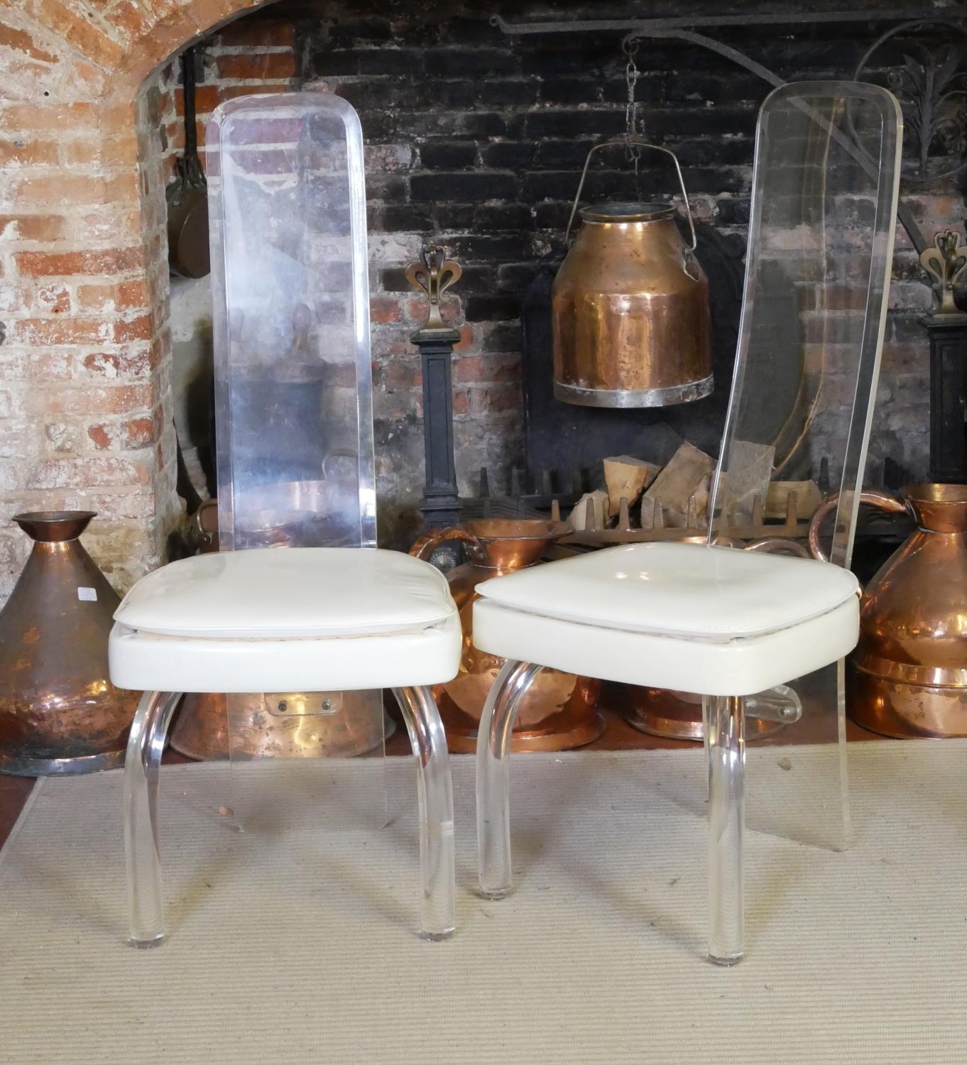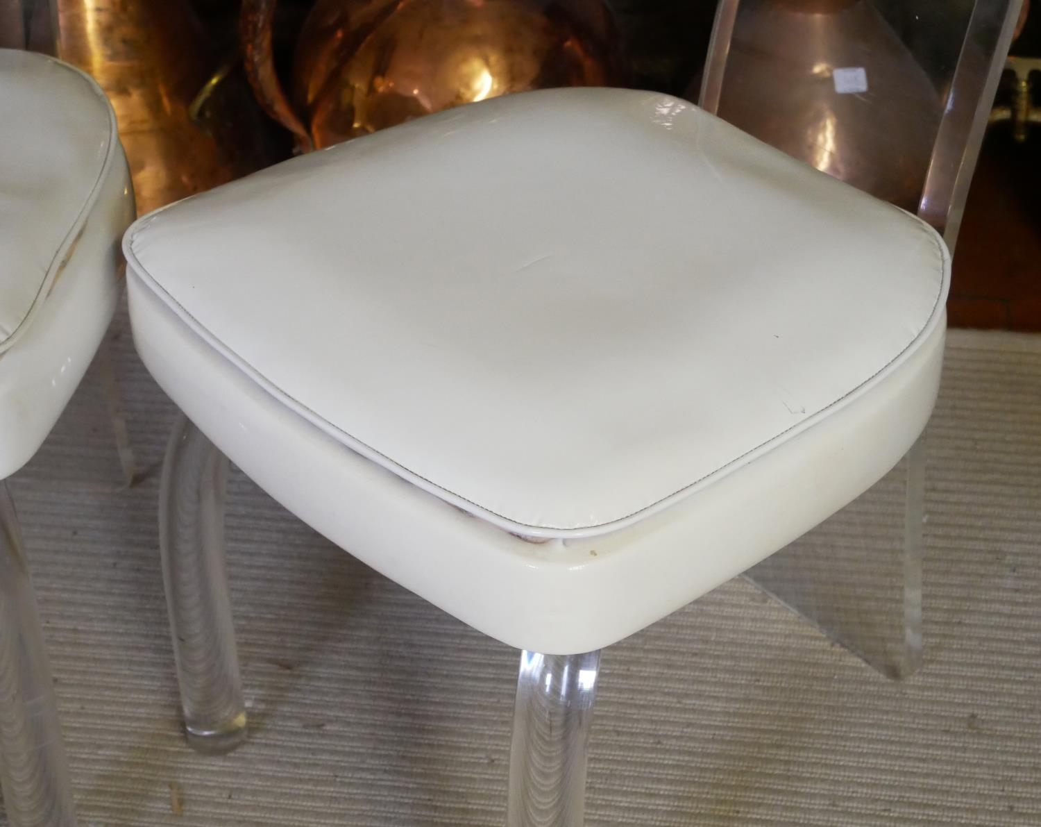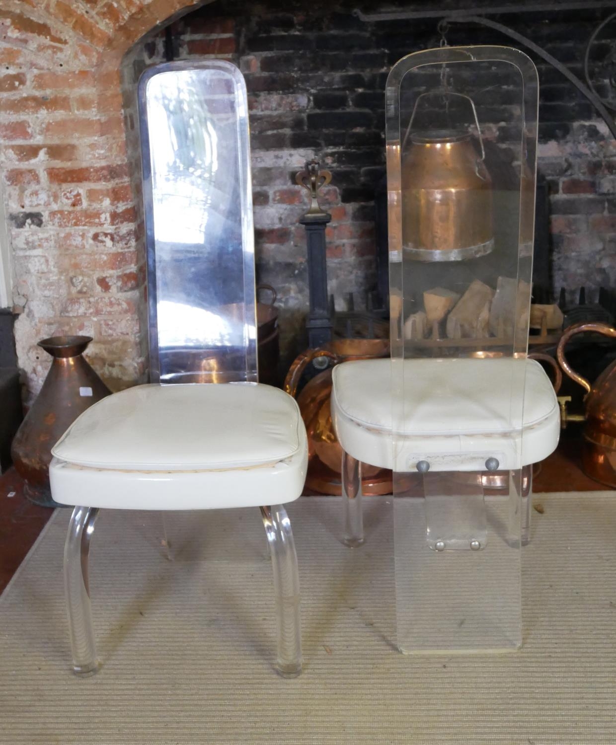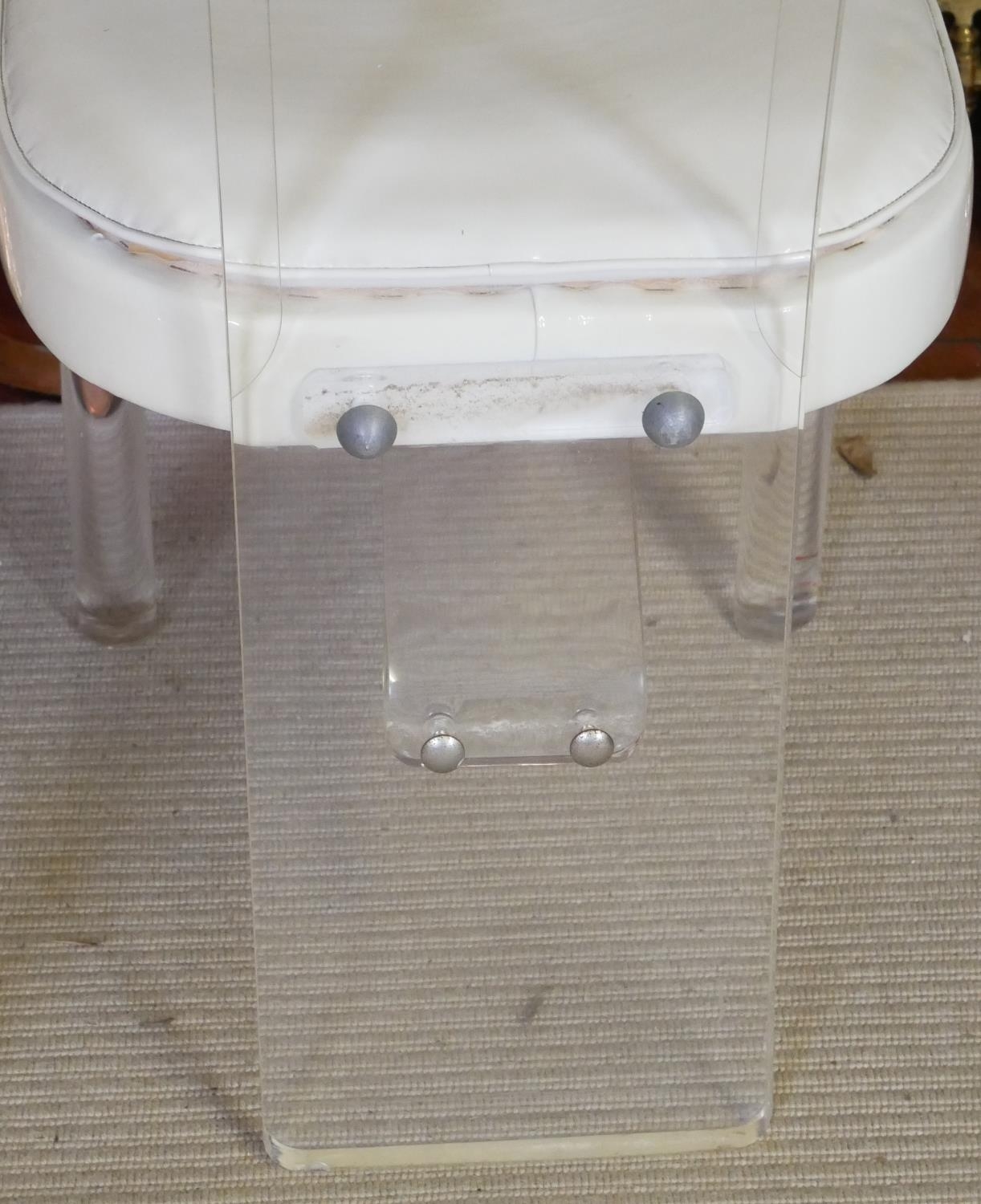 With bevelled lucite backs raised on stylised lucite, on turned cabriole legs.