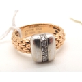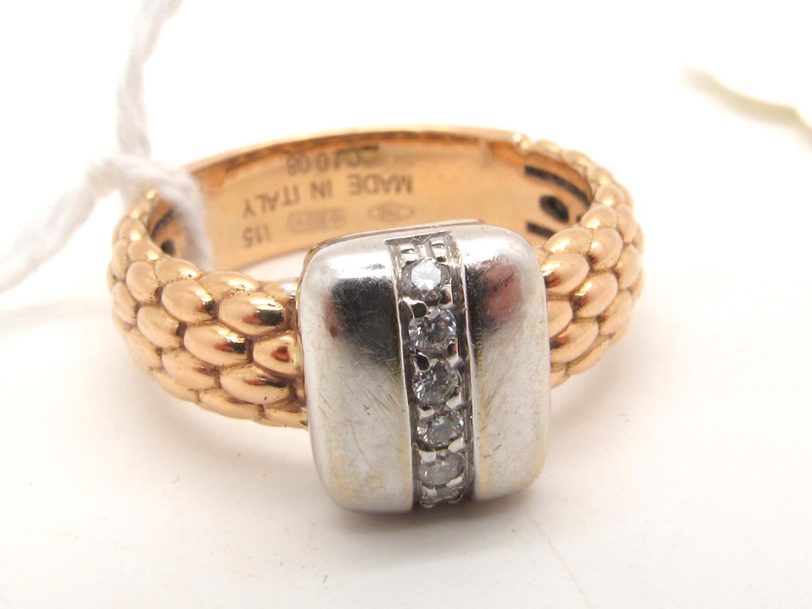 Fope; A Modern Italian Diamond Set Ring, of two tone textured finish, inset with uniform brilliant cut stones, stamped "750" "Made In Italy" "Ct 0.08" (finger size O) (5.grams), in original box.