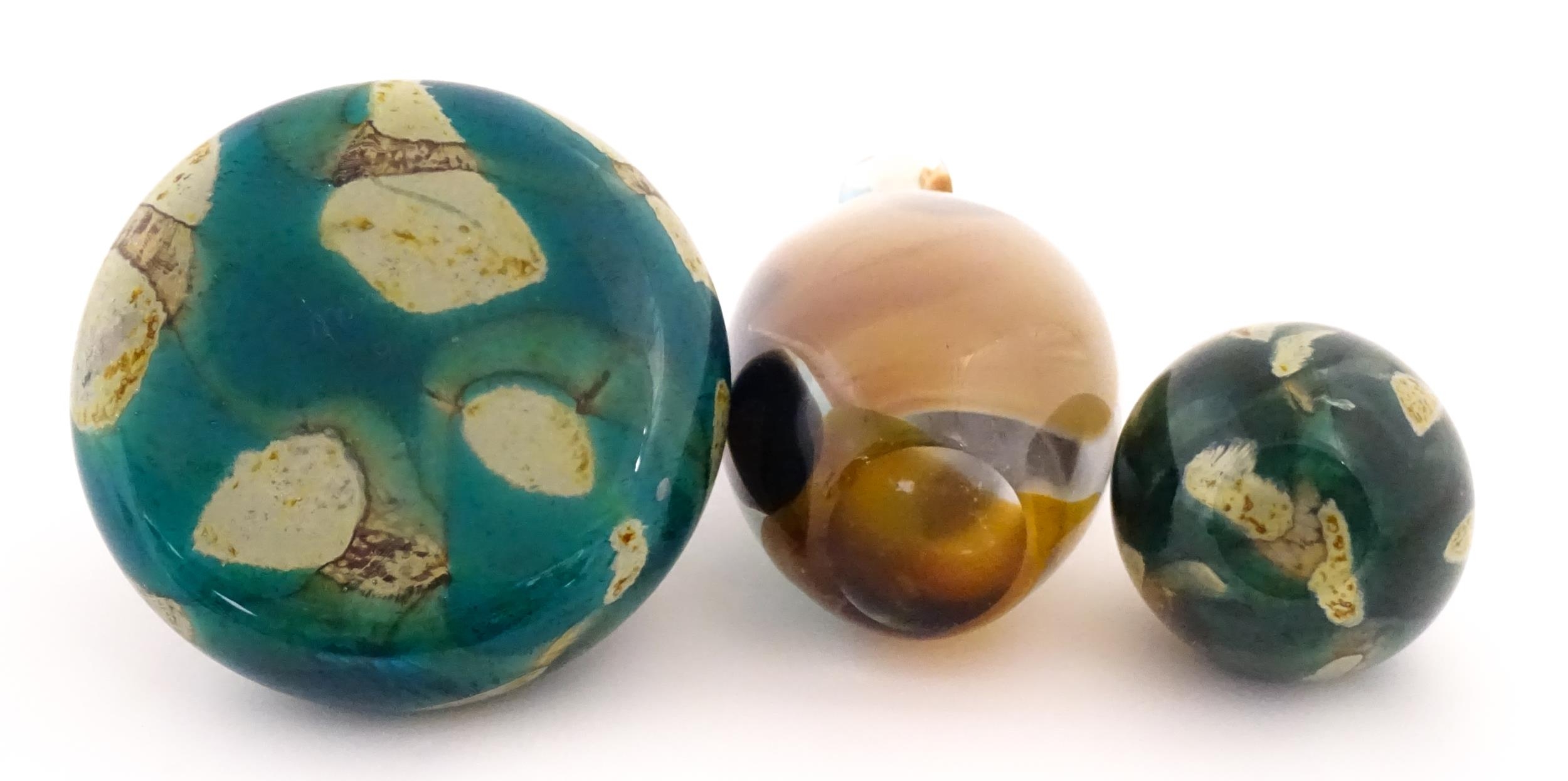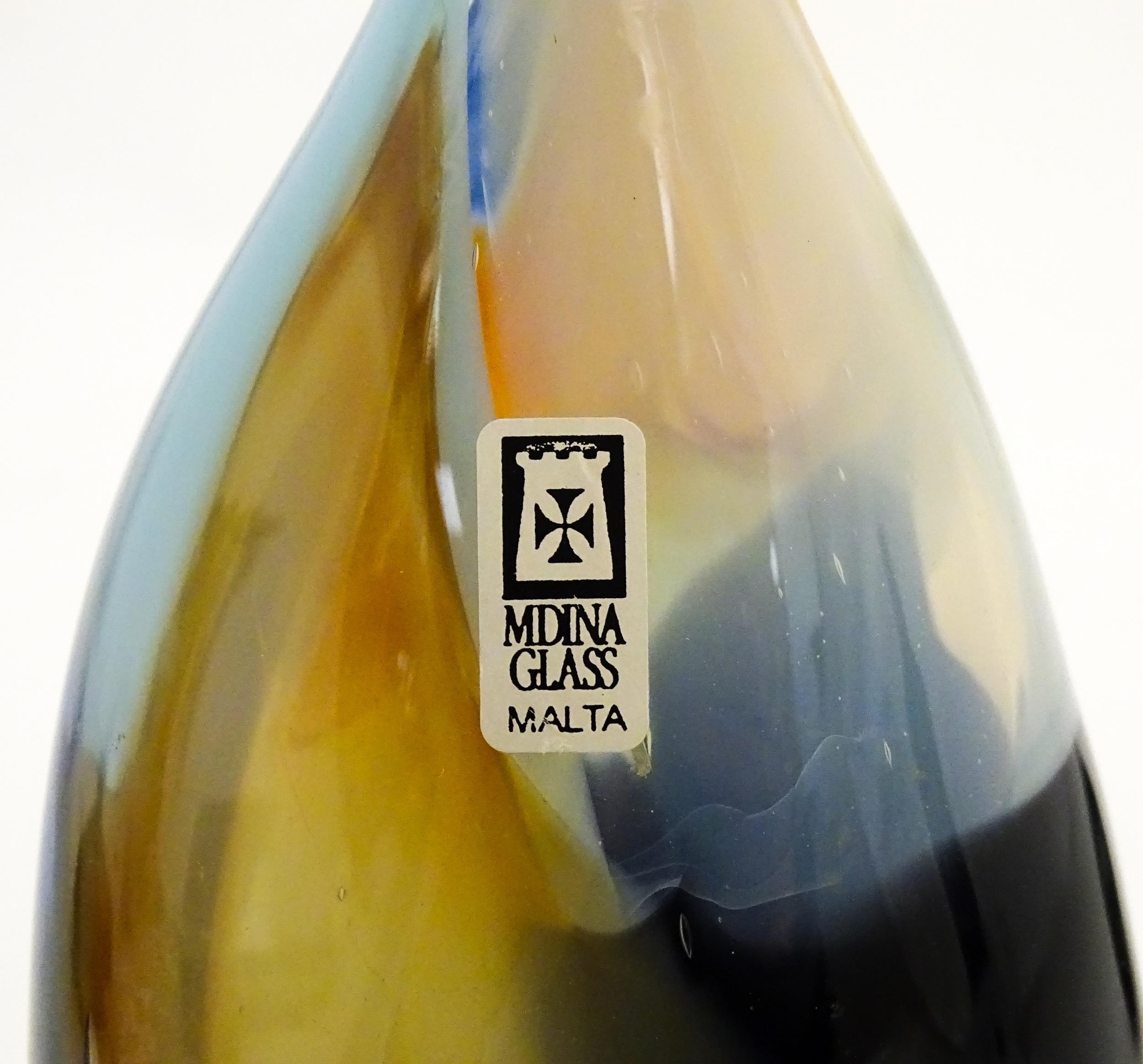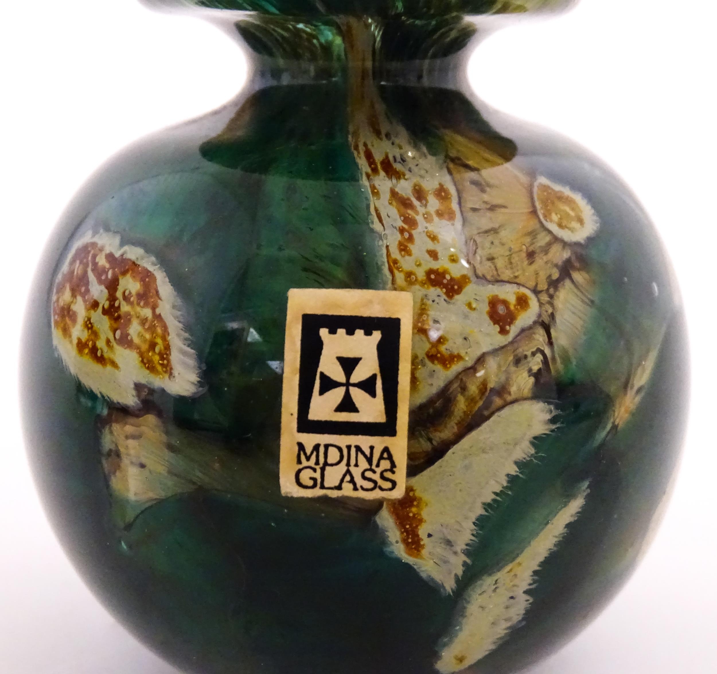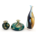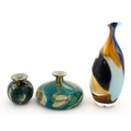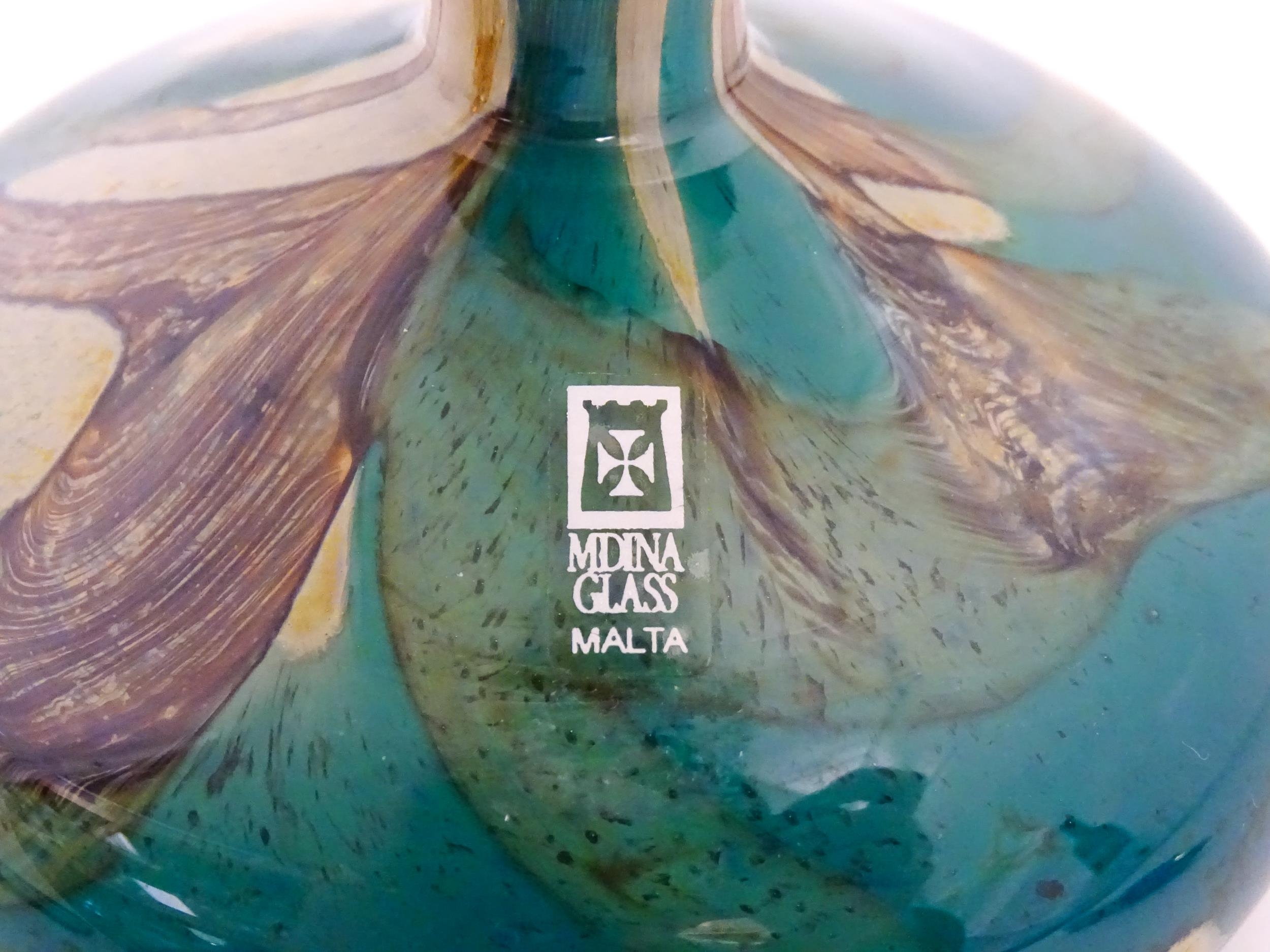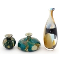 Three Mdina vases to include a squat vase in the Marble pattern, and one in the Tiger pattern. One signed and numbered under, the other two with Mdina labels. Tallest approx. 9 1/4" high (3)