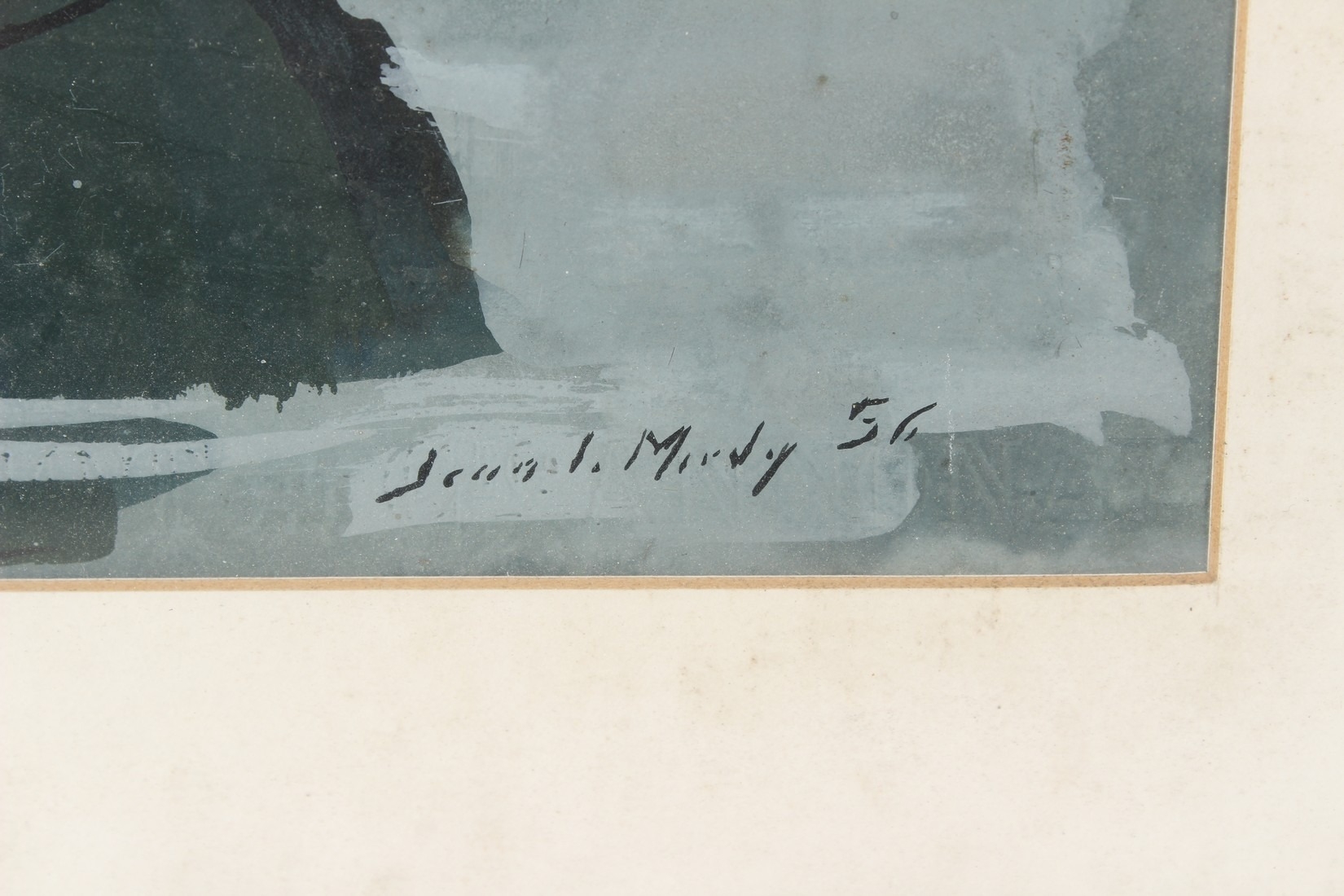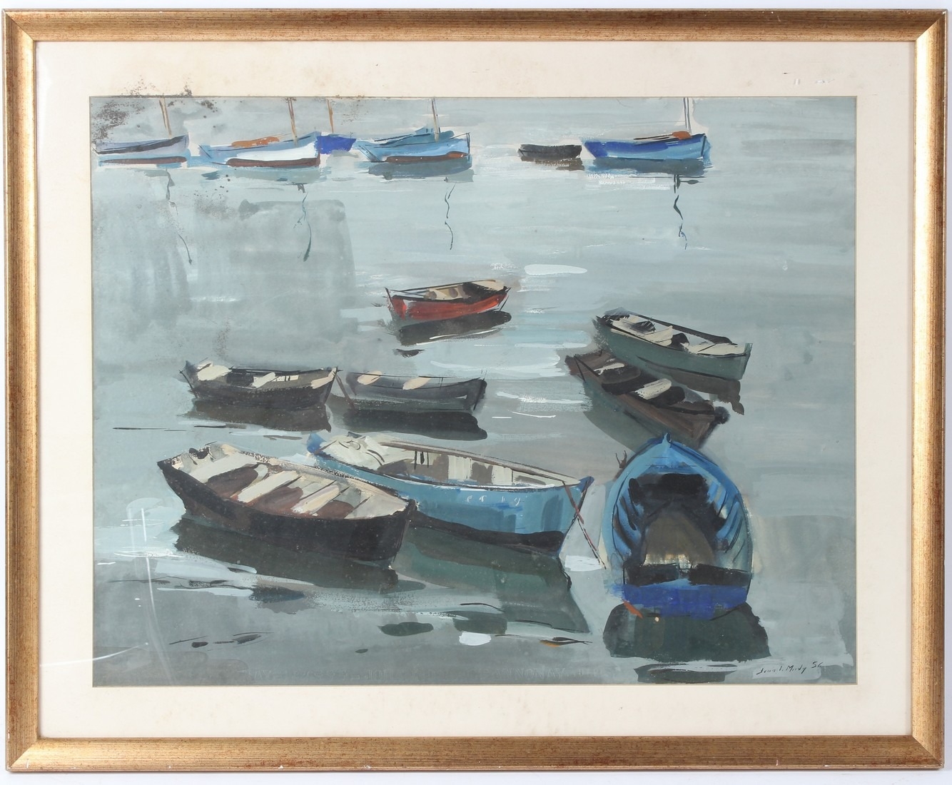 JEAN LE MERDY (1928-2015) Moored boats off a beach watercolour / gouache signed and dated '56 49 x 64cm