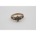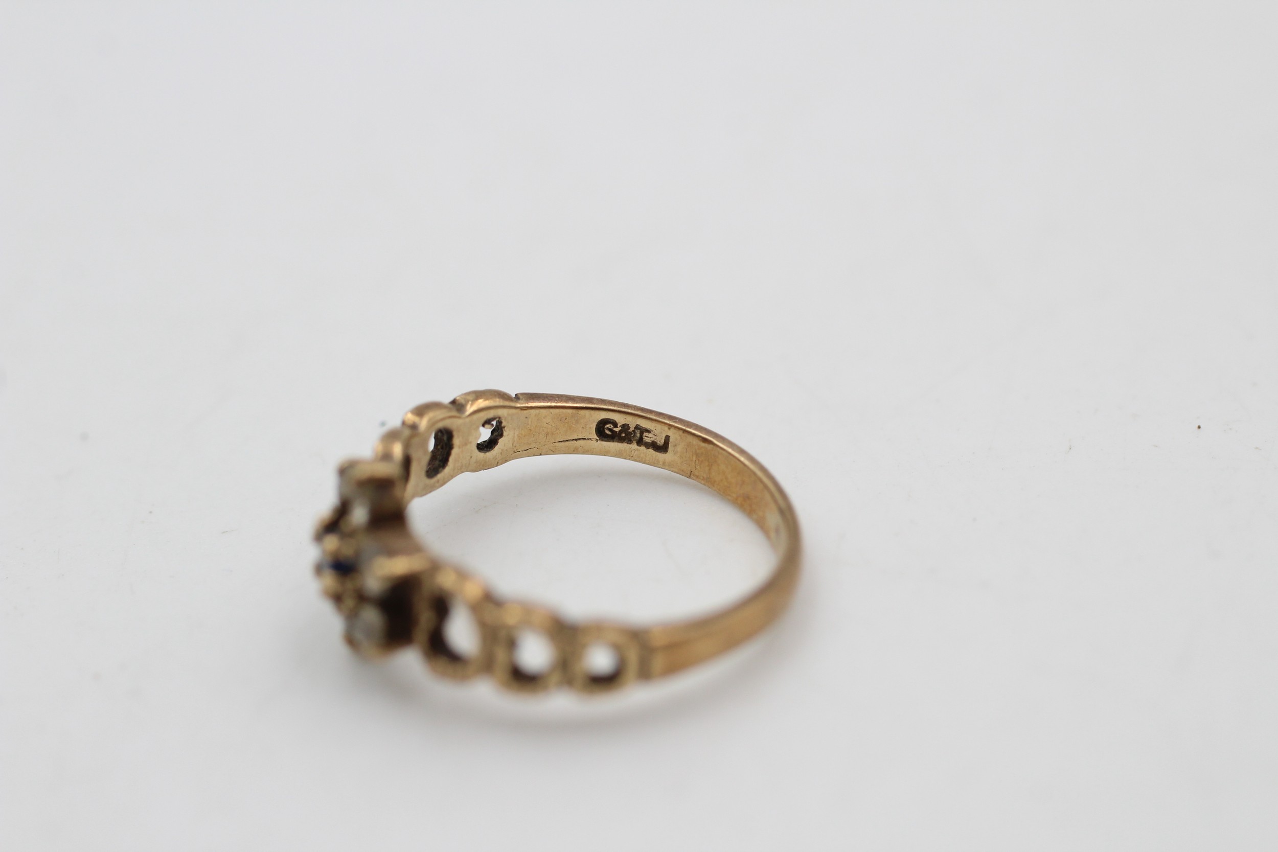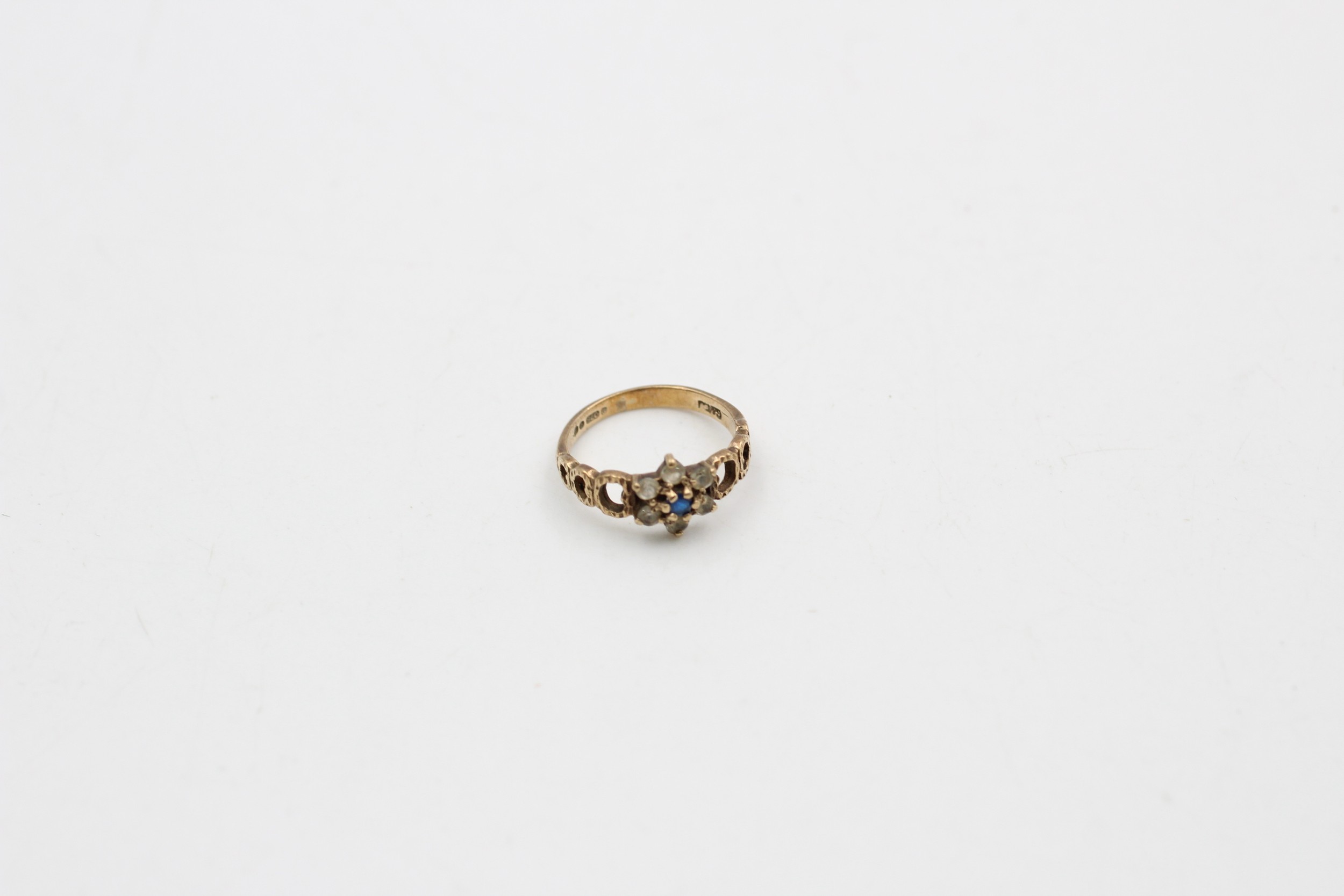 9ct gold gemstone cluster ring with open shoulder design (1.9g) SIZE J