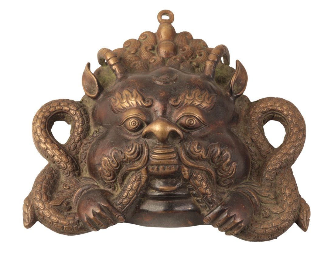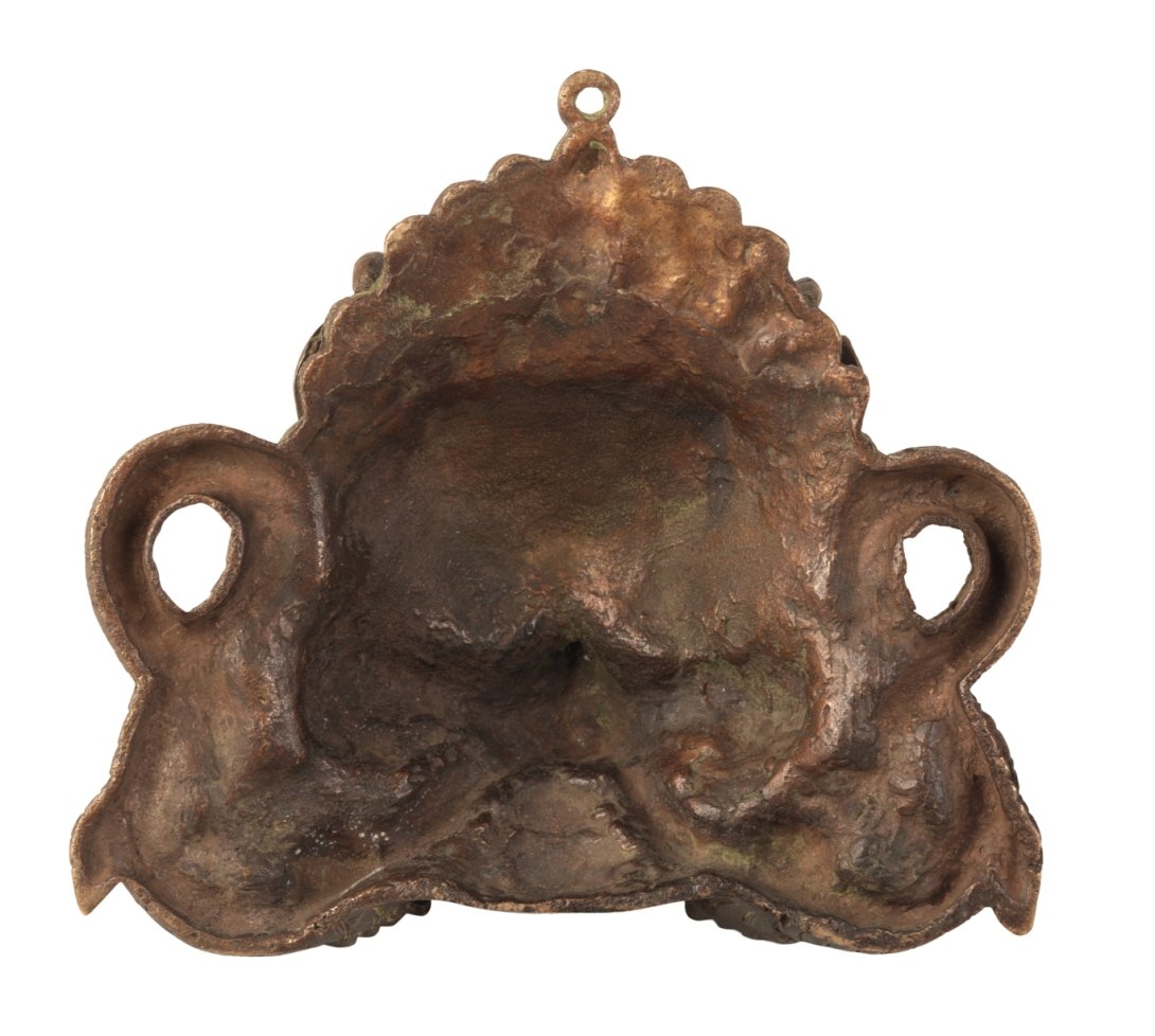 A CHINESE BROWN PATINATED BRONZE GARUDA DOOR MOUNTwith polished highlights, 19cm high x 18cm wide