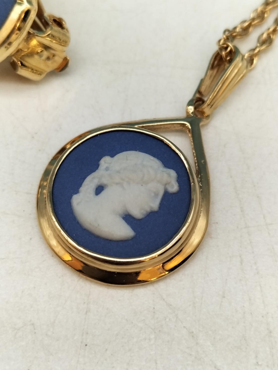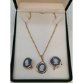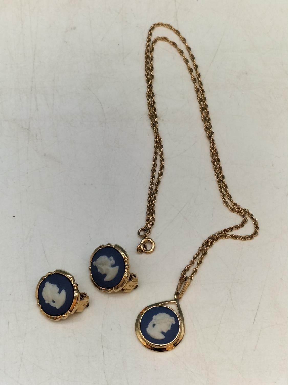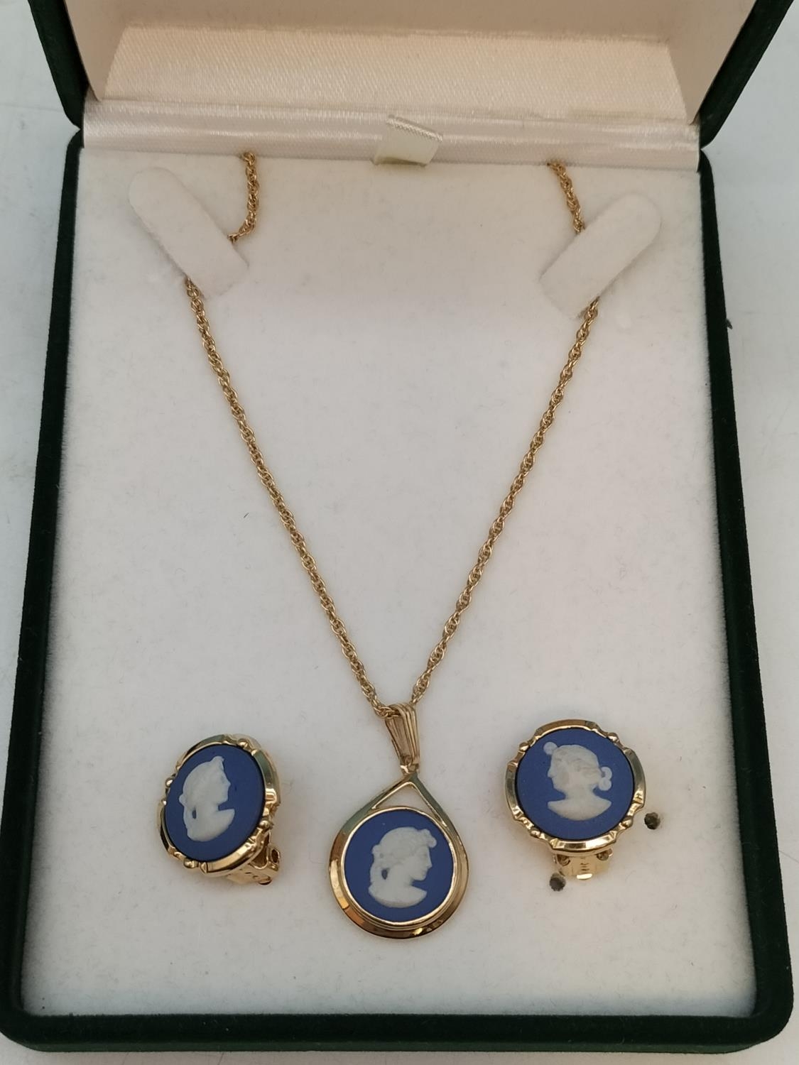 Wedgwood Jasper and Gold Tone Necklace and Earring Set.