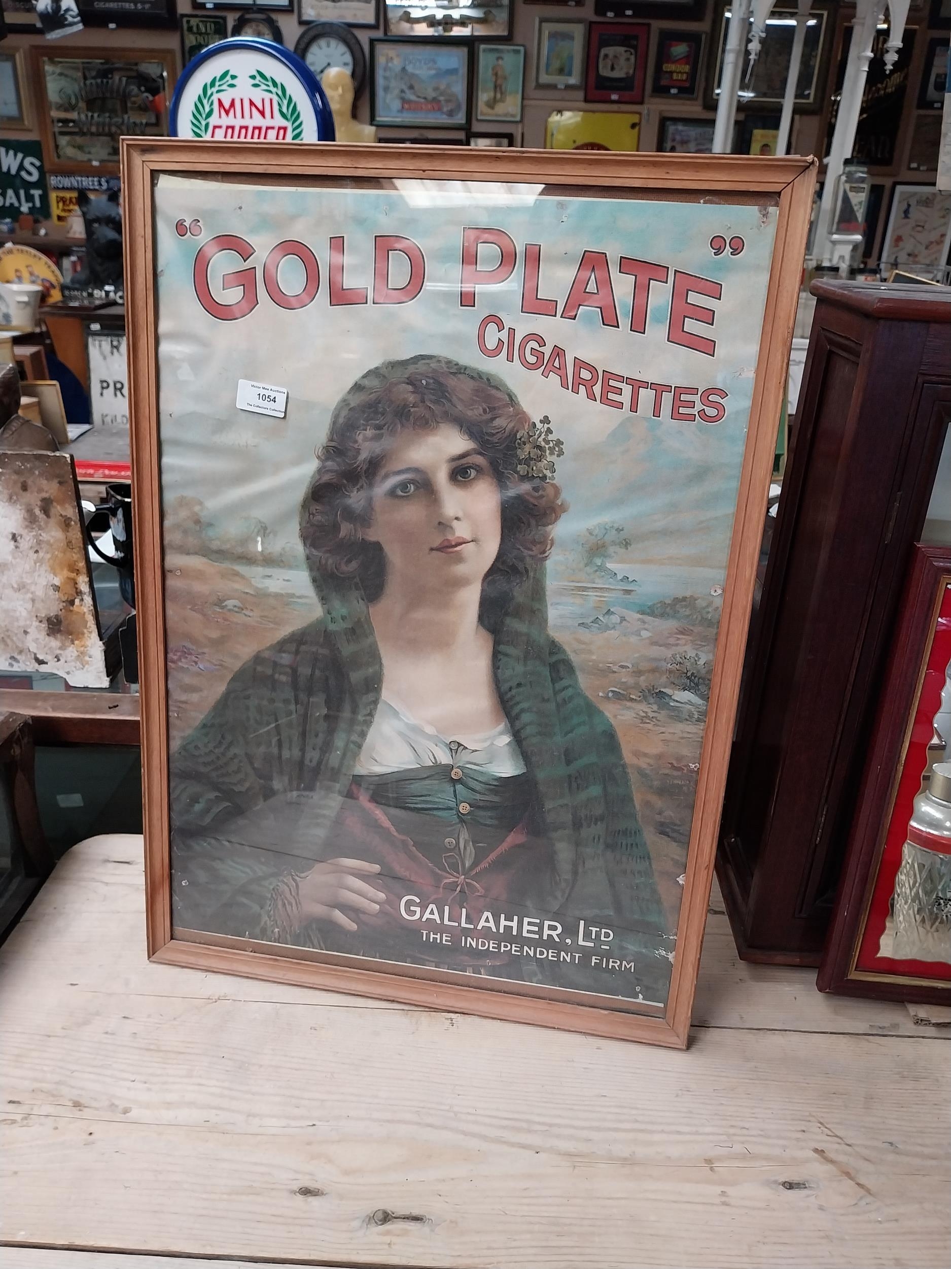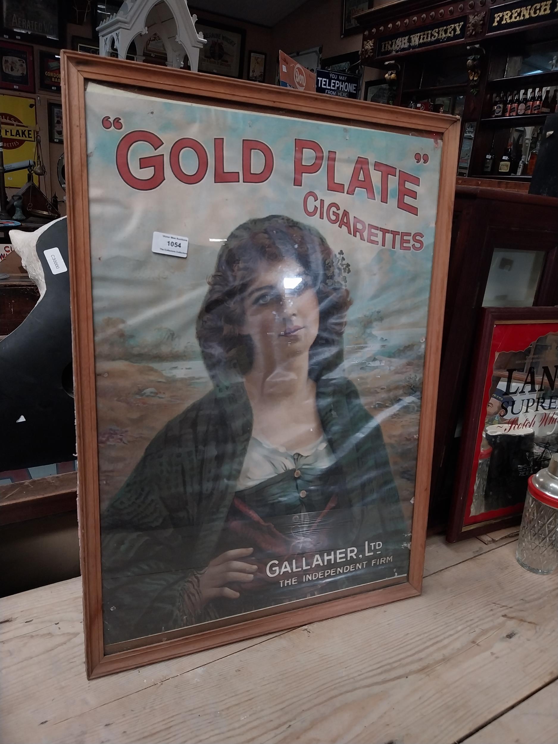 Gallaher's Gold Plate Cigarettes framed advertising print. {68 cm H x 48 cm W}.