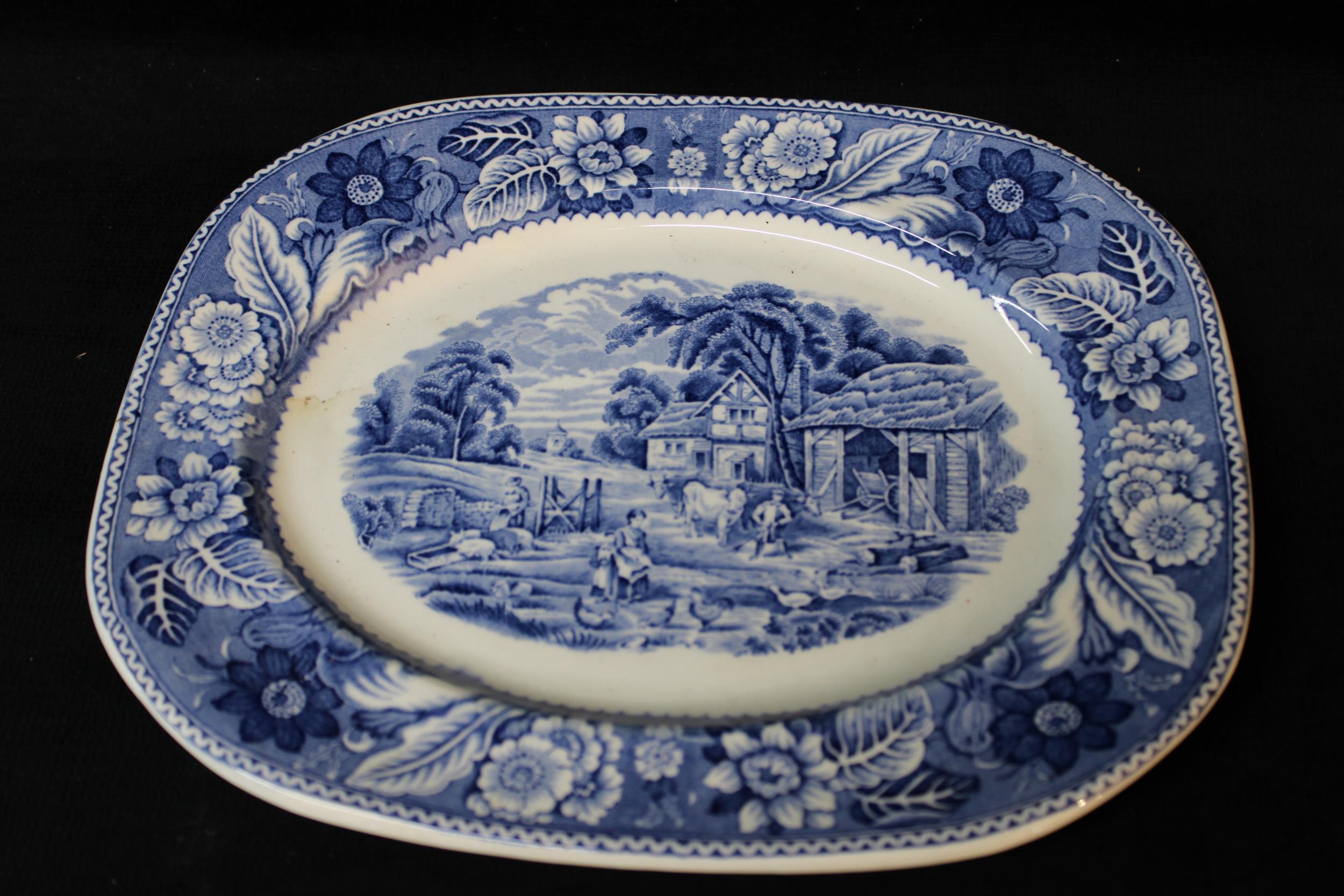 A small Burslem blue & white platter - 28cm x 23cm