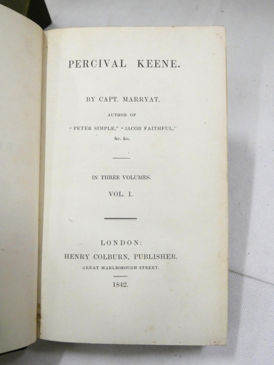 MARRYAT CAPTAIN. Percival Keene. Three-decker Novel. Half titles. Handsome dark half morocco, t.e.g., by Riviere. 1st ed., 1842.