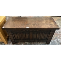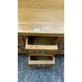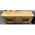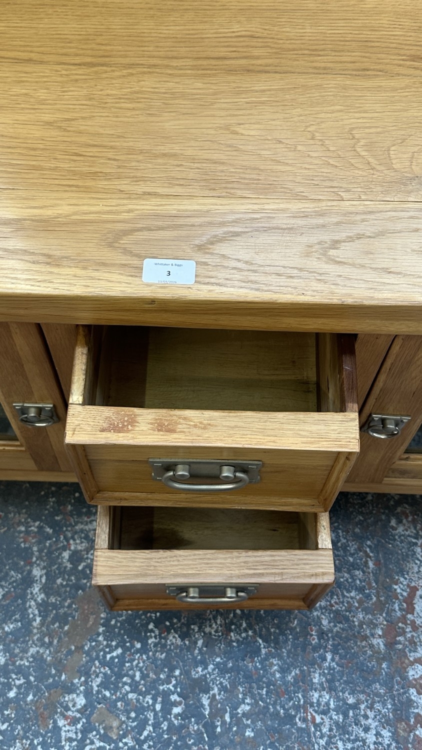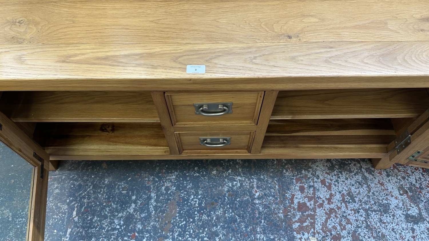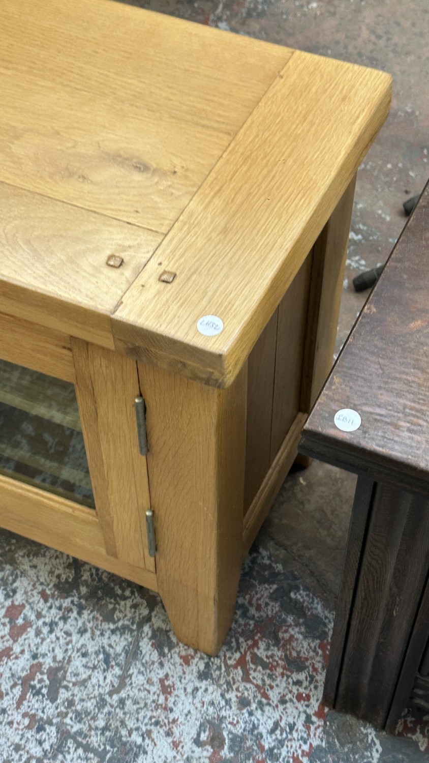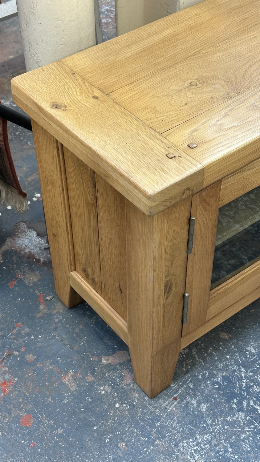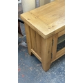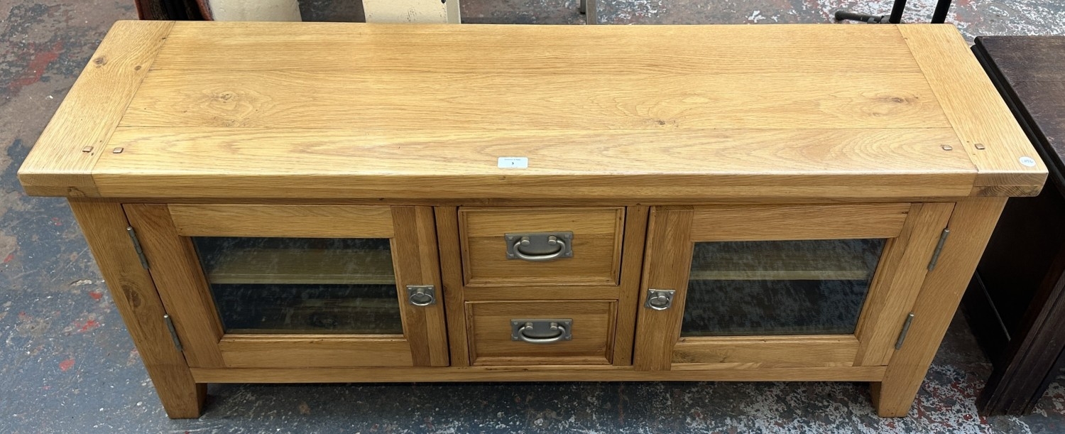 A modern oak TV stand - approx. 56cm high x 130cm wide x 36cm deep